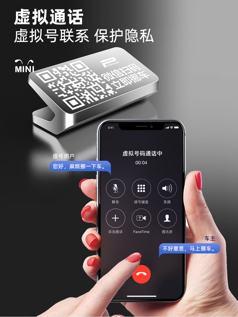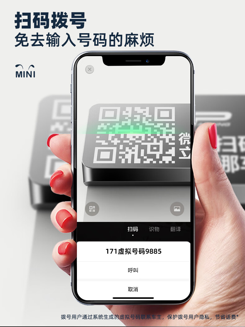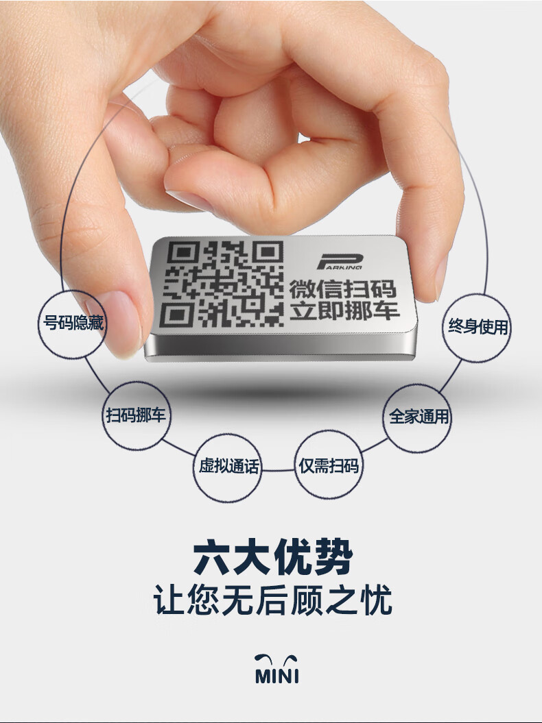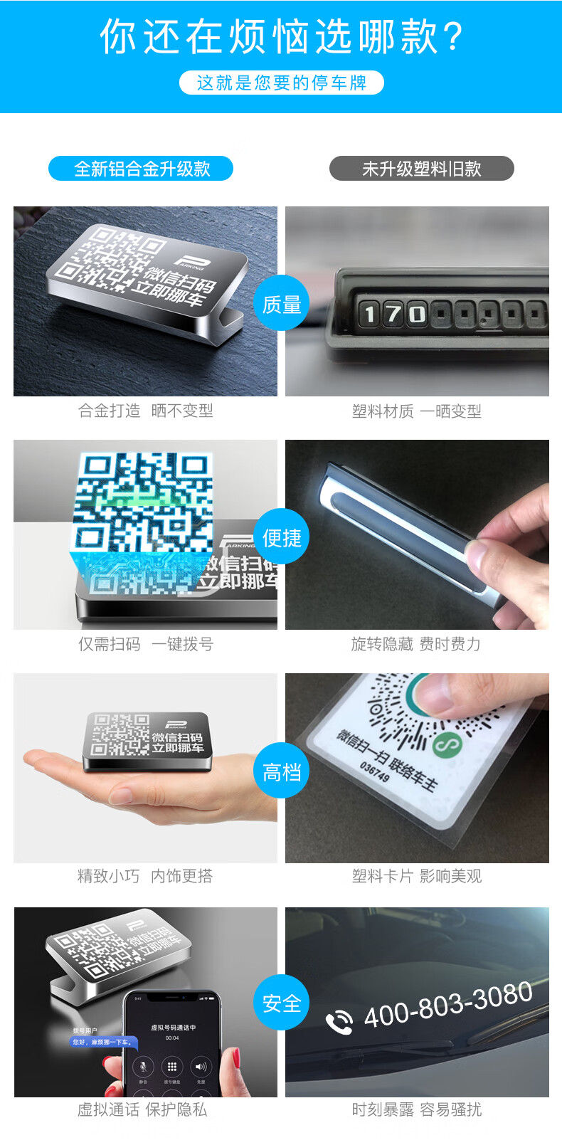 绅创挪车二维码电话牌停车号码牌微信扫码临时停车个性汽车用品摆件 银-太阳能夜光款扫码挪车号码牌