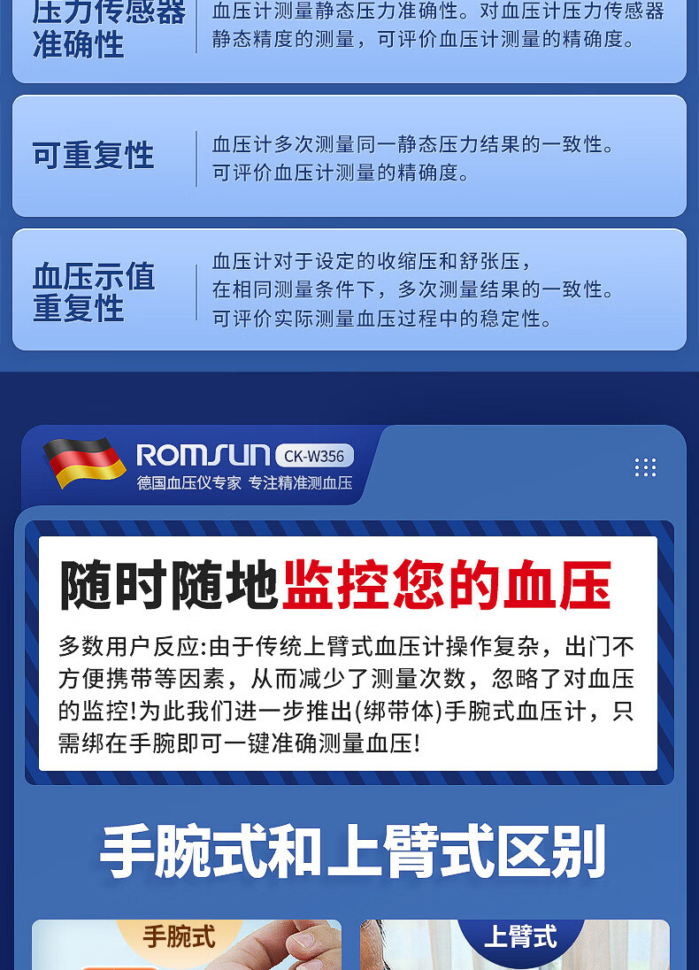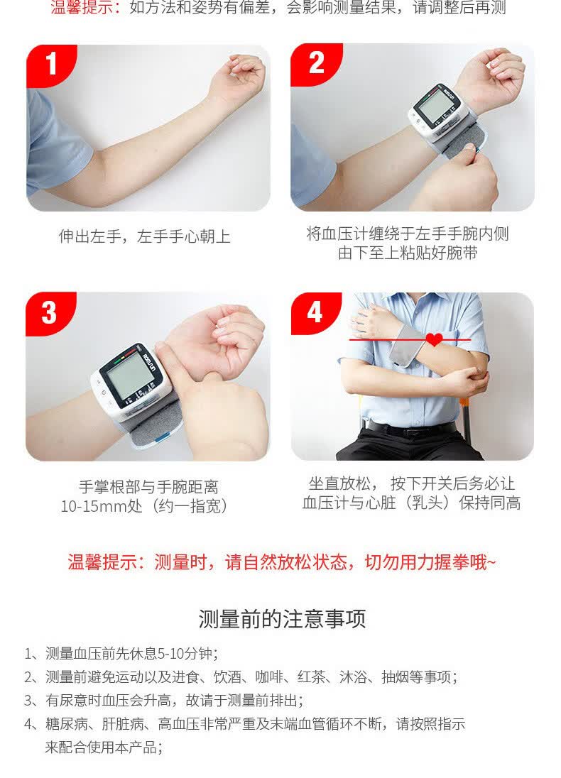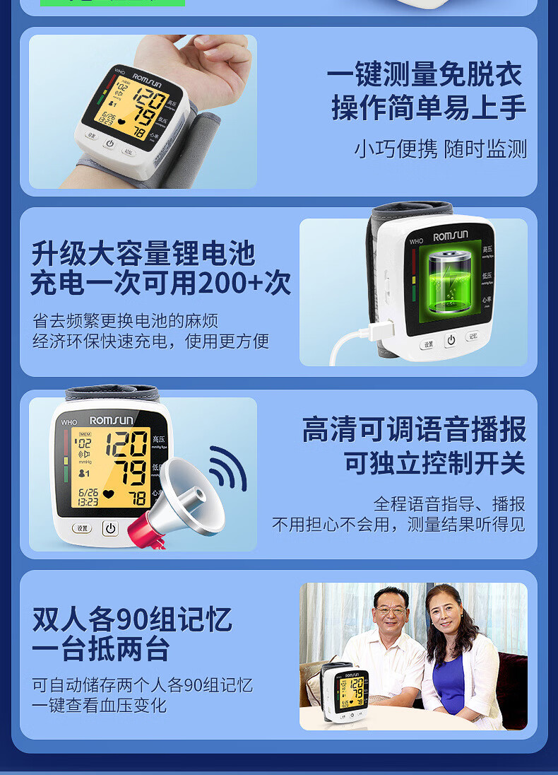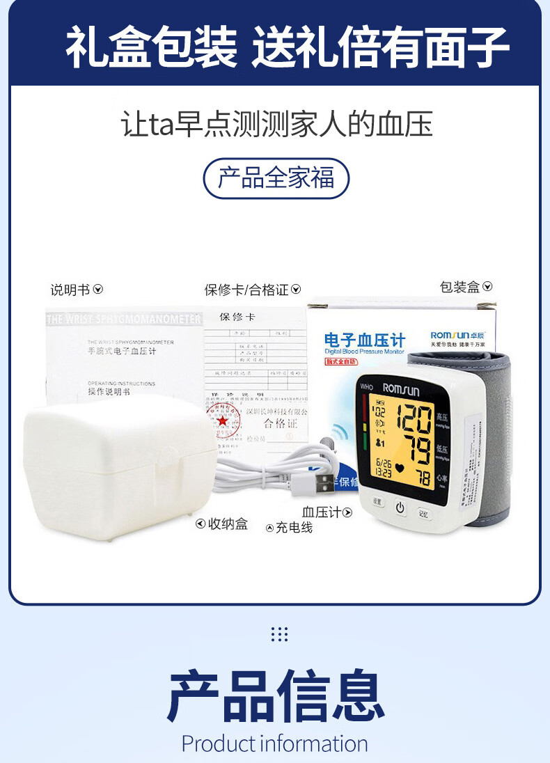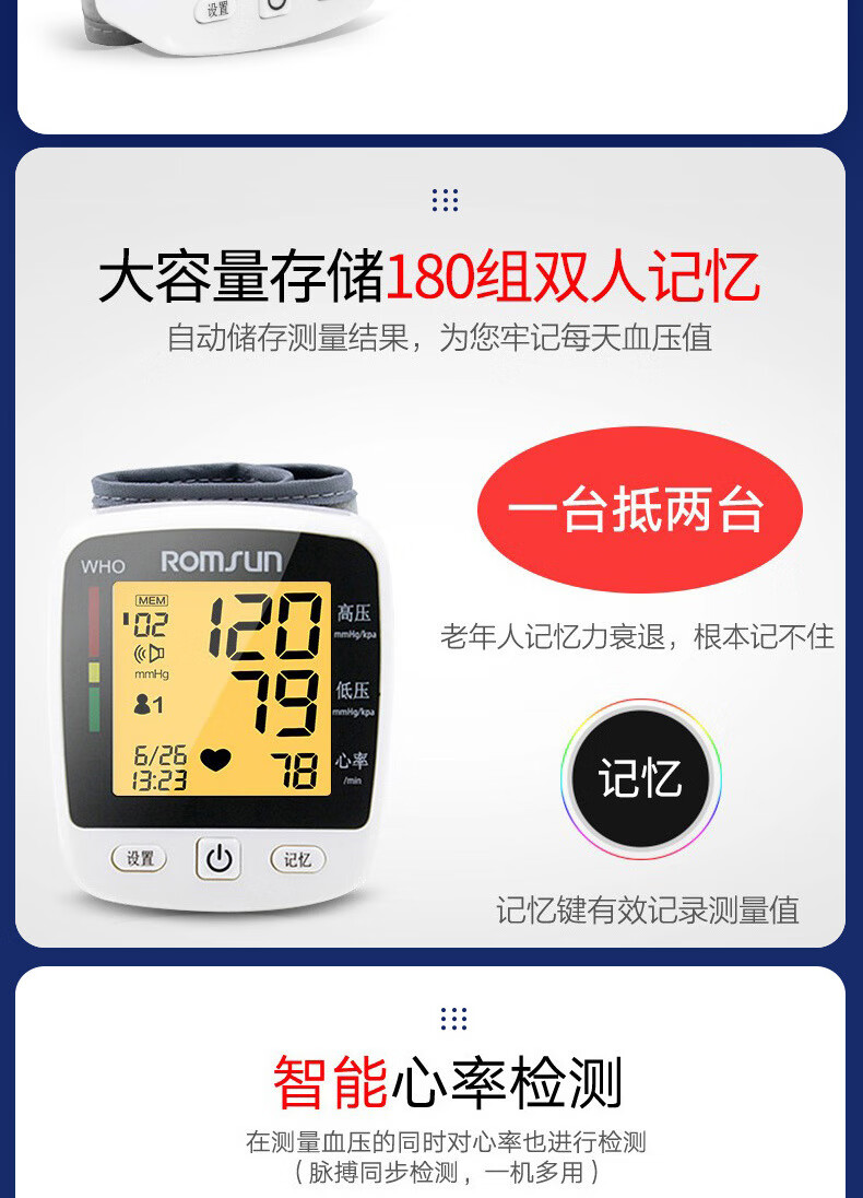 卓辰德国品牌血压仪血压测量仪医用高精准血压计家用血压仪腕式血压计 W356三色背光充电款(好评晒图返现5元) 台