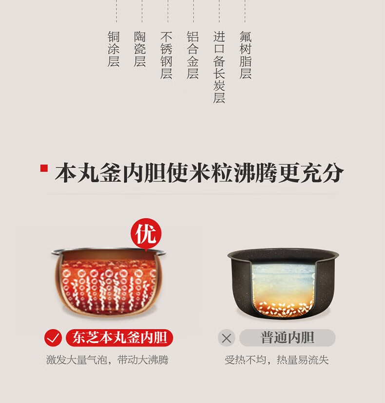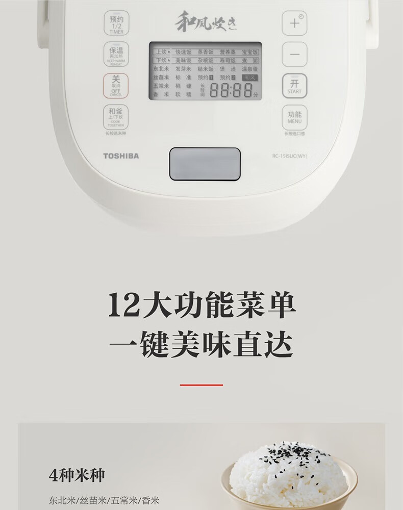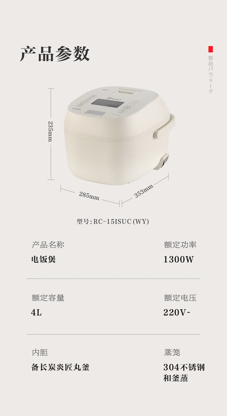东芝【官方旗舰】小白露Pro电饭煲4-5人家用 4L真空电饭锅 IH立体加热 0涂层内胆不粘锅 小白露 双胆 4L RC-15ISUC(WY)