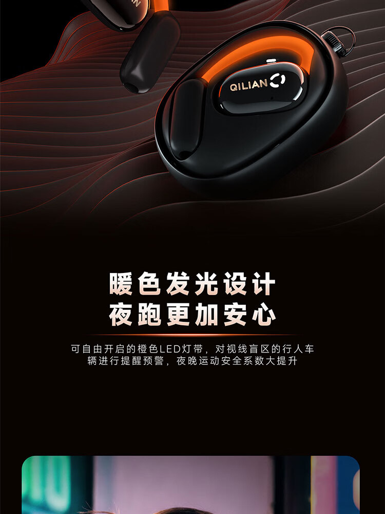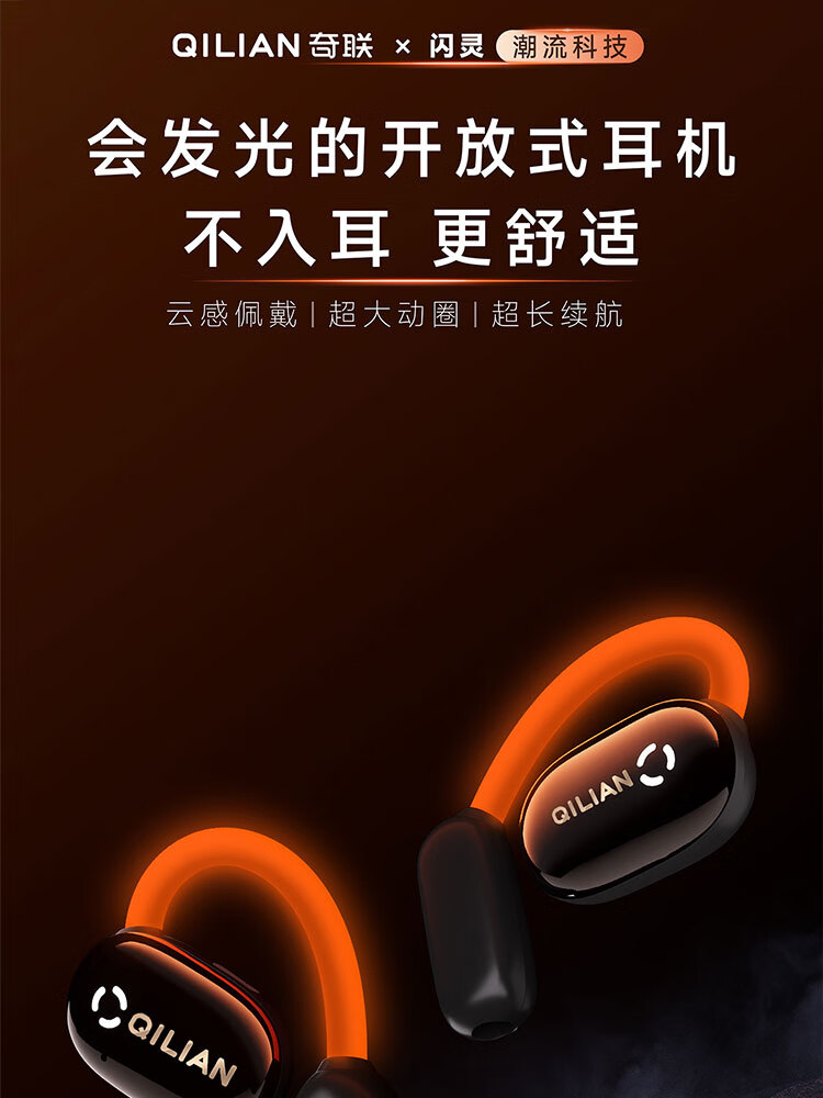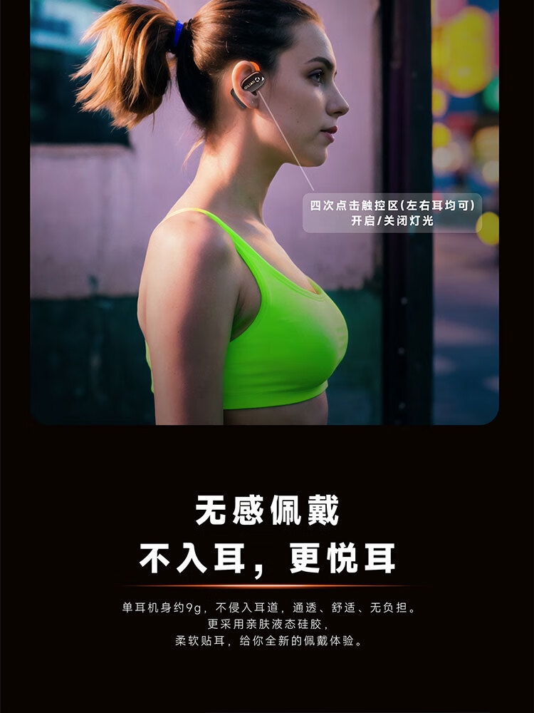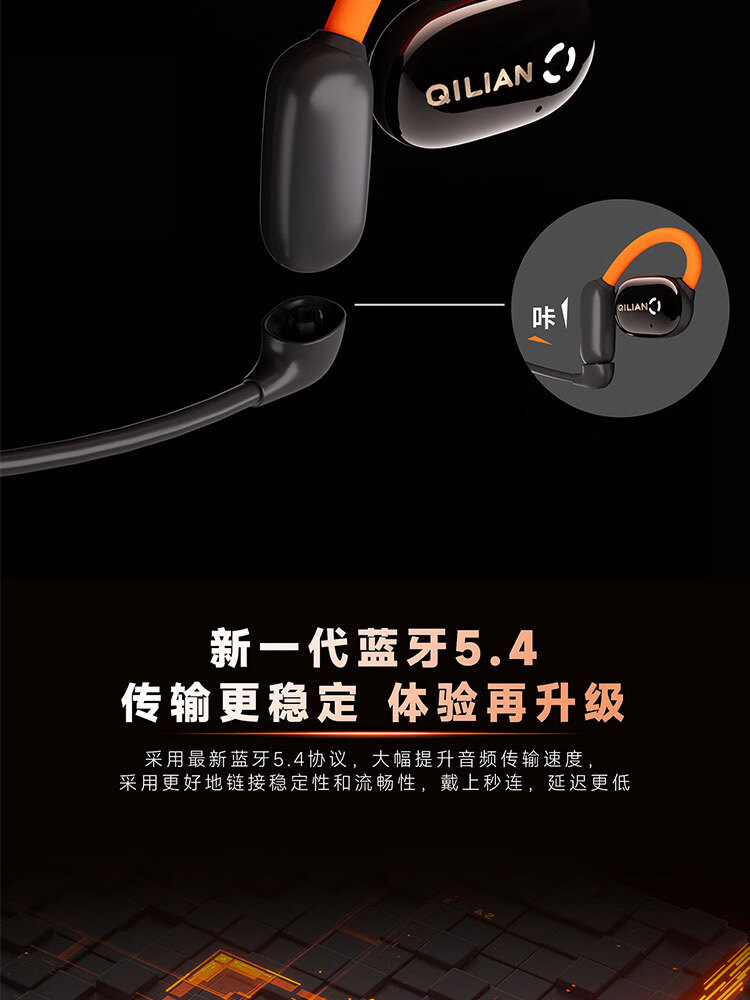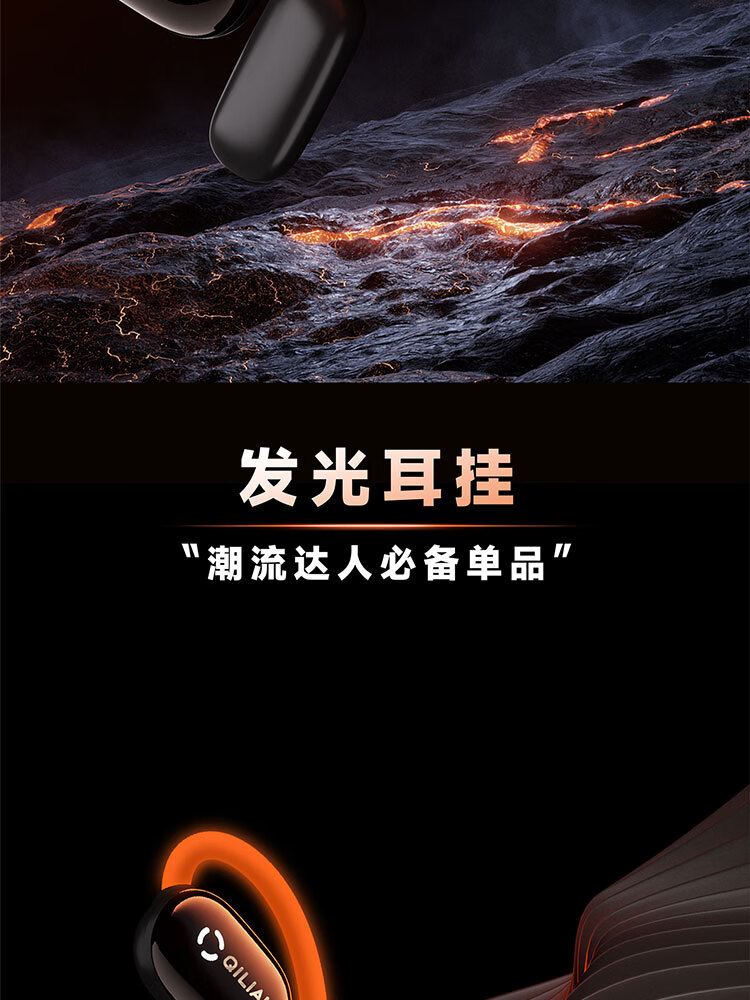 奇联游戏蓝牙耳机挂耳式无线低延迟超长续航久戴不痛男生降噪电竞专用发光挂脖新款高音质适用苹果华为 黑色【送挂绳】