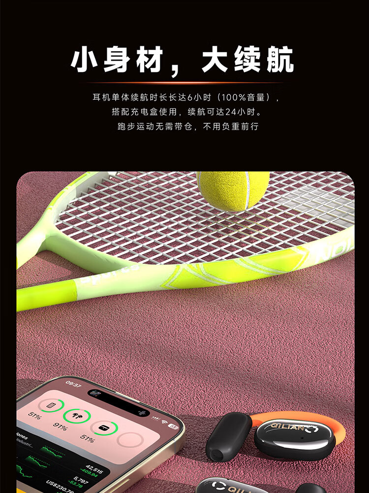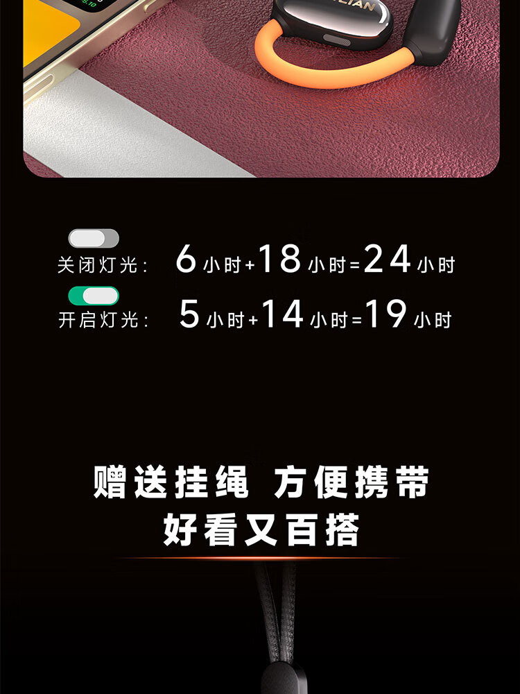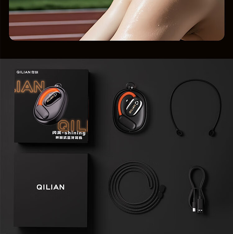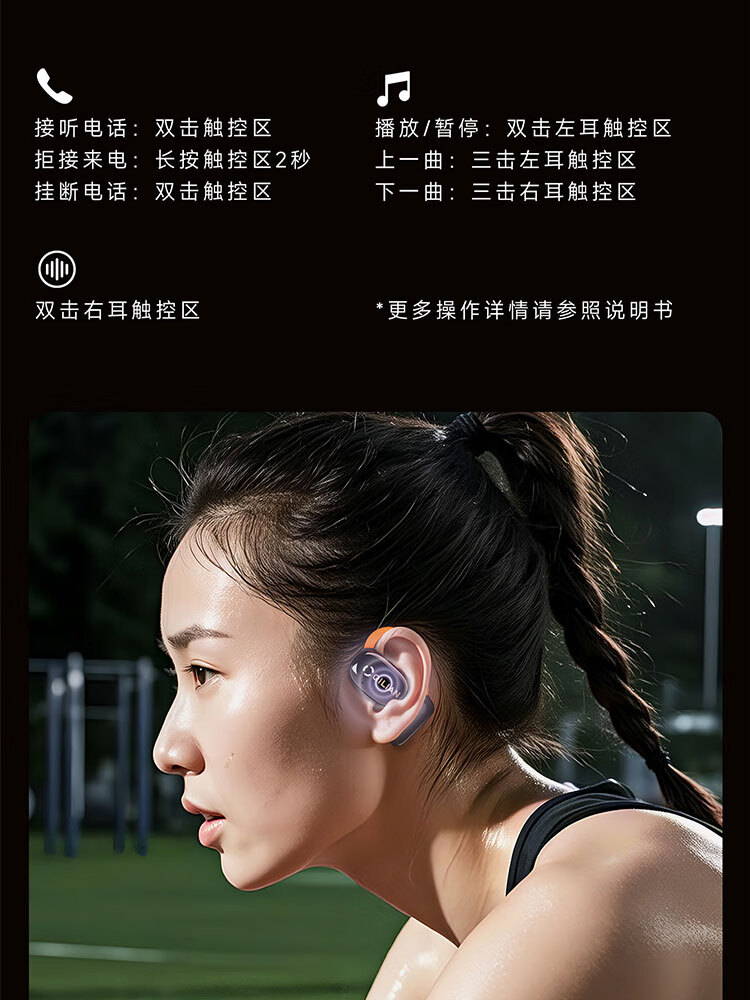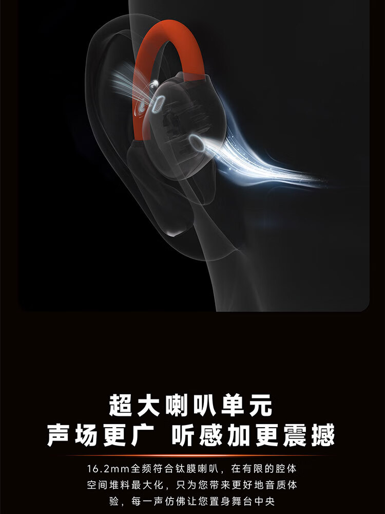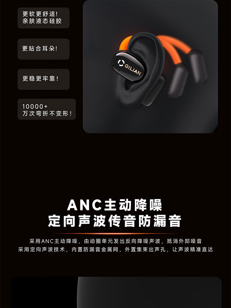 奇联游戏蓝牙耳机挂耳式无线低延迟超长续航久戴不痛男生降噪电竞专用发光挂脖新款高音质适用苹果华为 黑色【送挂绳】