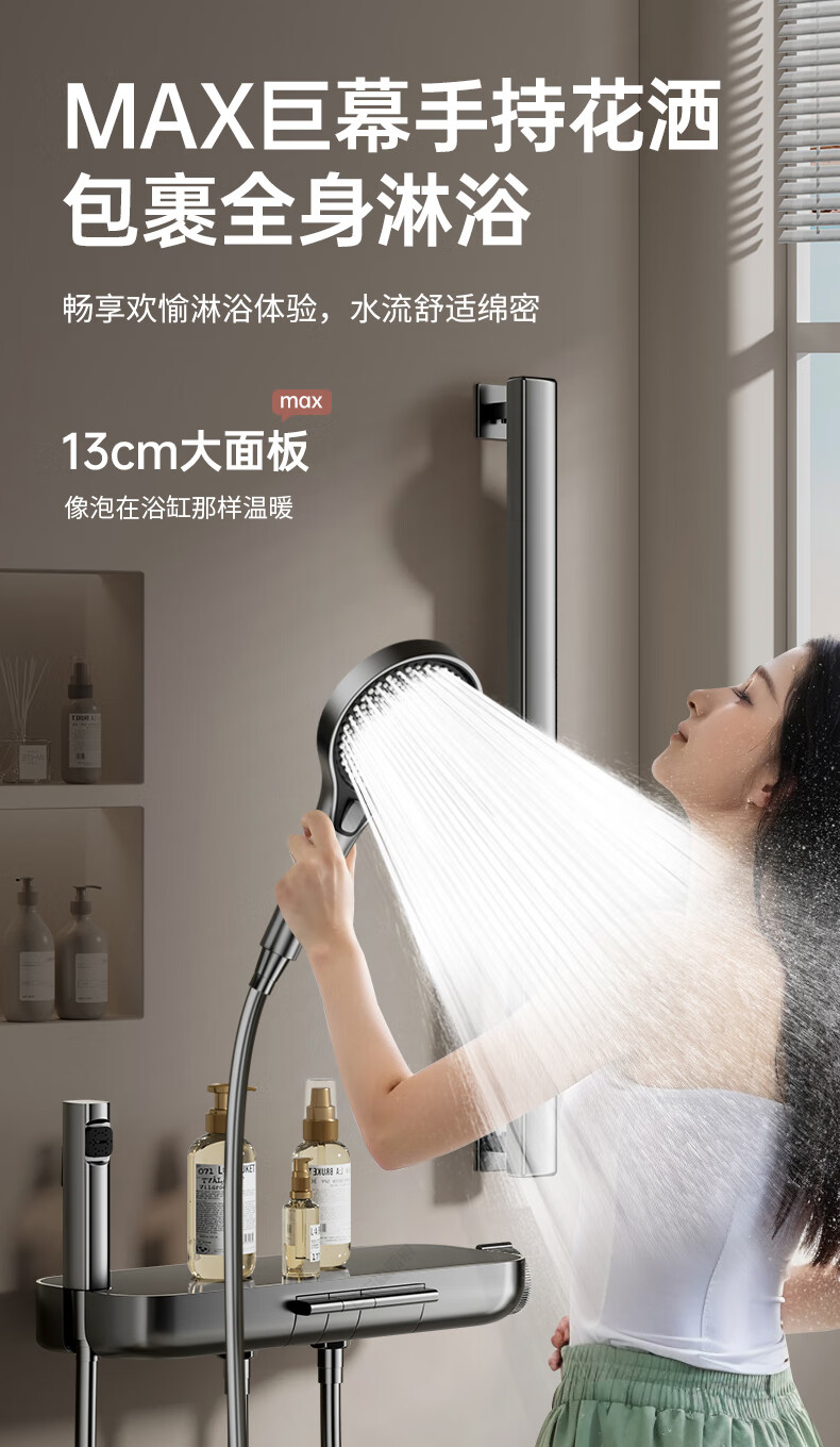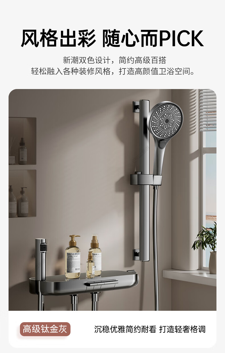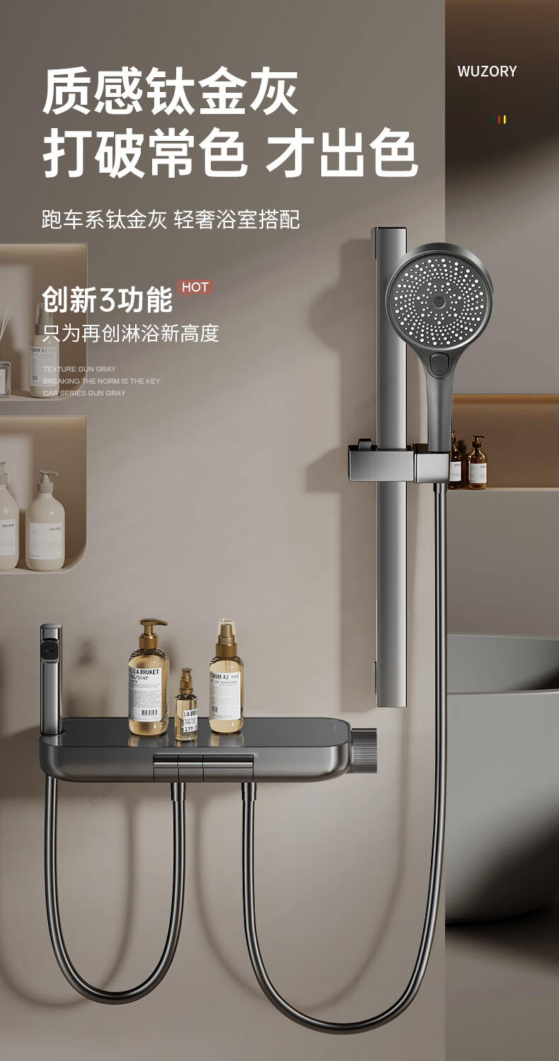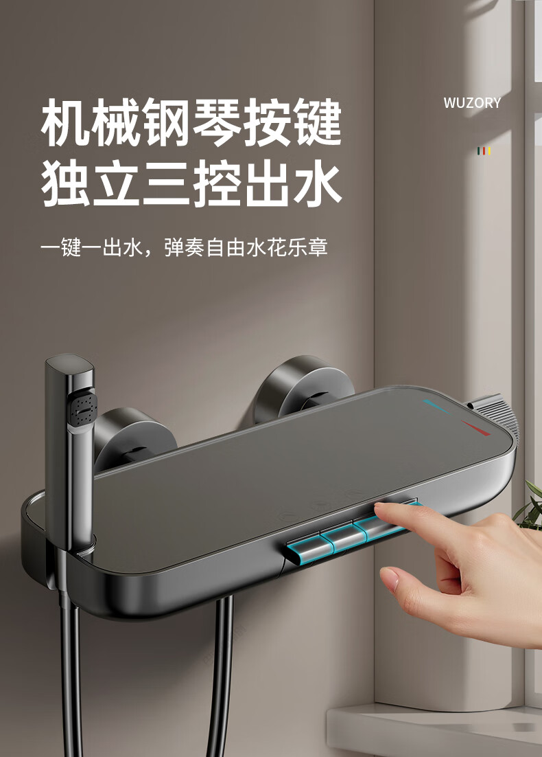 WUZORY【德国】花洒淋浴套装分体式花洒无顶喷浴室淋浴花洒套装卫浴全套 【钛金灰】升降杠套装+圆形手喷 三控出水丨机械钢琴键