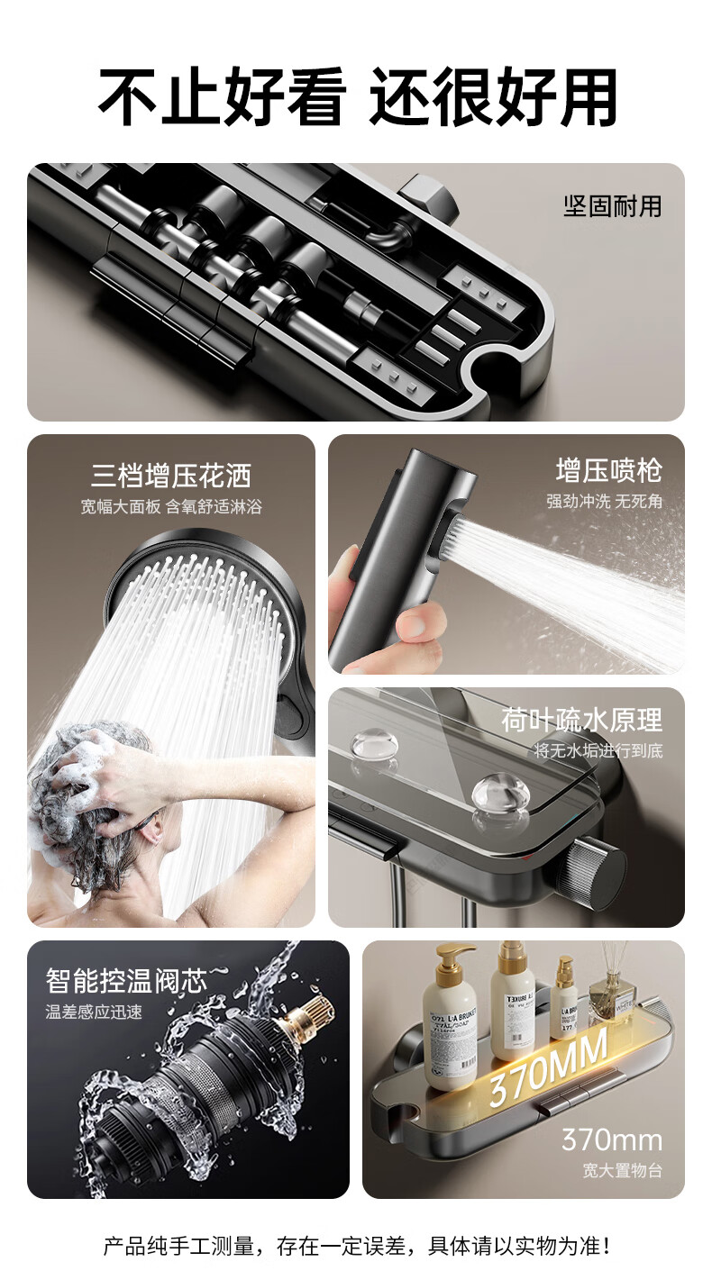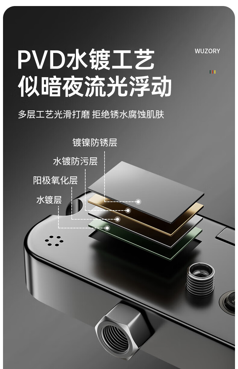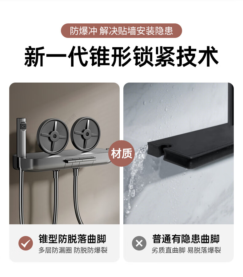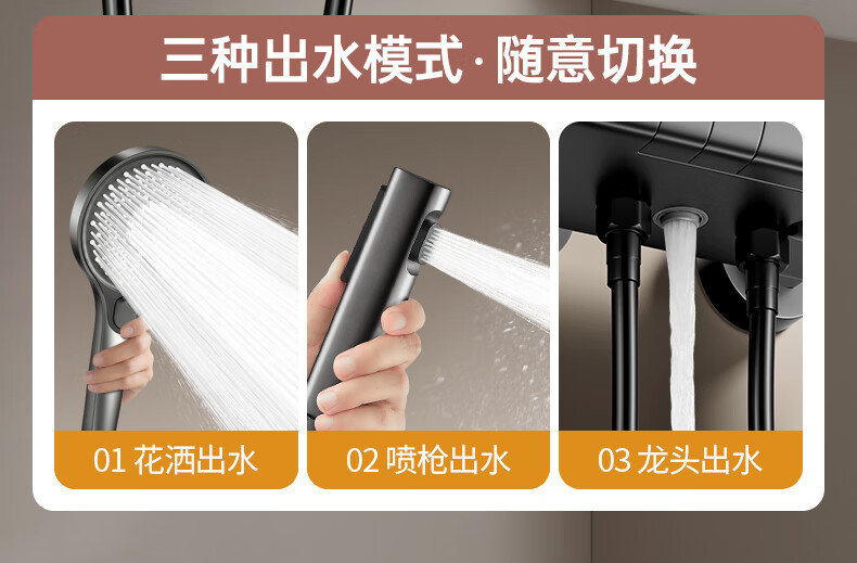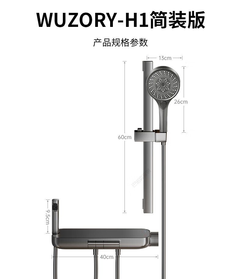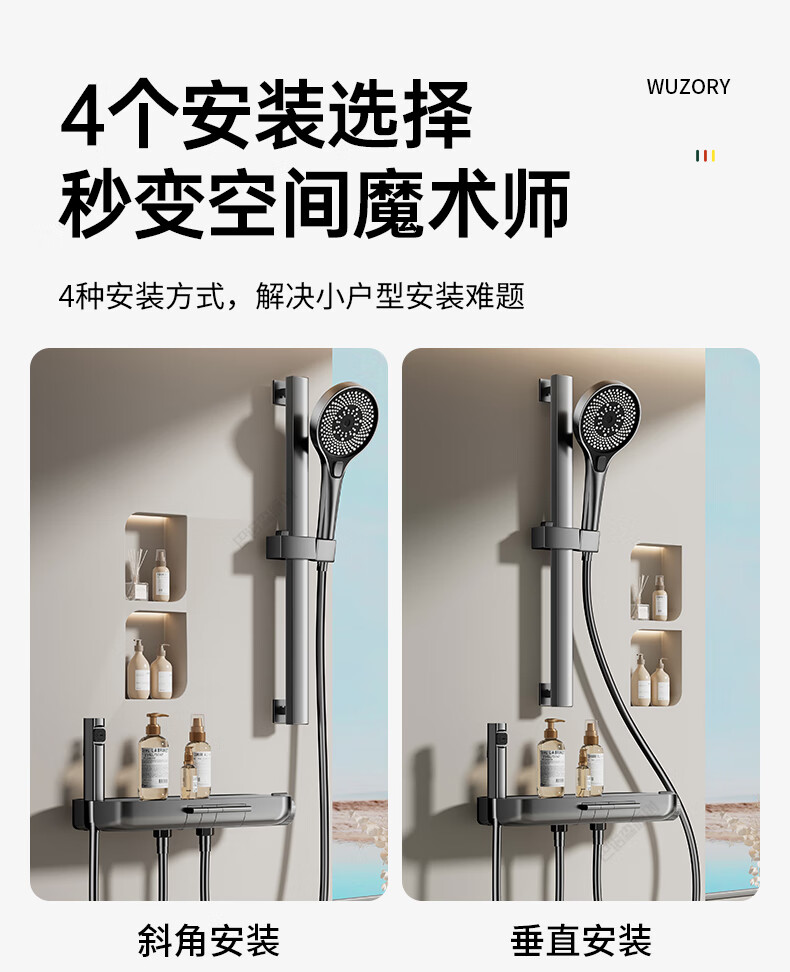 WUZORY【德国】花洒淋浴套装分体式花洒无顶喷浴室淋浴花洒套装卫浴全套 【钛金灰】升降杠套装+圆形手喷 三控出水丨机械钢琴键