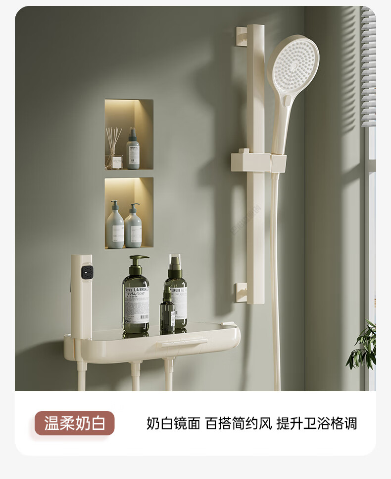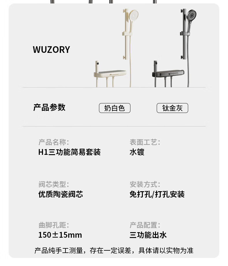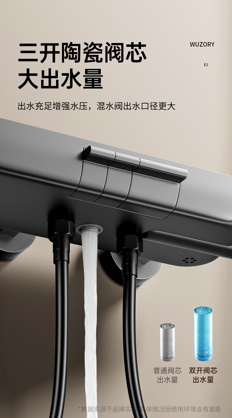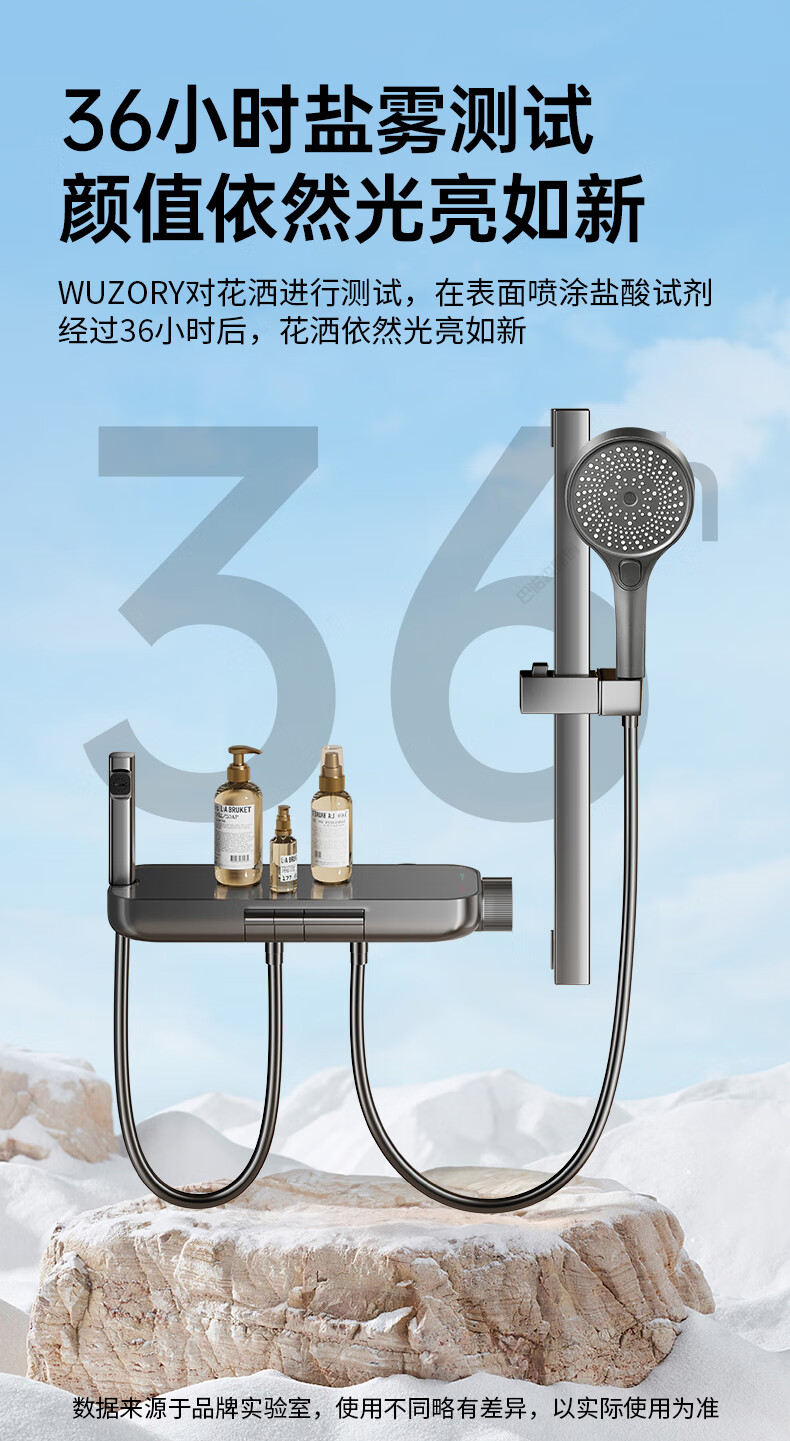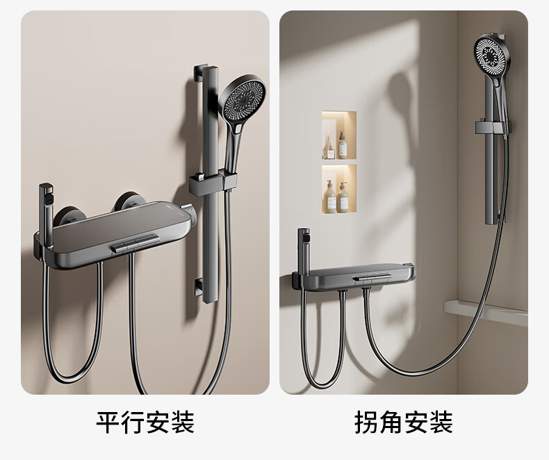 WUZORY【德国】花洒淋浴套装分体式花洒无顶喷浴室淋浴花洒套装卫浴全套 【钛金灰】升降杠套装+圆形手喷 三控出水丨机械钢琴键
