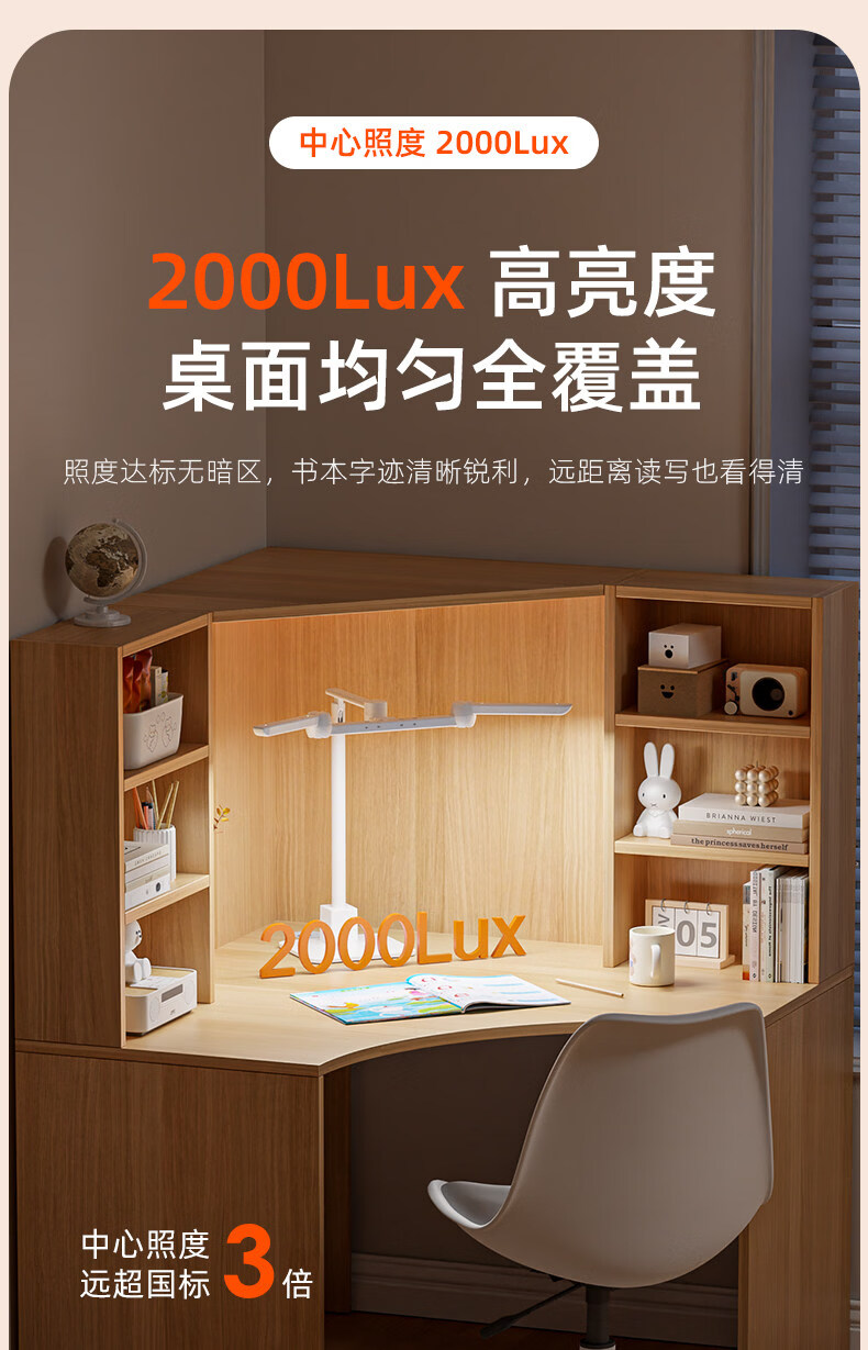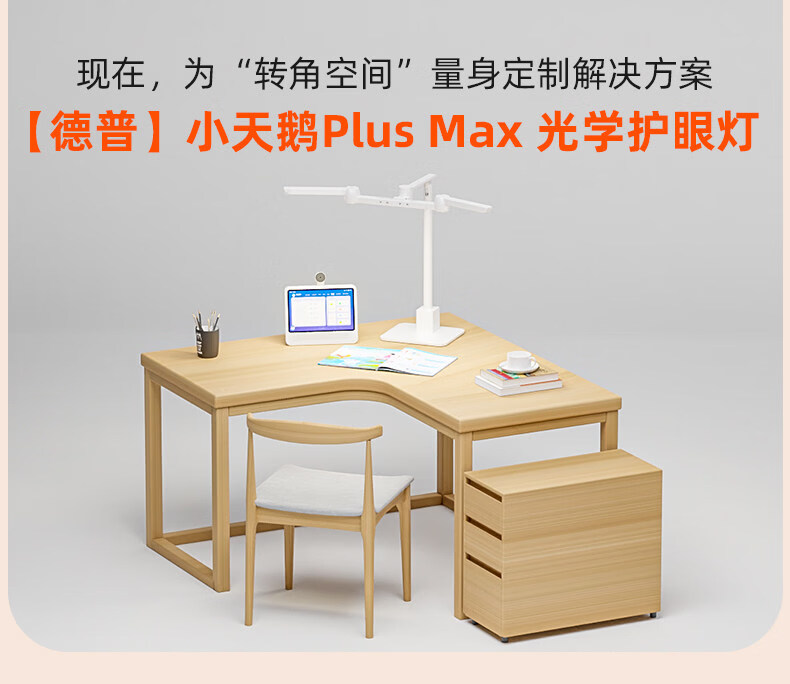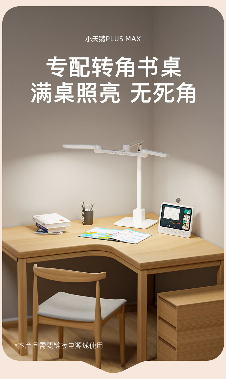dpdupi小天鹅Plus Max国AA级led学习桌护眼台灯学生专用儿童房阅读灯 (怀抱式柔绵光)L型书桌场景推荐