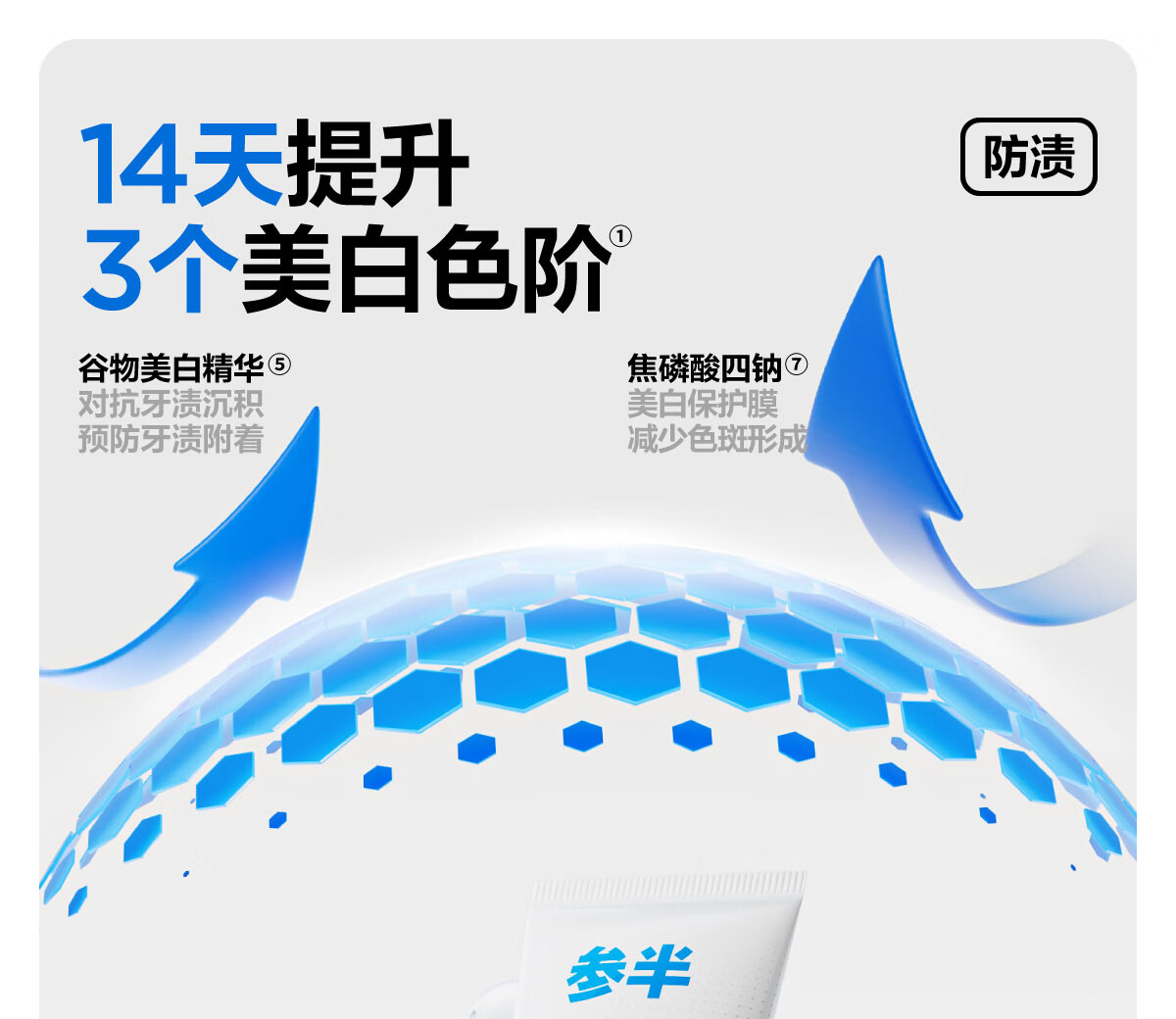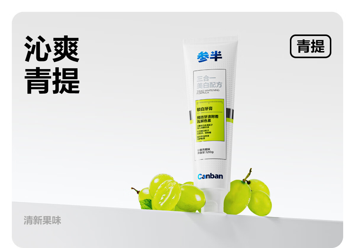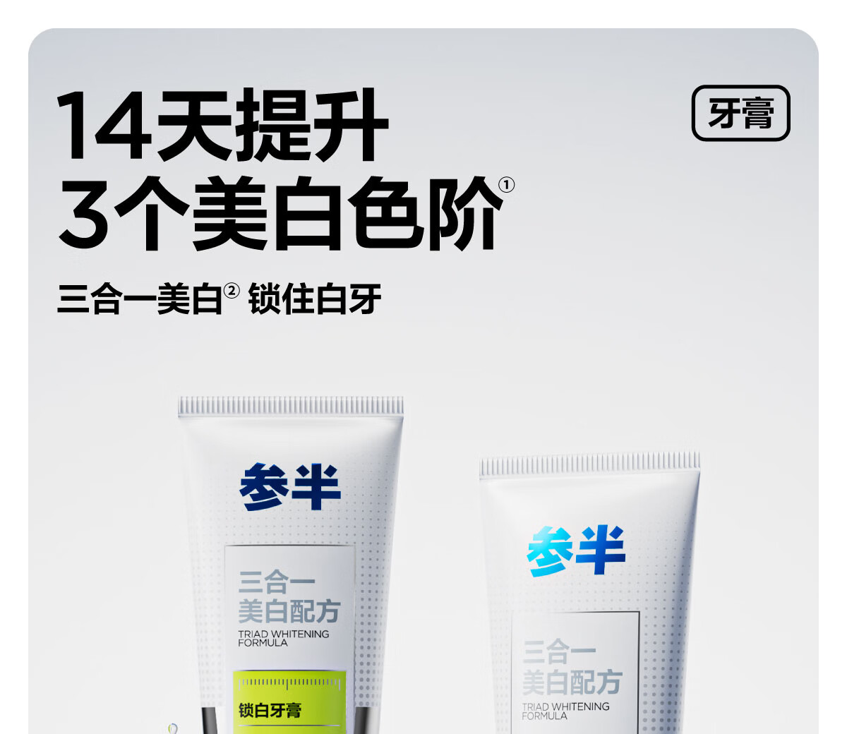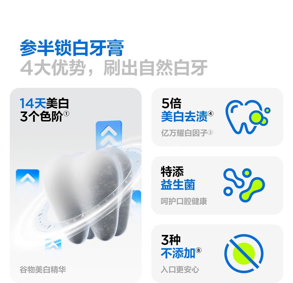 参半锁白牙膏 美白亮白去黄清新去渍防渍益生菌 沁爽青提味120g