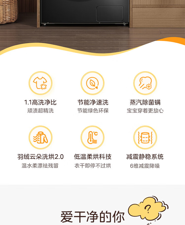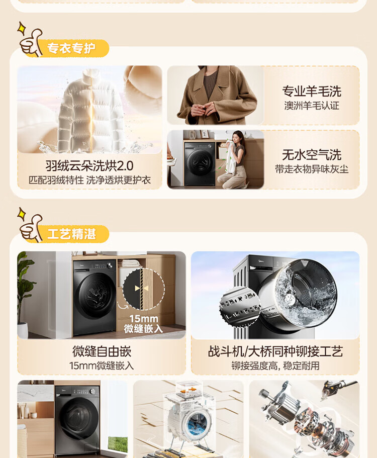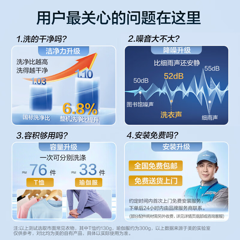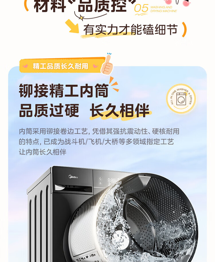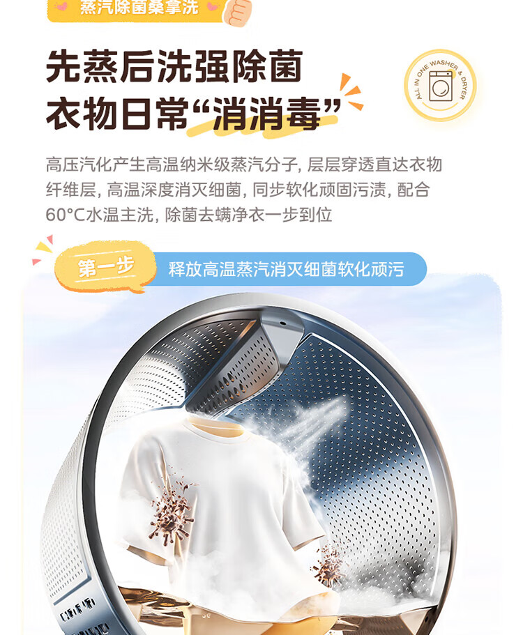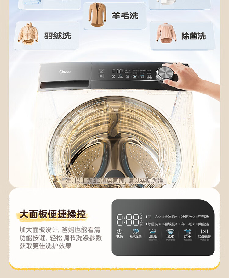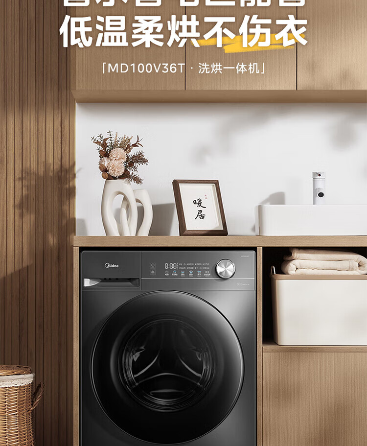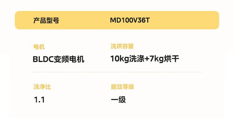 美的(Midea)滚筒洗衣机全自动 10公斤大容量洗脱/洗烘一体 家电补贴20% 一级能效以旧换新10kg MG100V36T洗脱一体