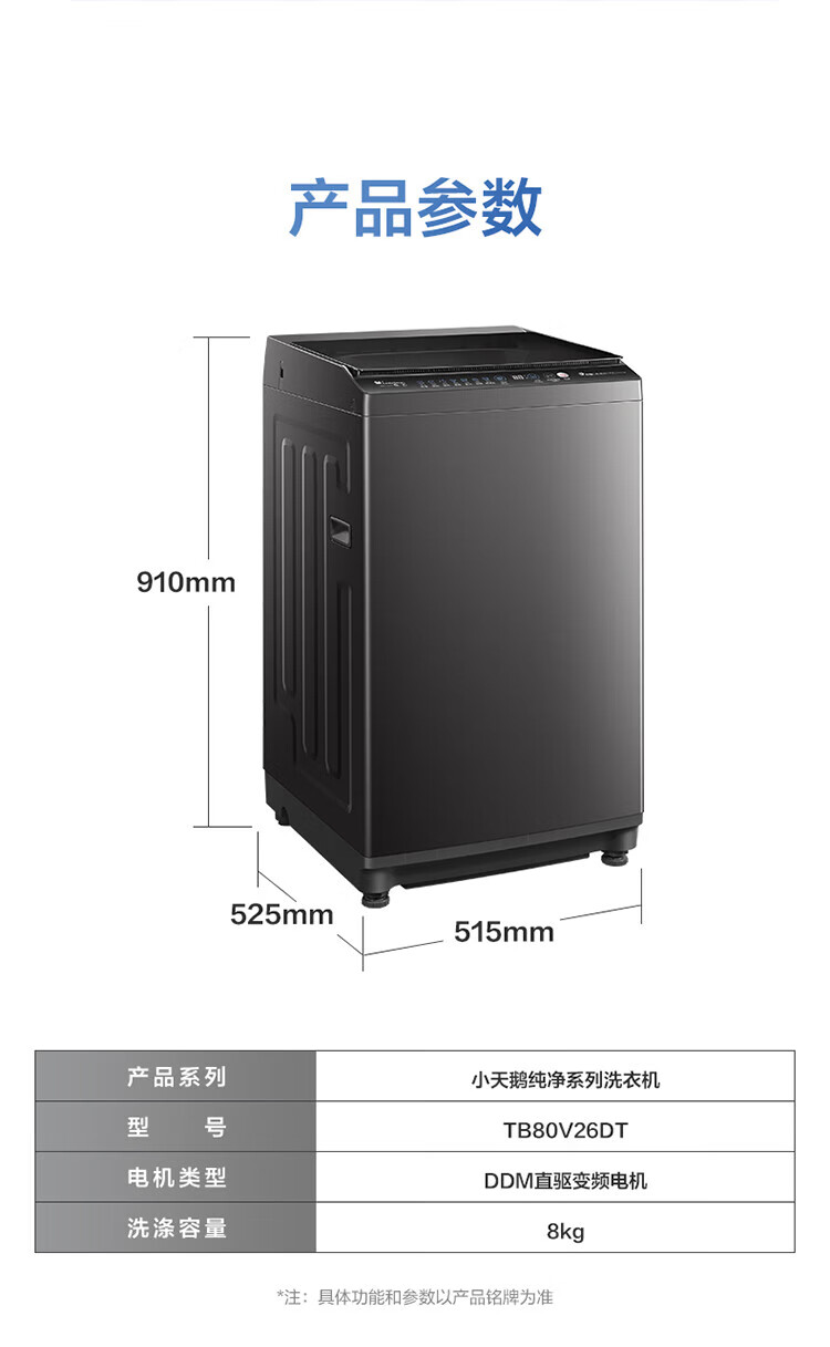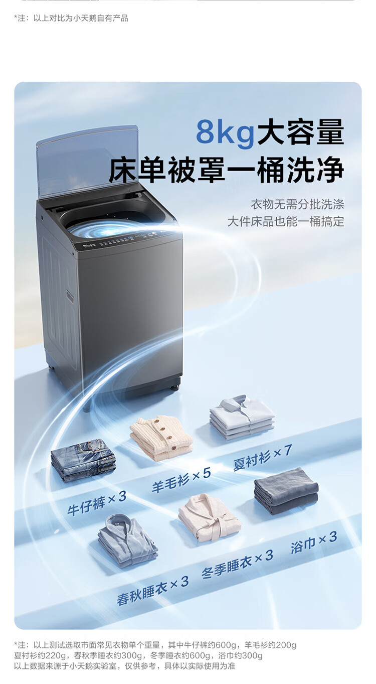 小天鹅(LittleSwan)波轮洗衣机全自动 8/10公斤 一级能效直驱变频电机 除菌除螨 宿舍租房神器 以旧换新 【直驱变频】TB80V26DT