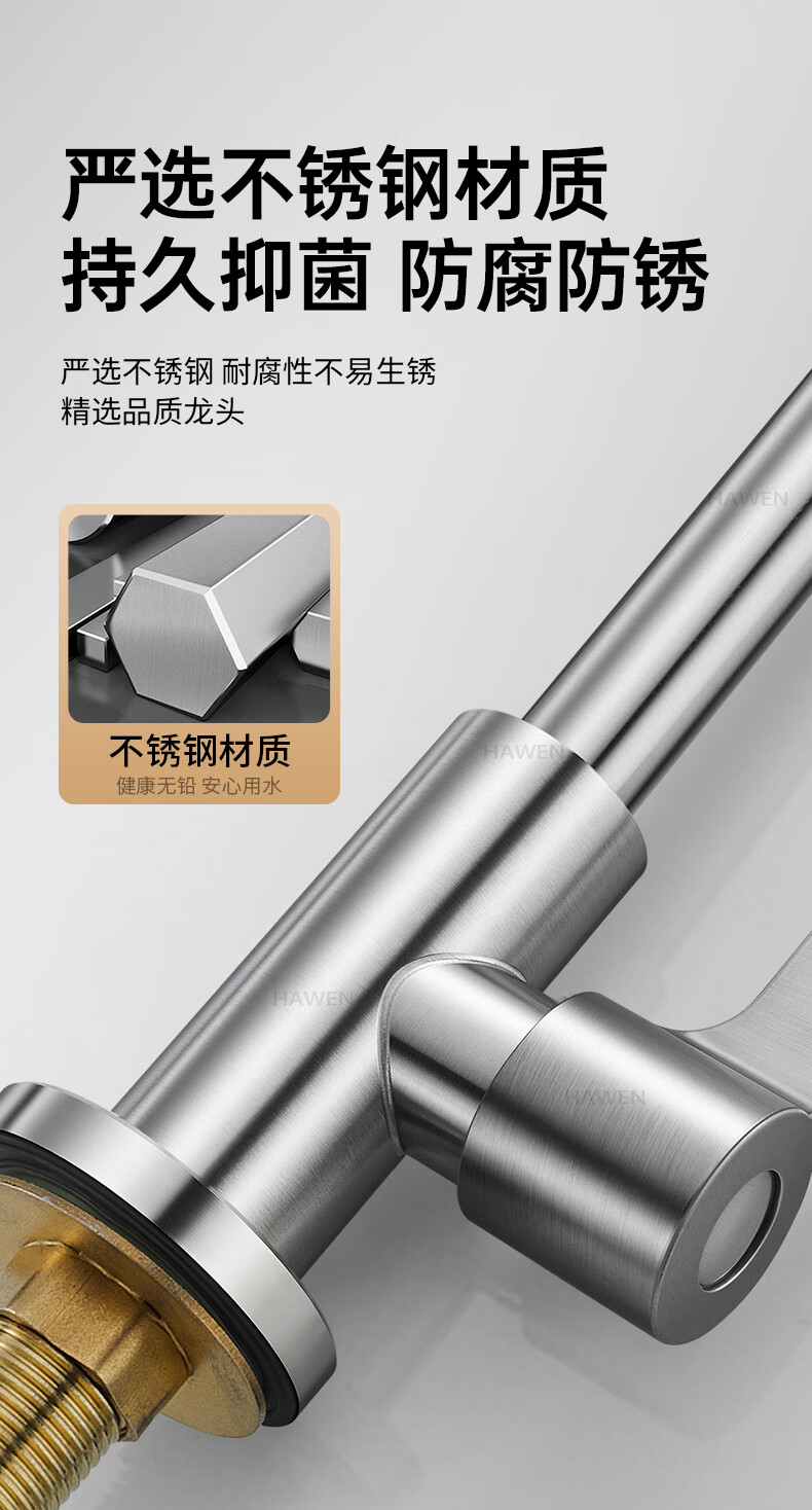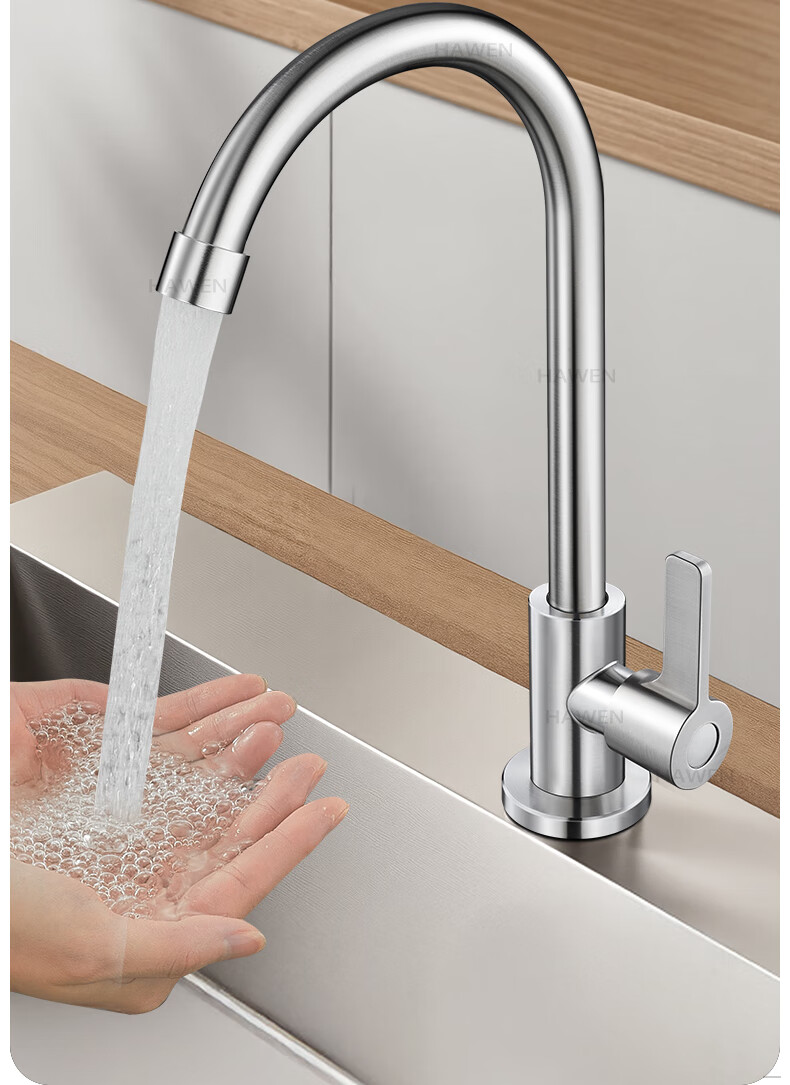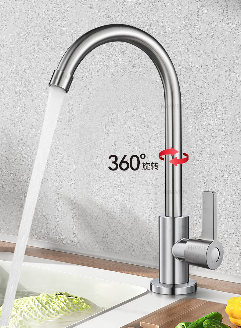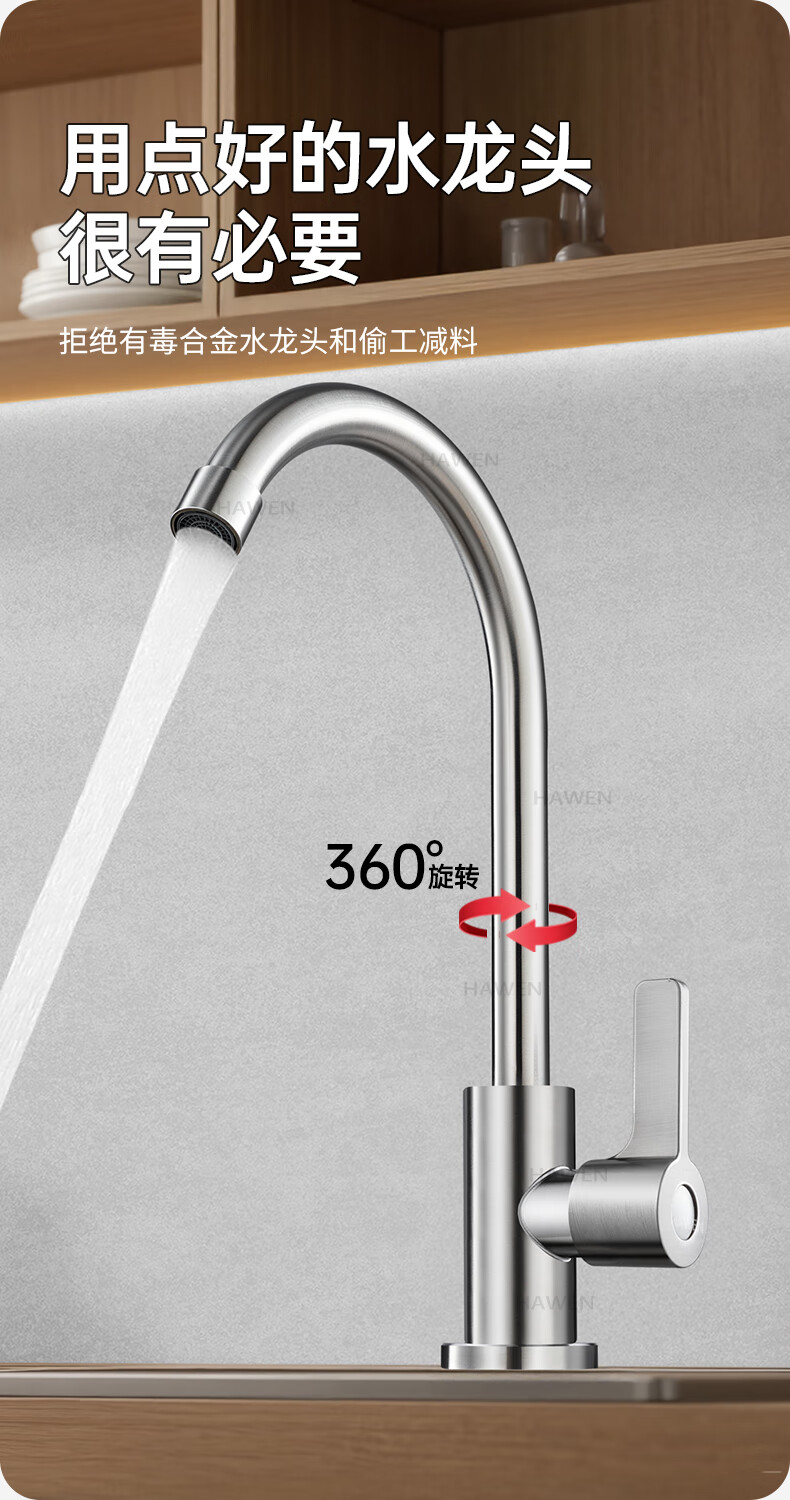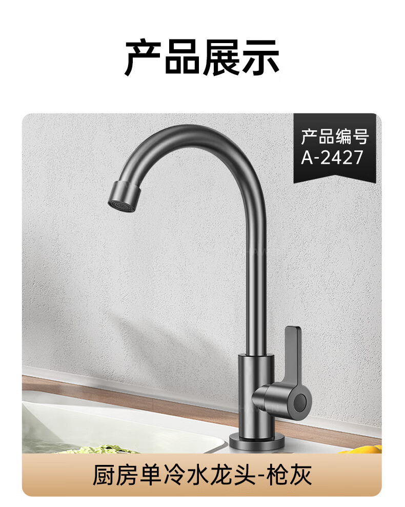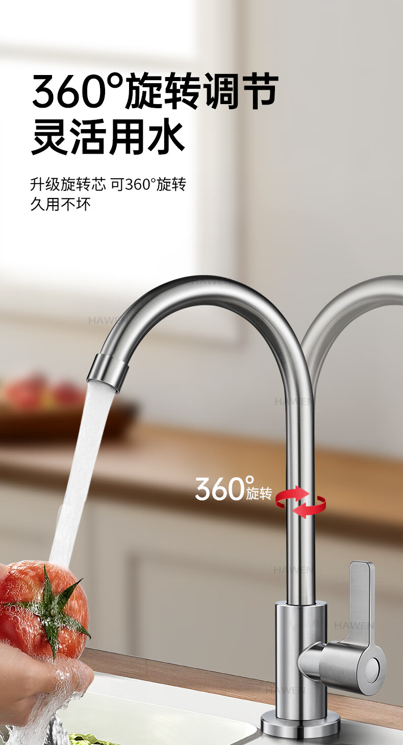 hawen【德国】厨房单冷水龙头洗菜盆洗手池洗碗槽阳台不锈钢水龙头防溅 【枪灰】加厚不锈钢丨万向旋转无死角 送80cm进水管丨20年漏水包退换