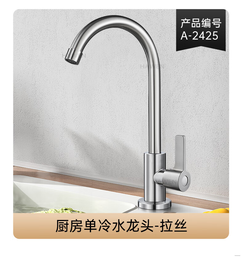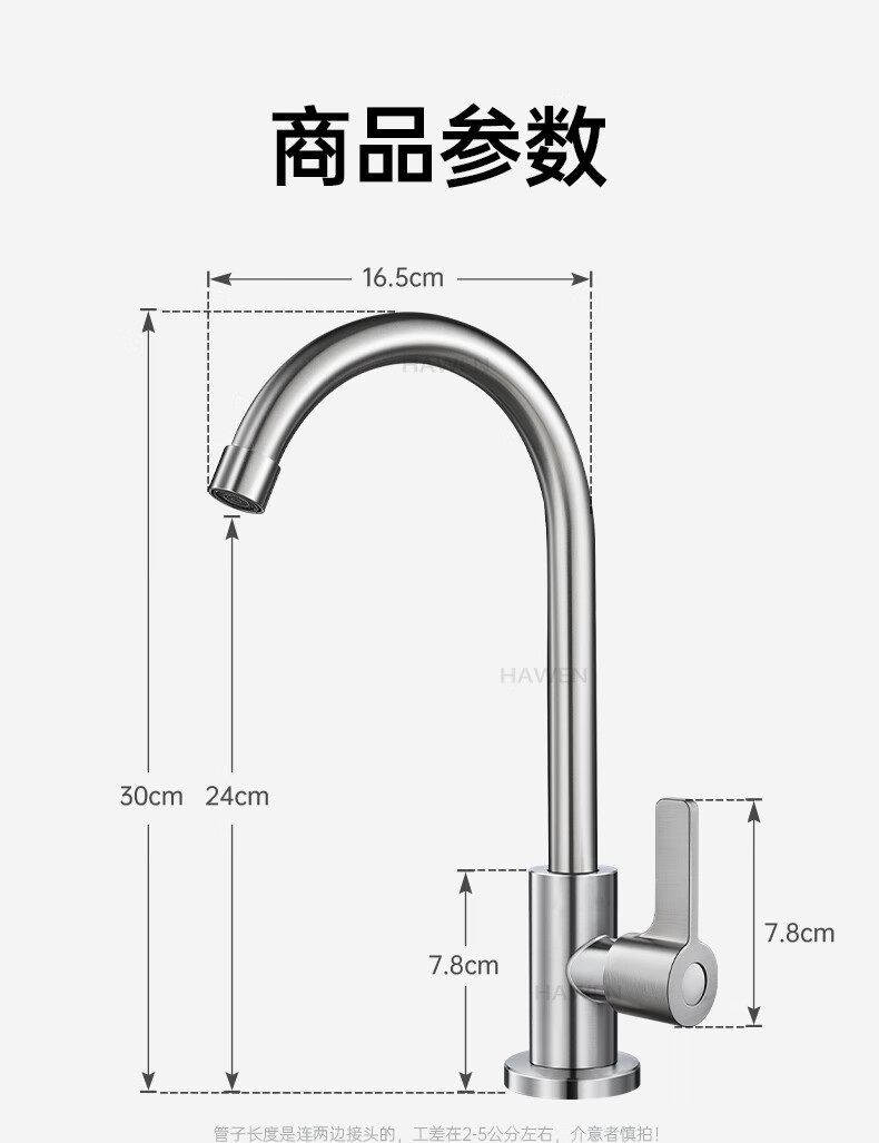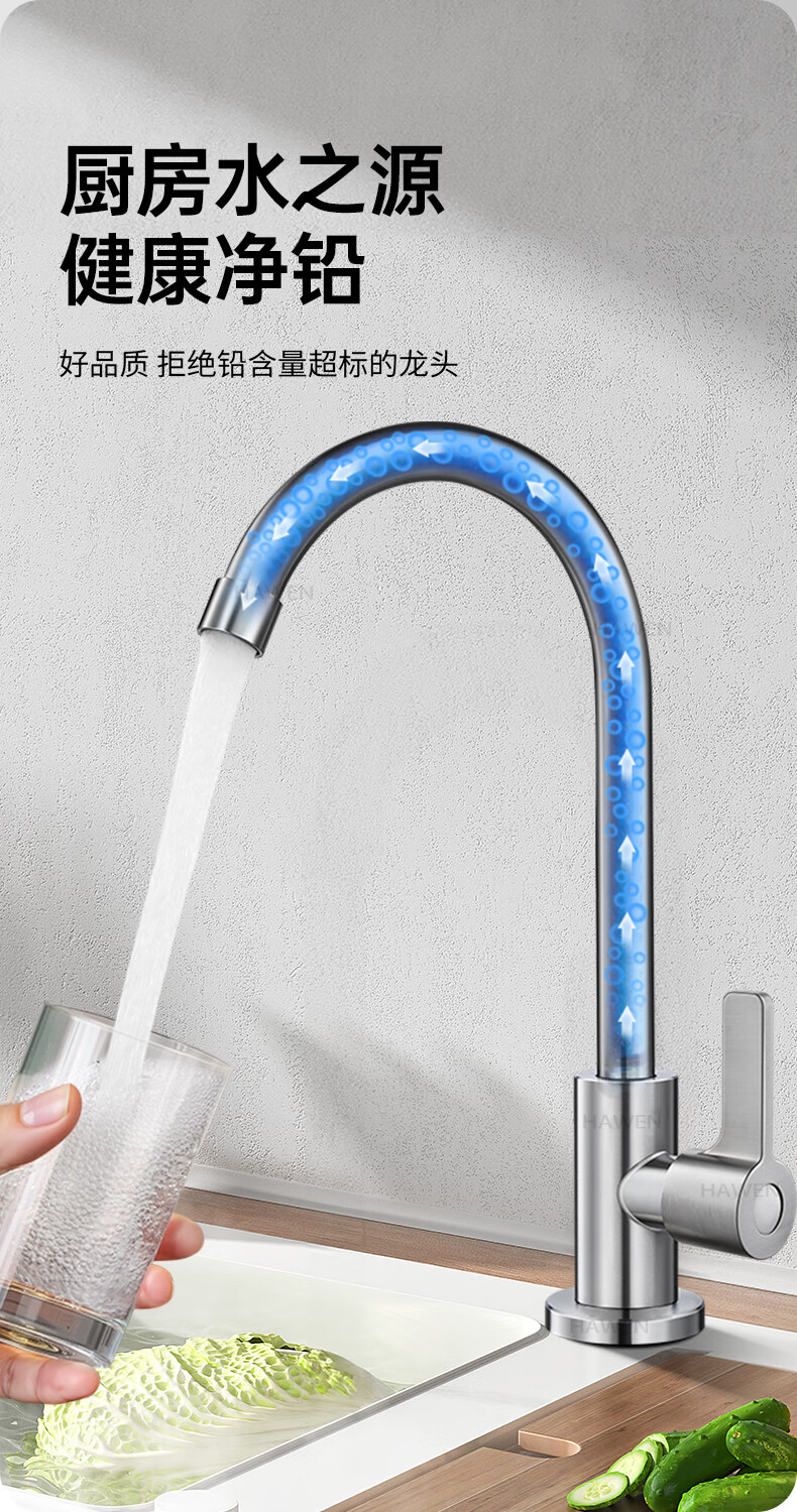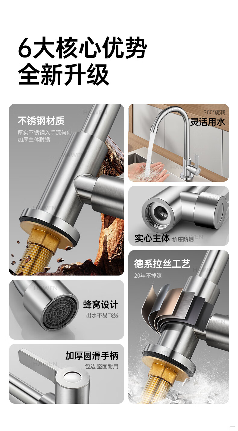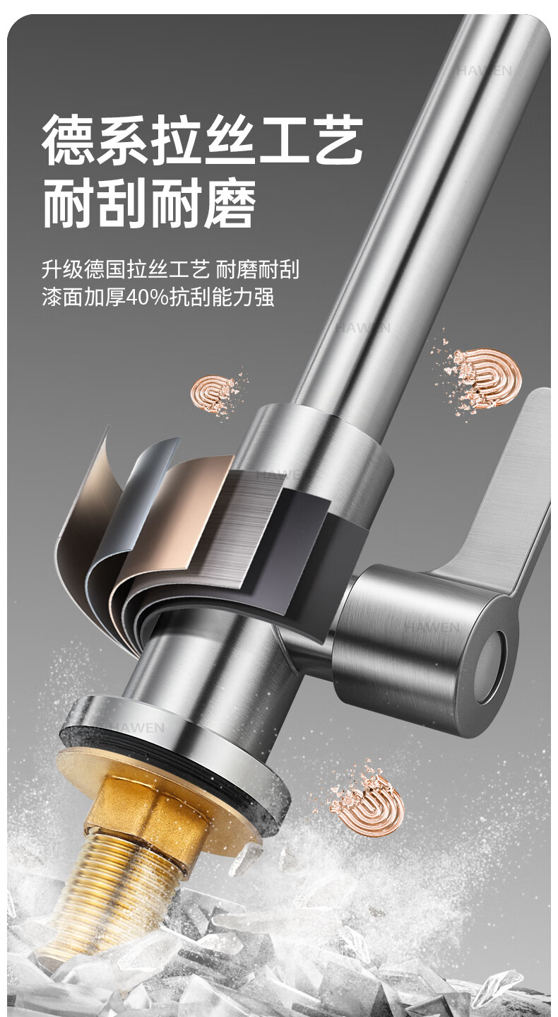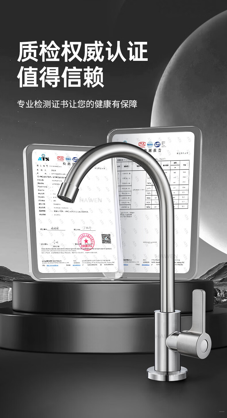 hawen【德国】厨房单冷水龙头洗菜盆洗手池洗碗槽阳台不锈钢水龙头防溅 【枪灰】加厚不锈钢丨万向旋转无死角 送80cm进水管丨20年漏水包退换