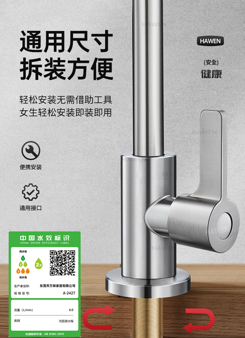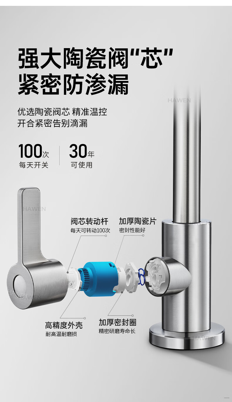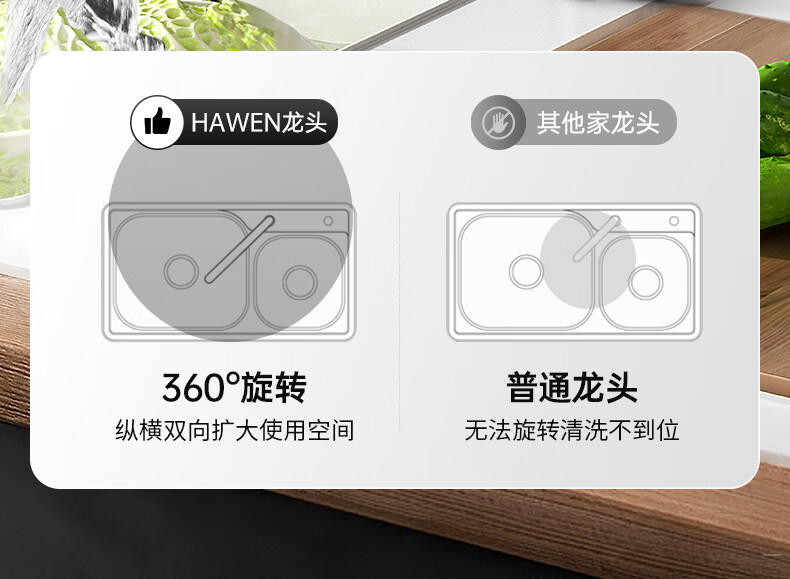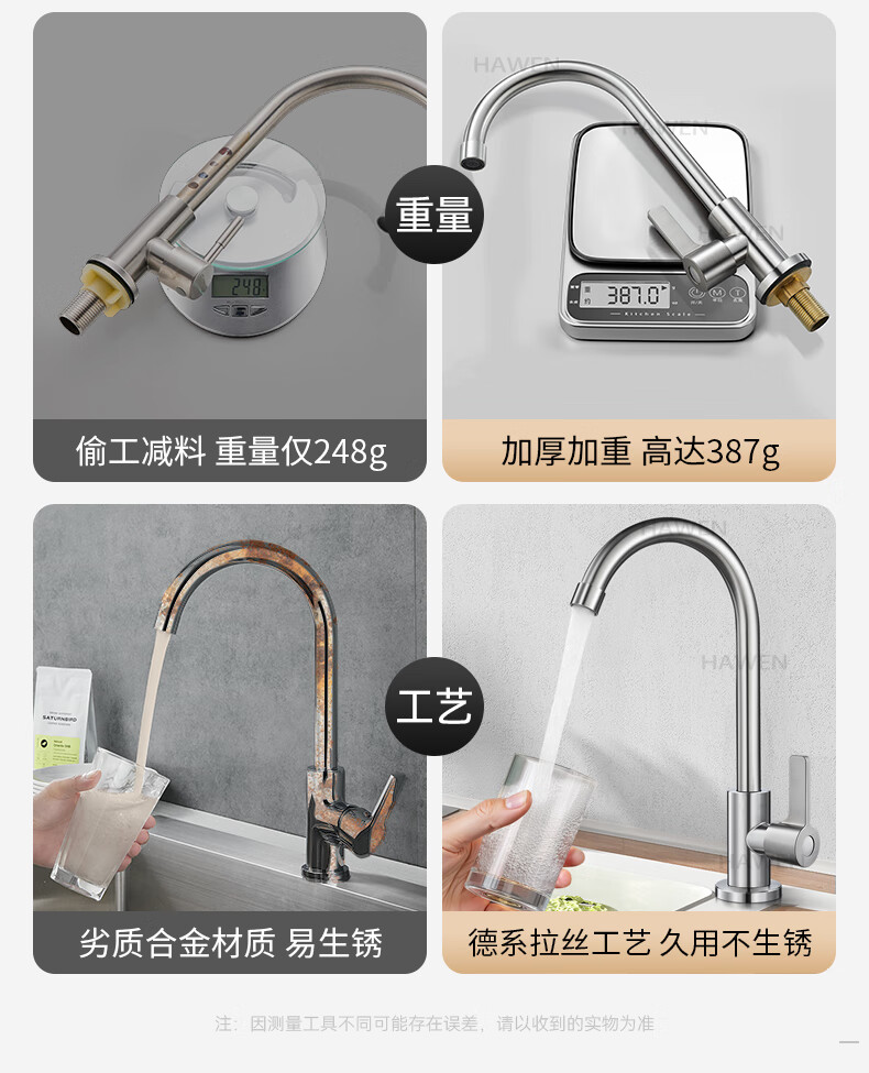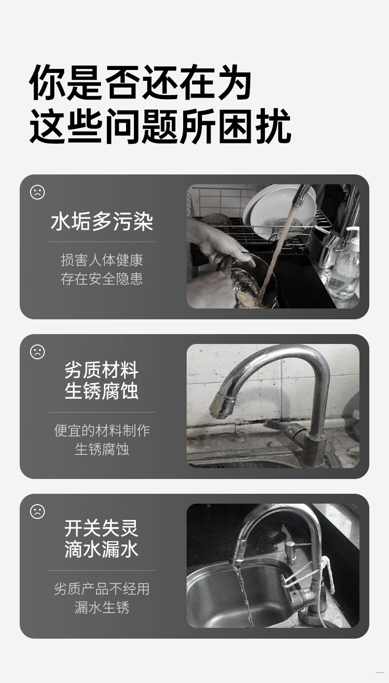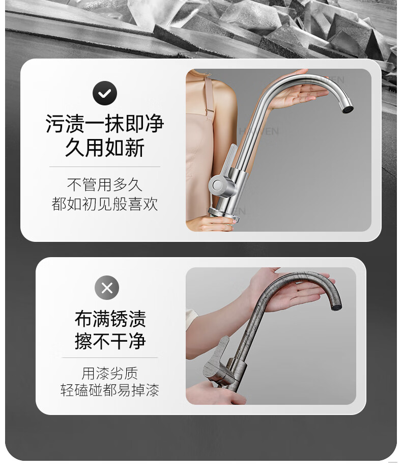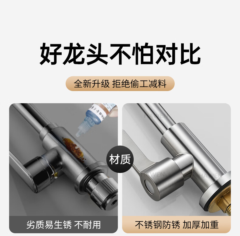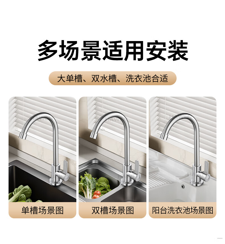 hawen【德国】厨房单冷水龙头洗菜盆洗手池洗碗槽阳台不锈钢水龙头防溅 【枪灰】加厚不锈钢丨万向旋转无死角 送80cm进水管丨20年漏水包退换