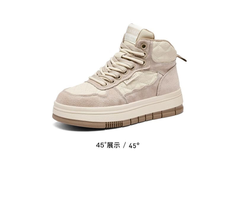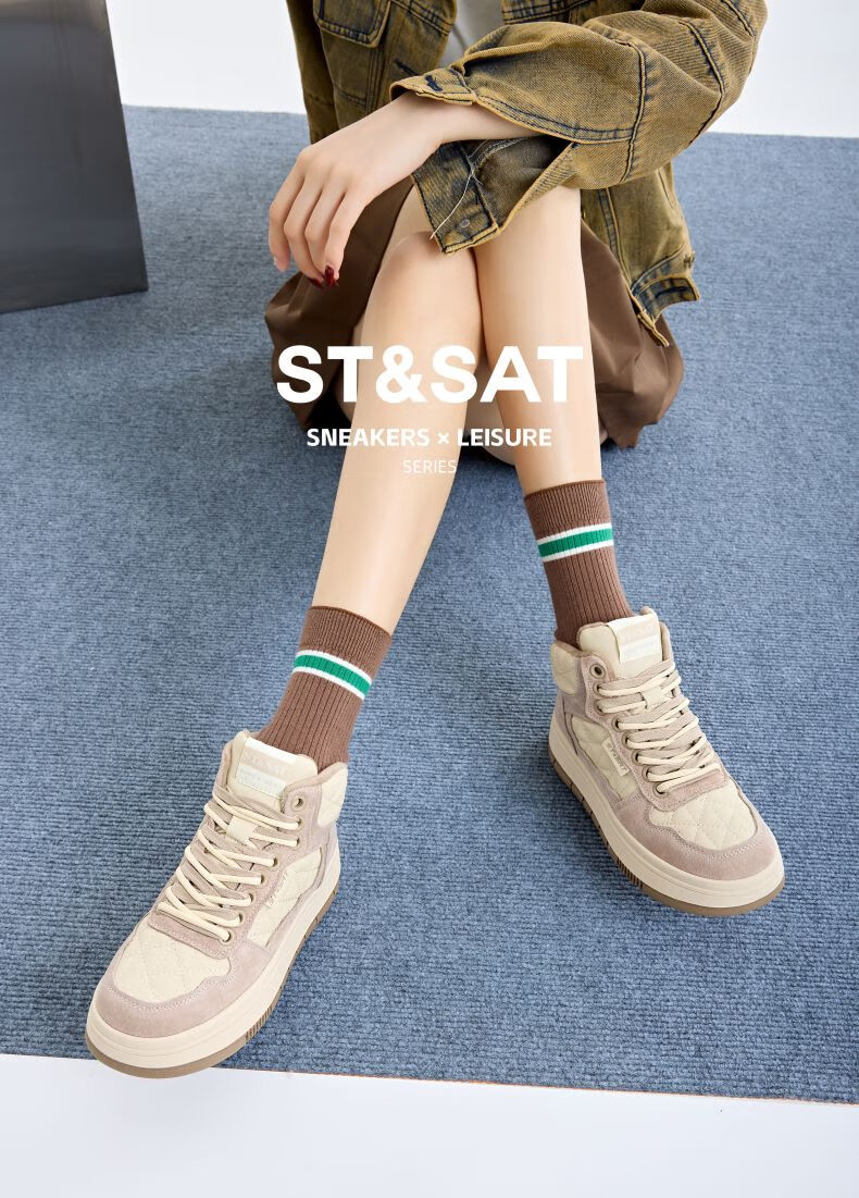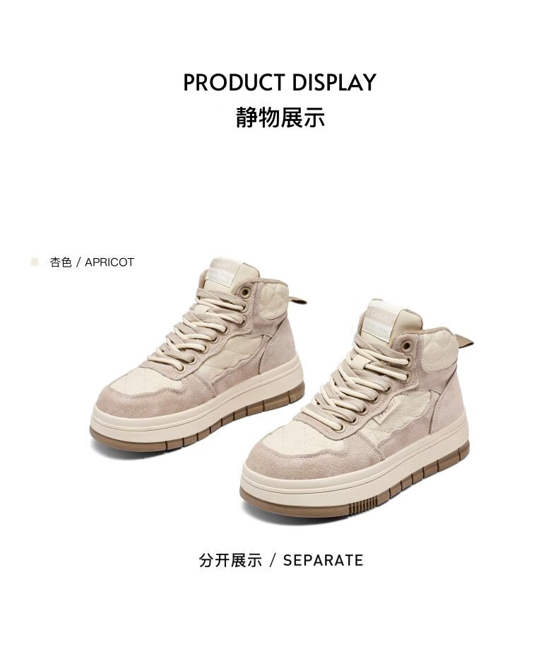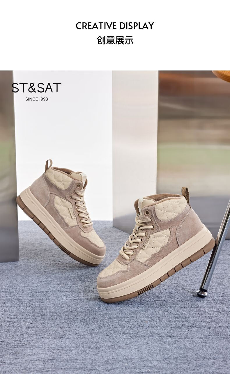 星期六(St&Sat)百搭拼色系带休闲鞋2025新款加绒爆款板鞋女高帮鞋 黑色 35