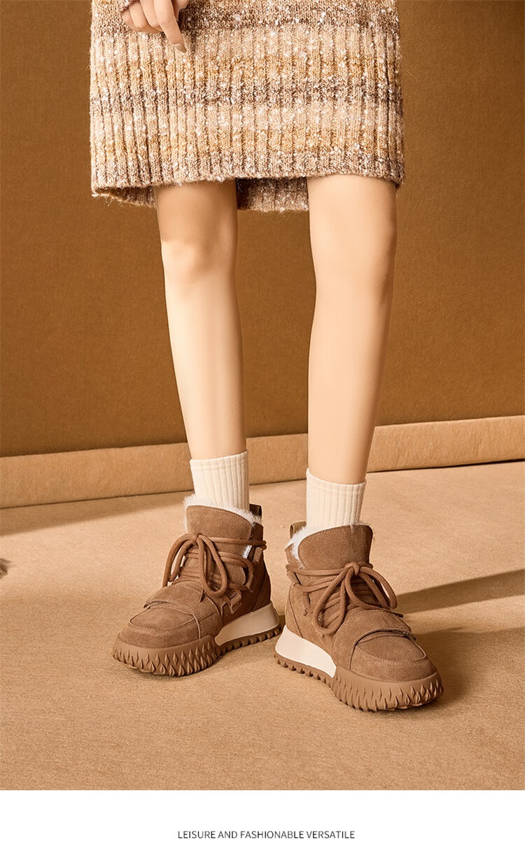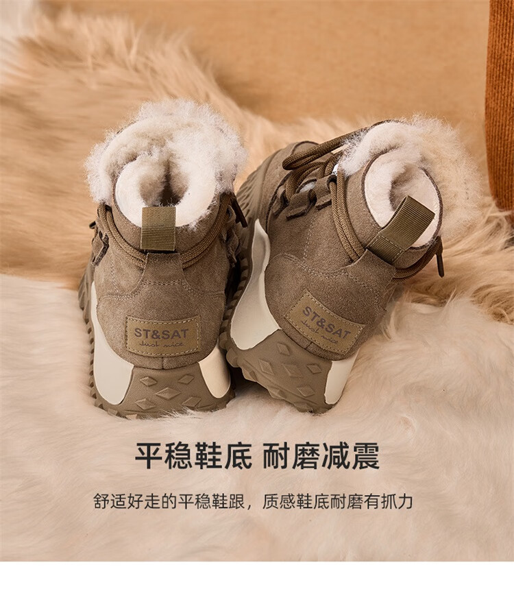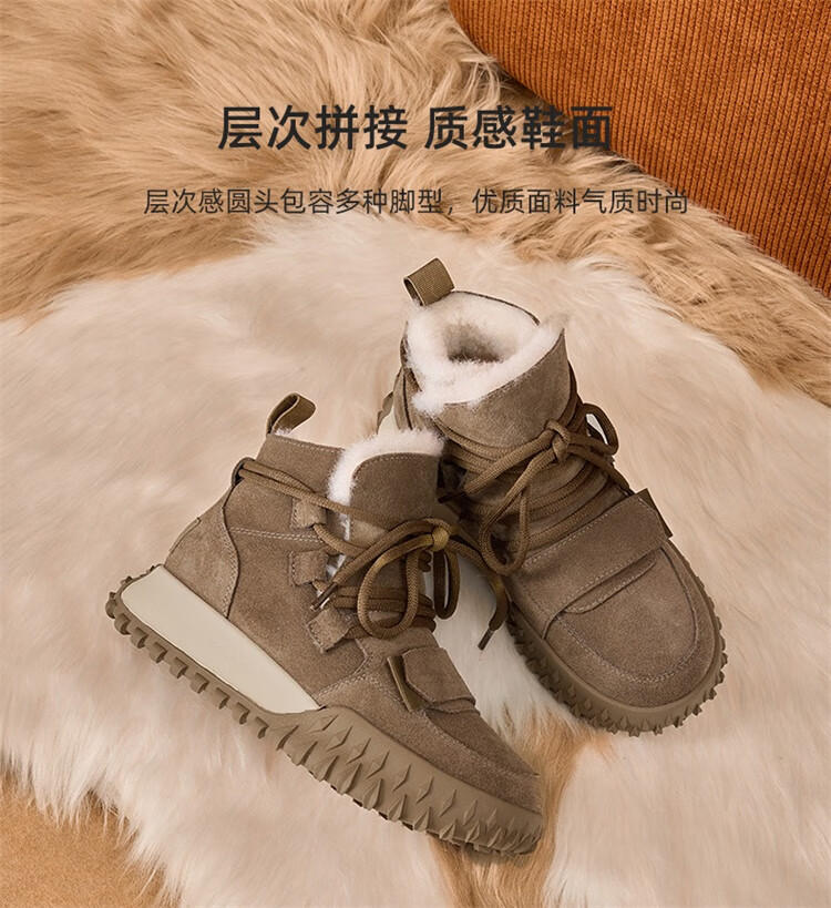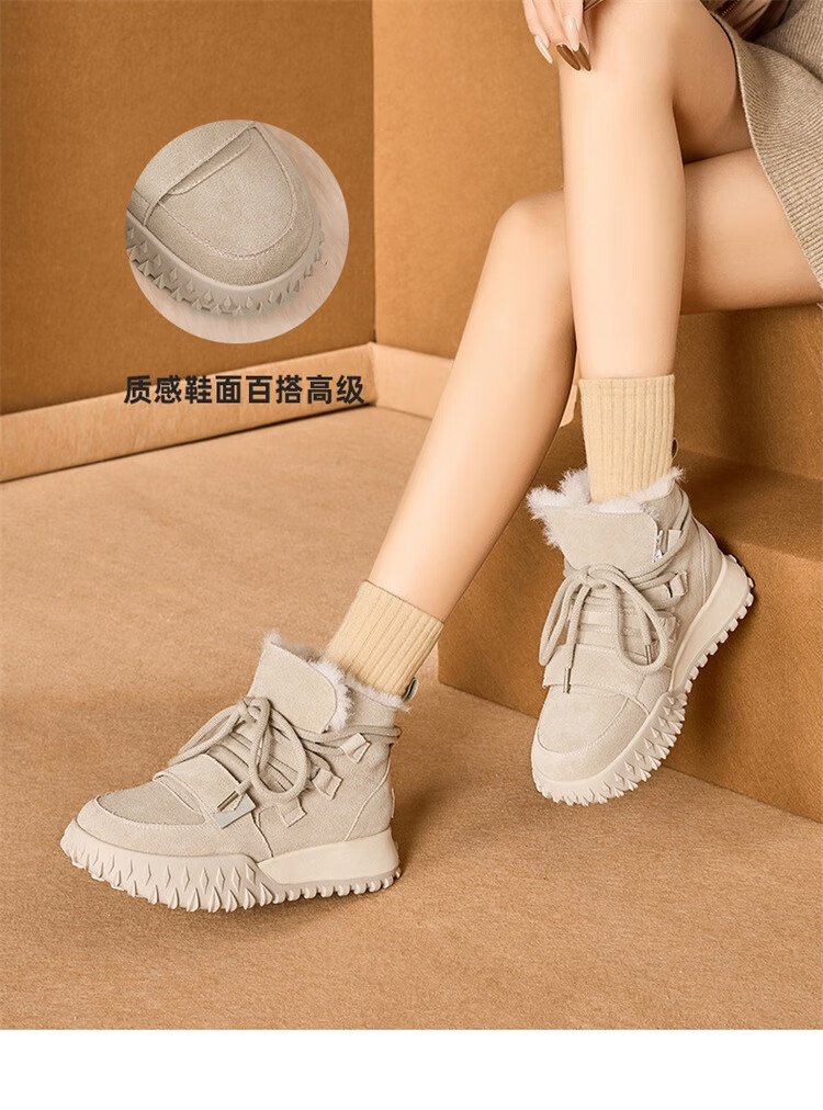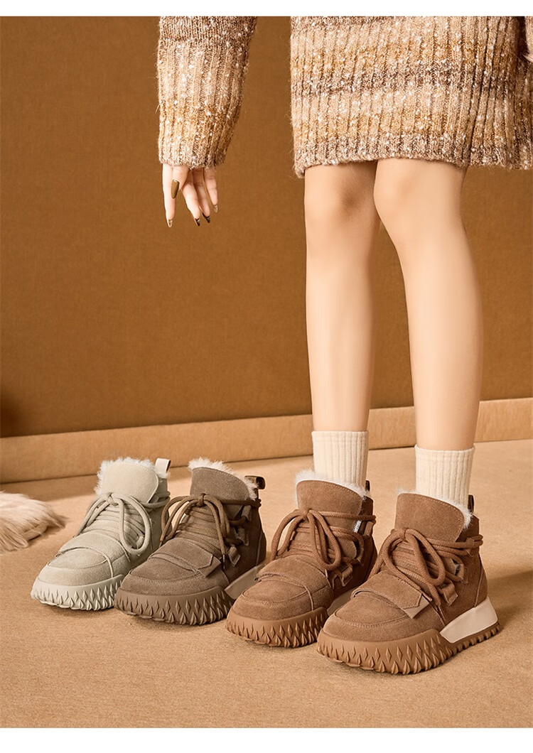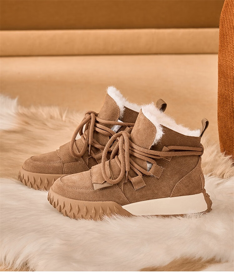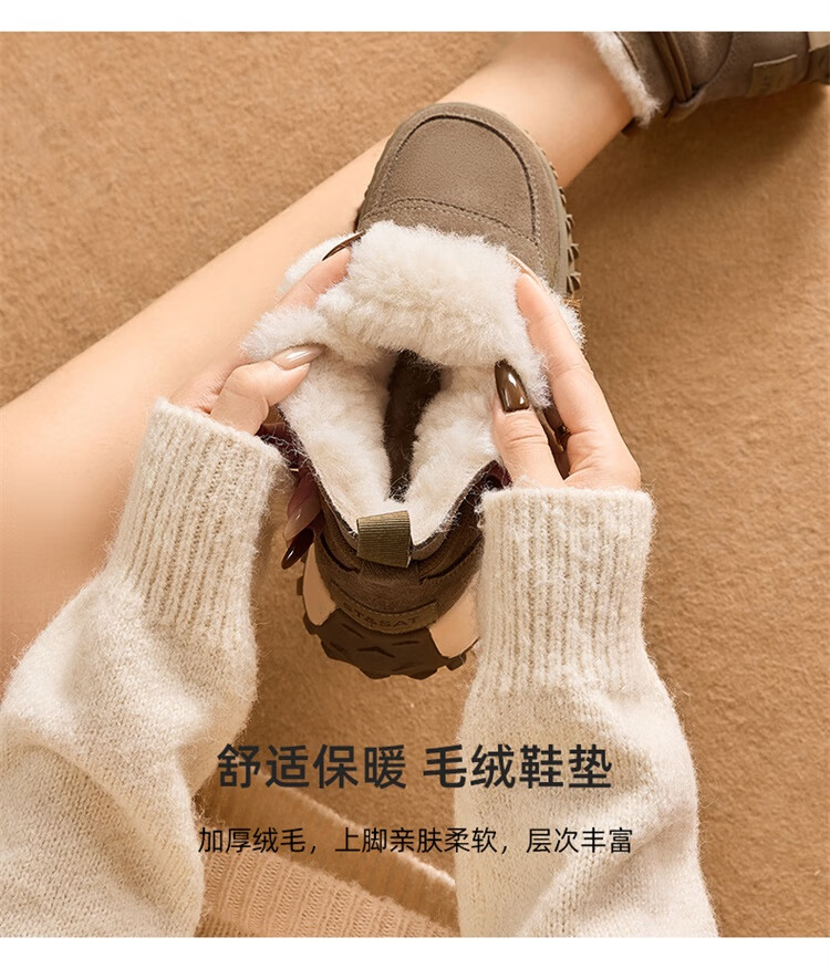 星期六加绒厚底雪地靴女款2025新款冬季棕色复古保暖短靴小个子增高棉鞋 驼色 【加绒加厚】跟高3cm 39