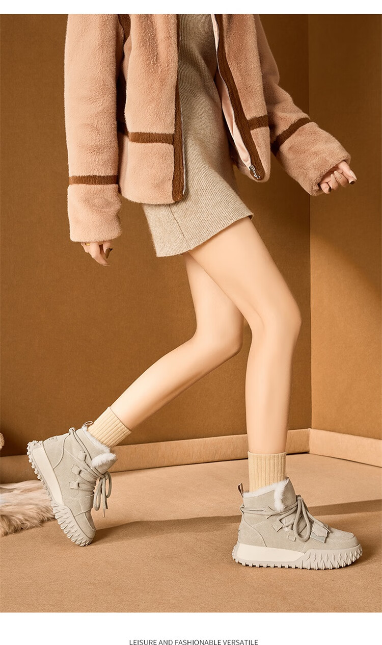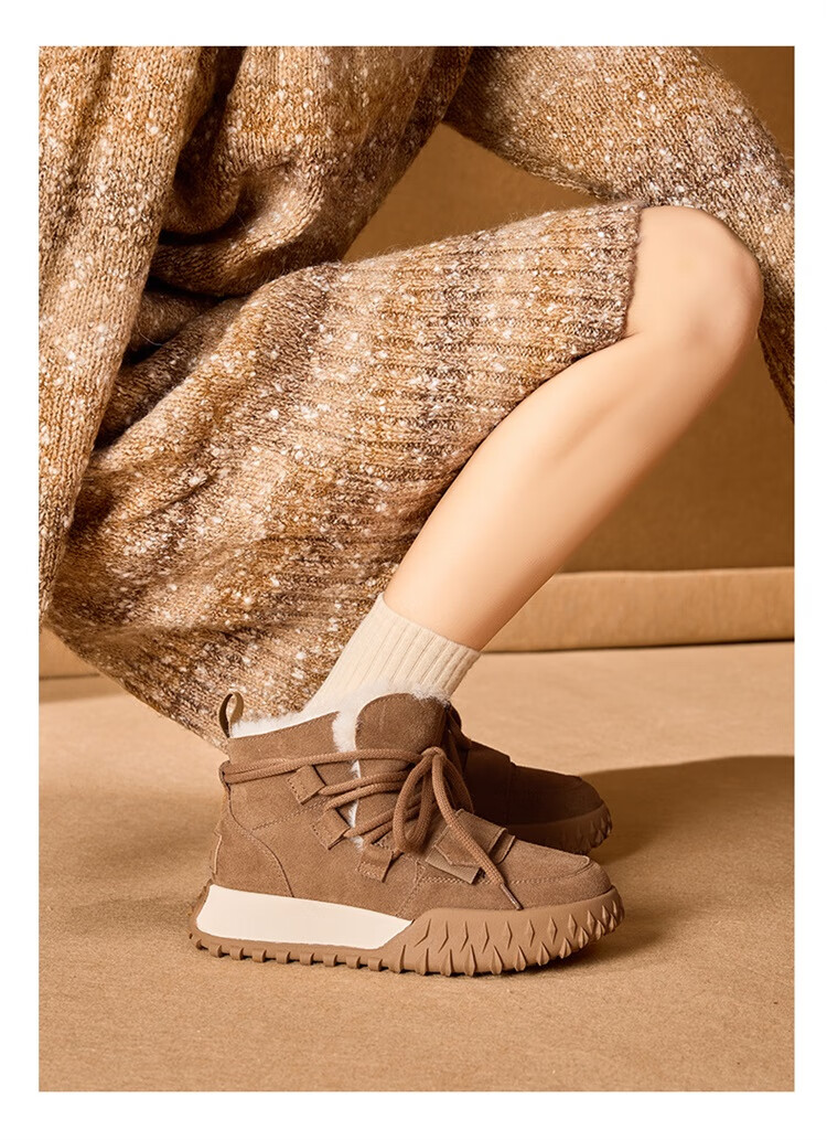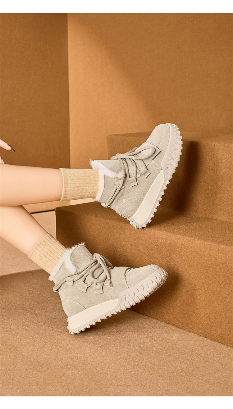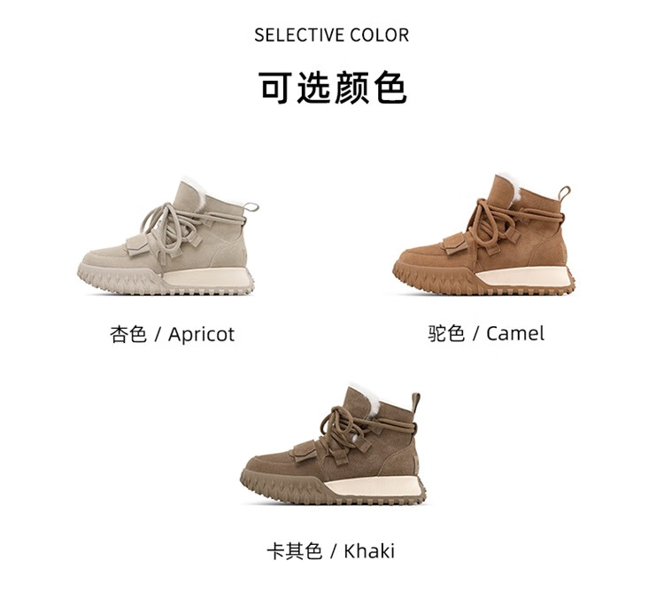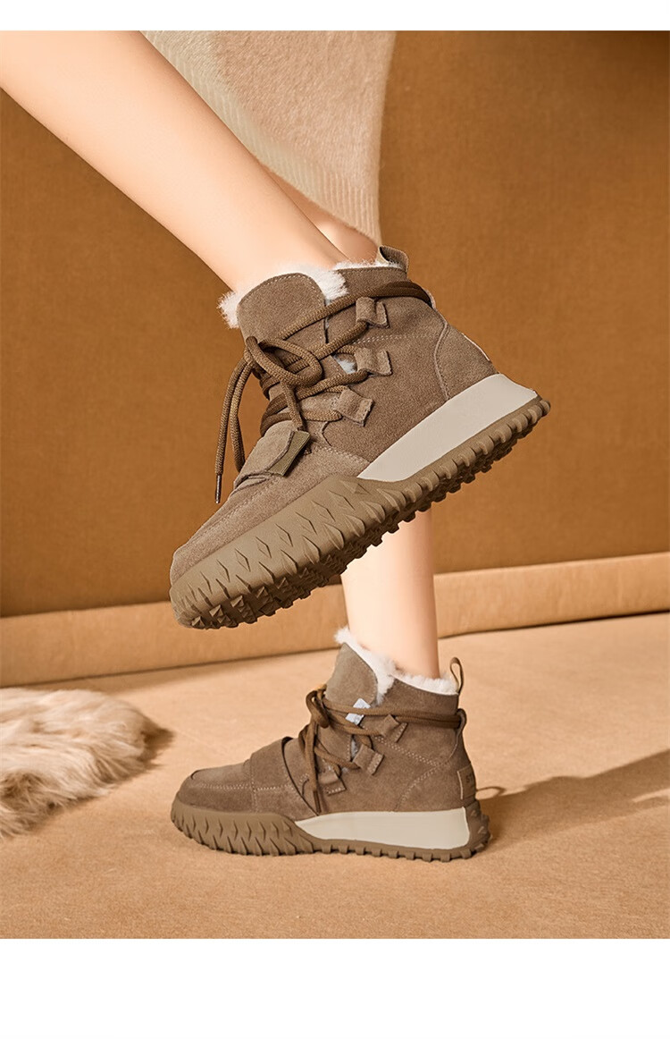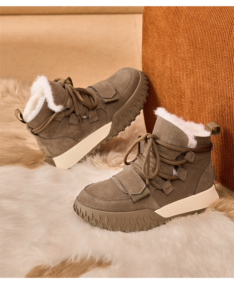 星期六加绒厚底雪地靴女款2025新款冬季棕色复古保暖短靴小个子增高棉鞋 驼色 【加绒加厚】跟高3cm 39
