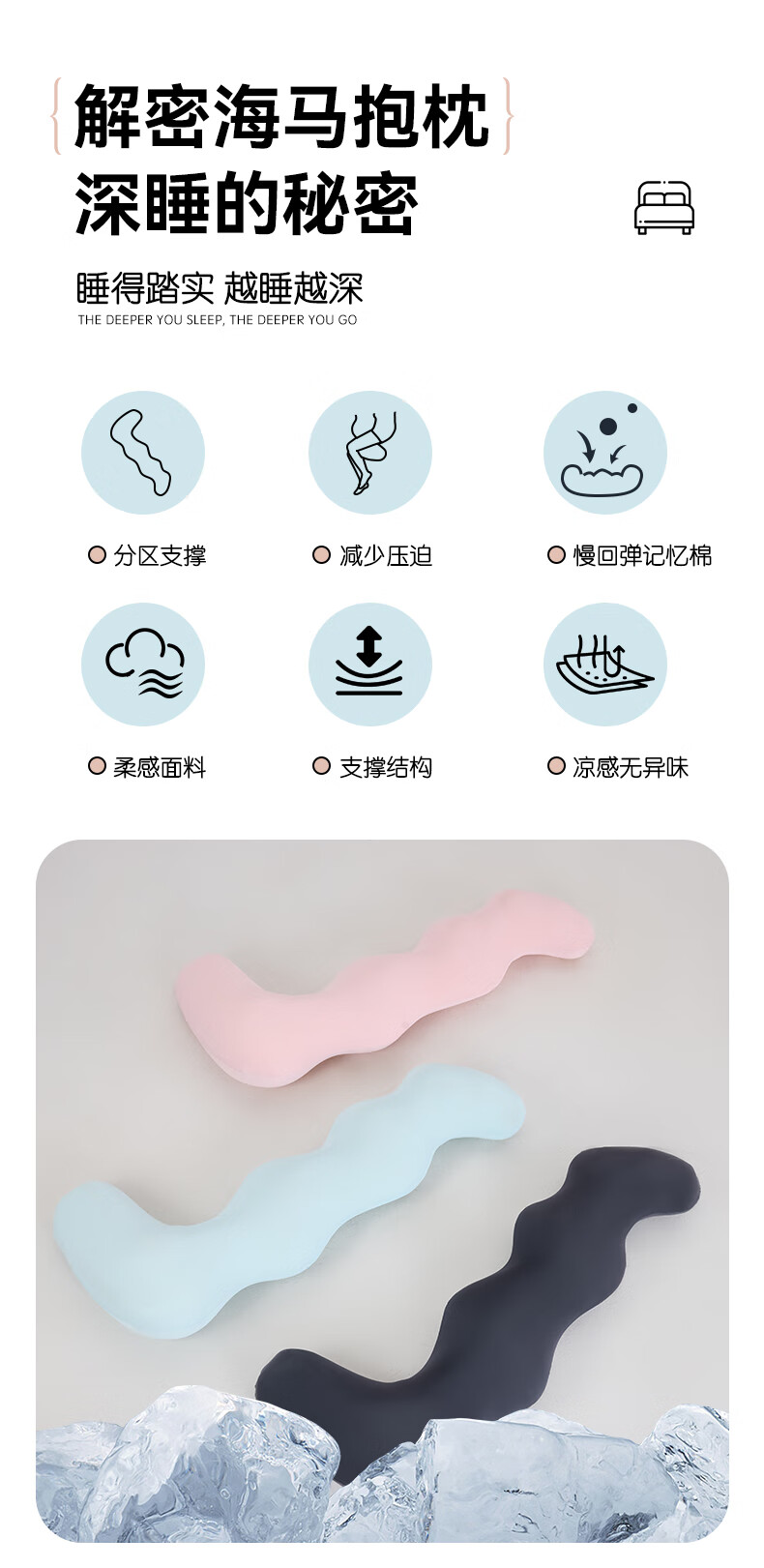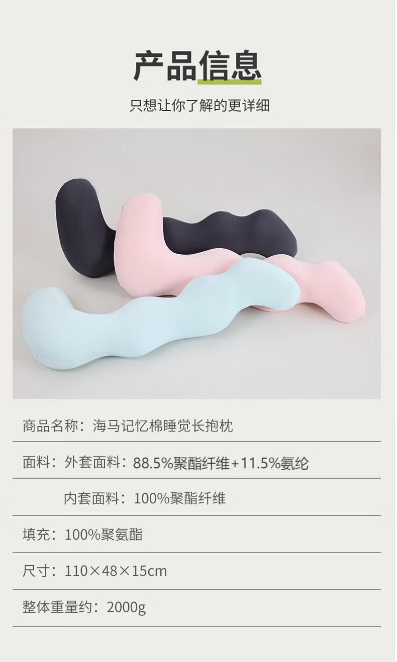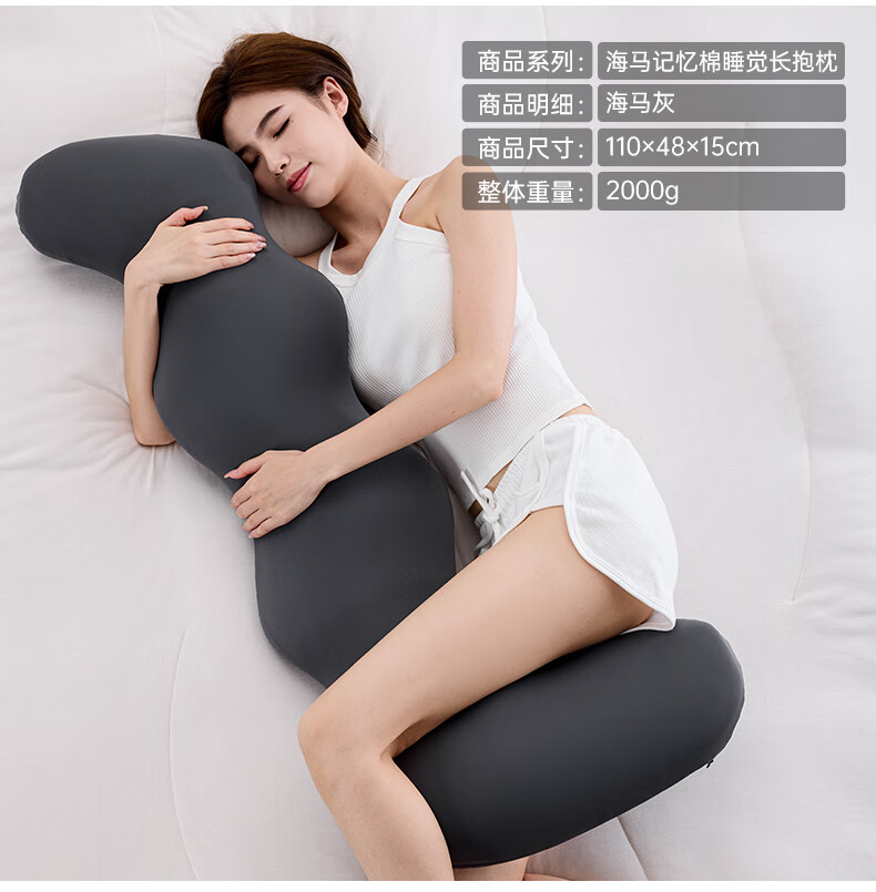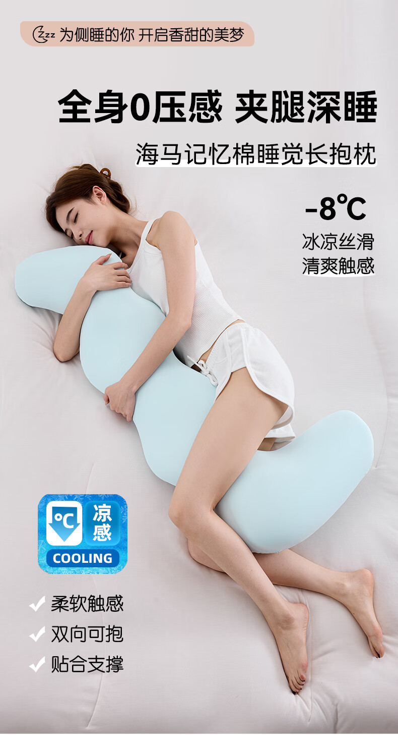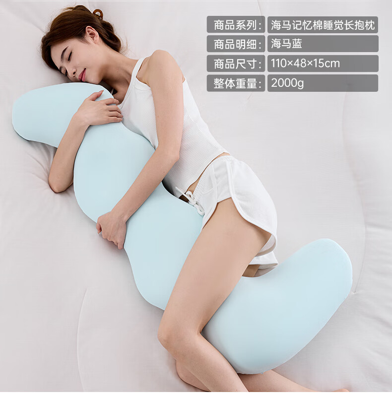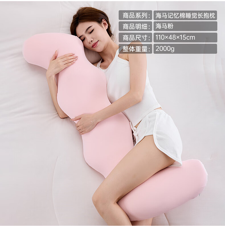VJE床上抱枕睡觉孕妇夹腿长条大抱枕男女生睡觉专用记忆棉夹腿侧睡枕 四季款-海马粉 含枕芯 110*48*15cm【记忆棉材质内芯】