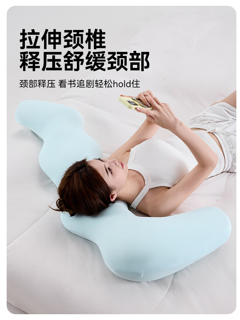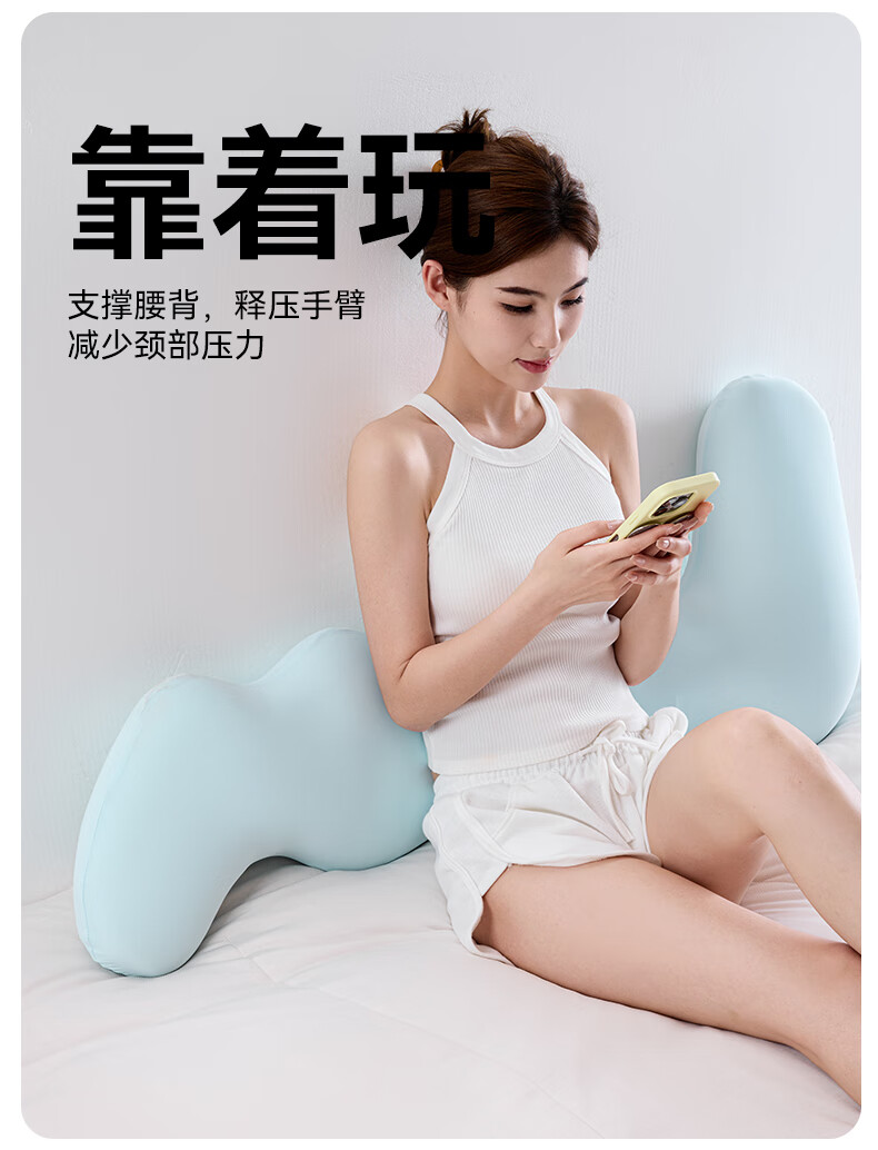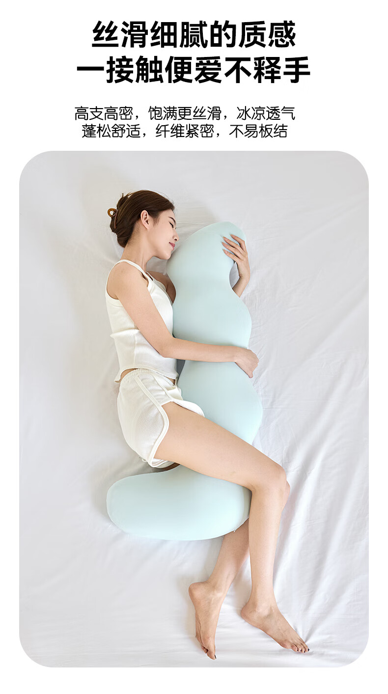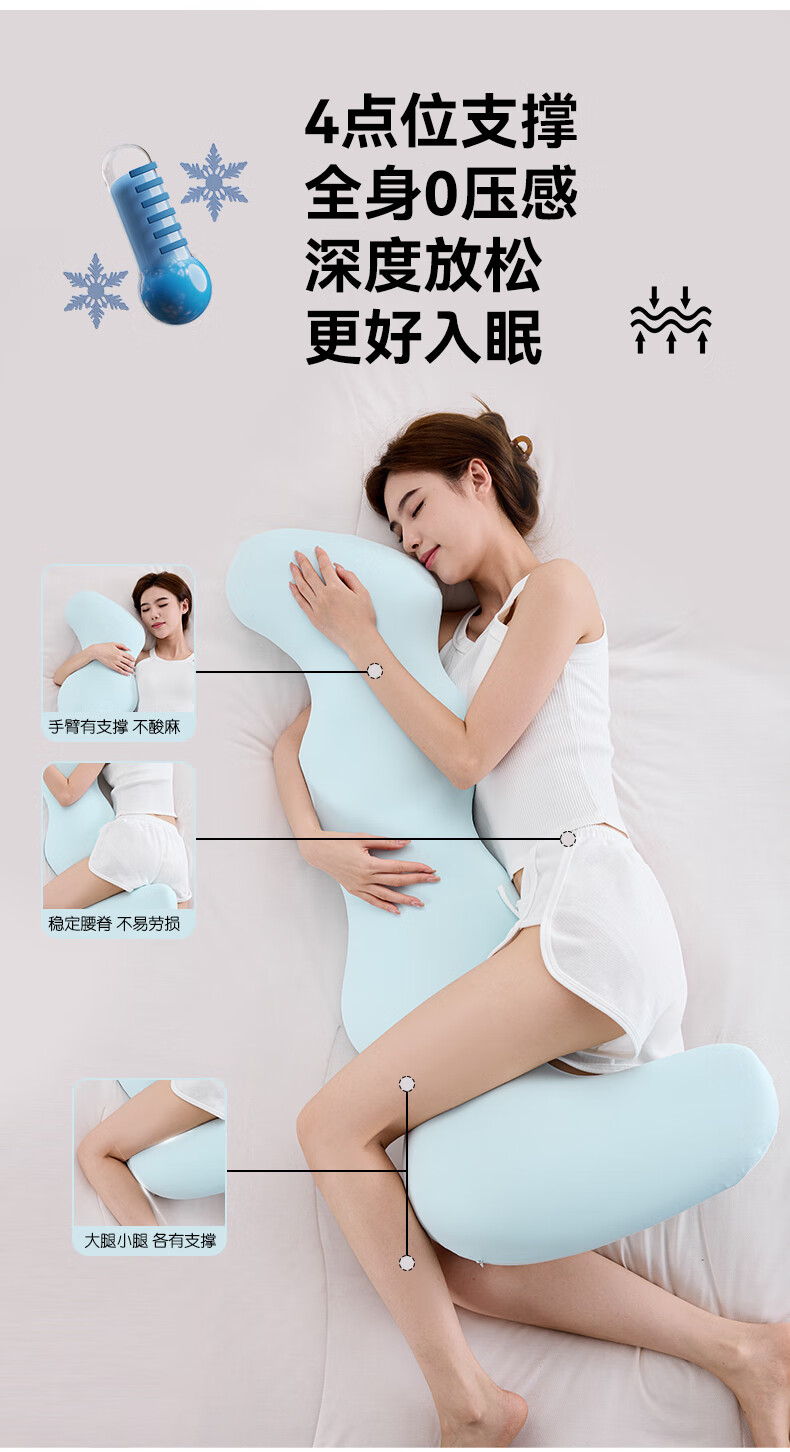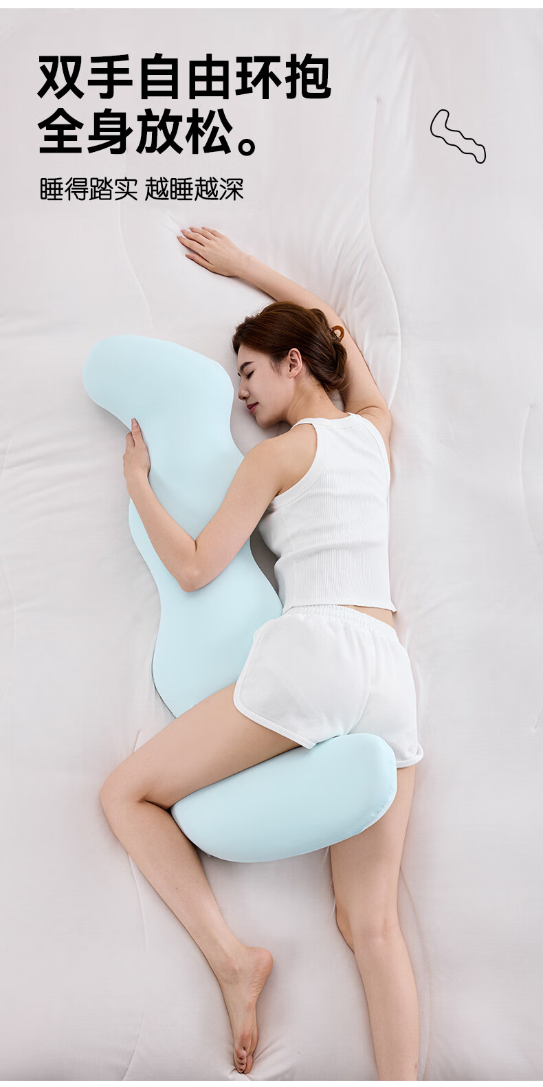 VJE床上抱枕睡觉孕妇夹腿长条大抱枕男女生睡觉专用记忆棉夹腿侧睡枕 四季款-海马粉 含枕芯 110*48*15cm【记忆棉材质内芯】