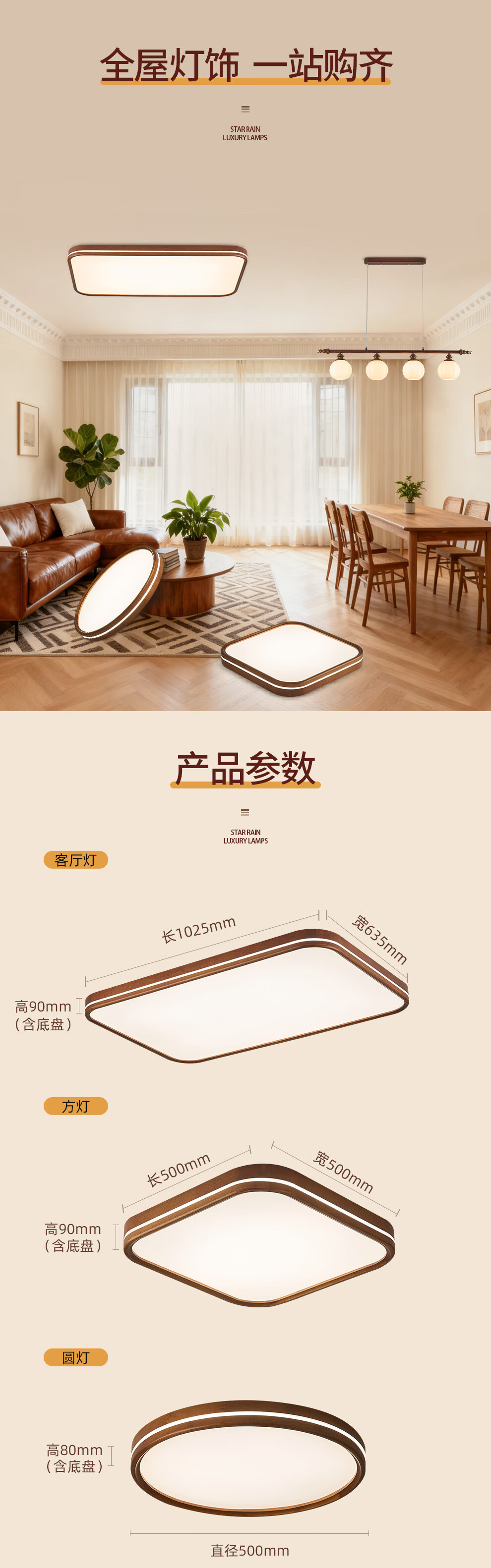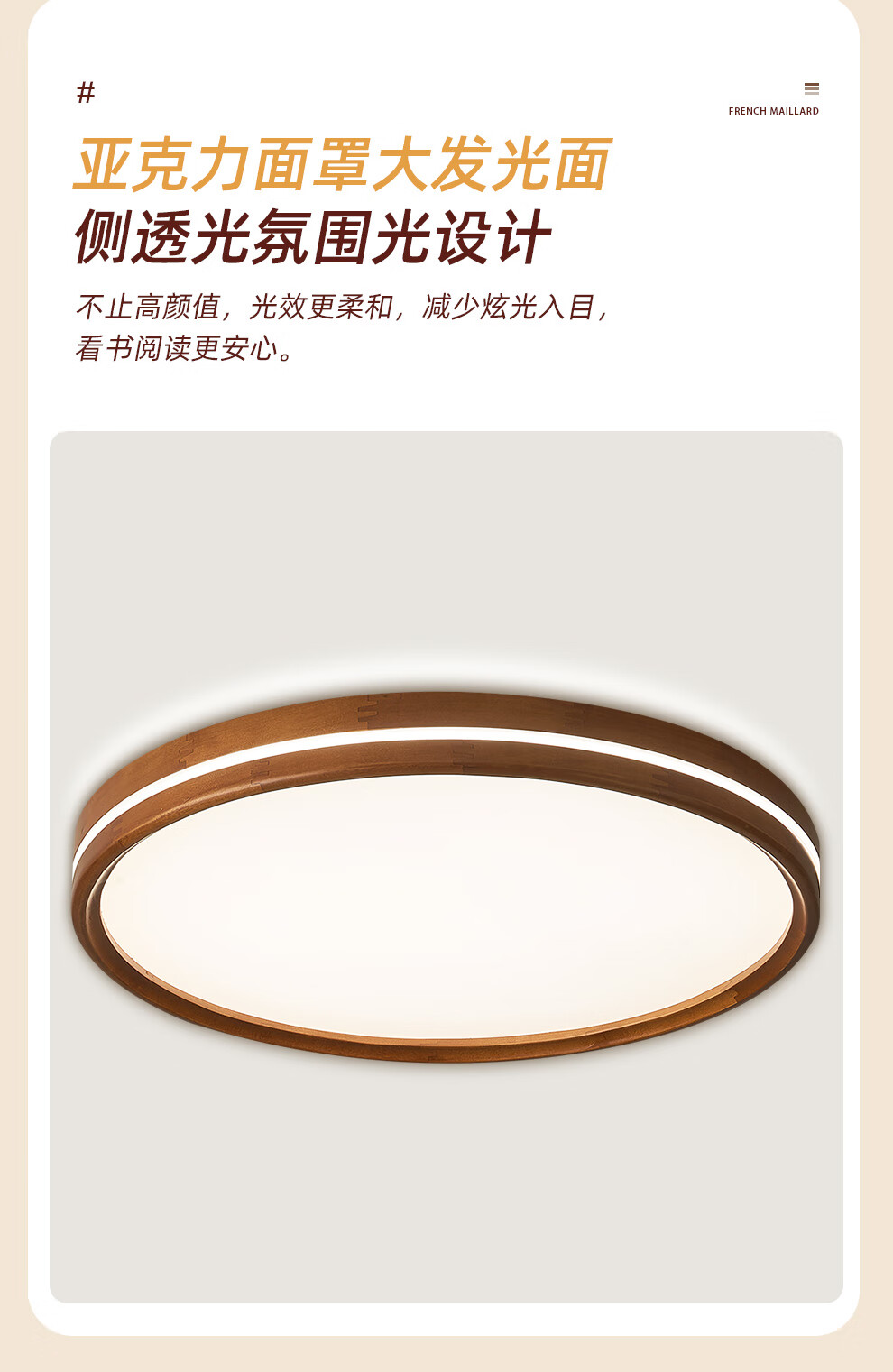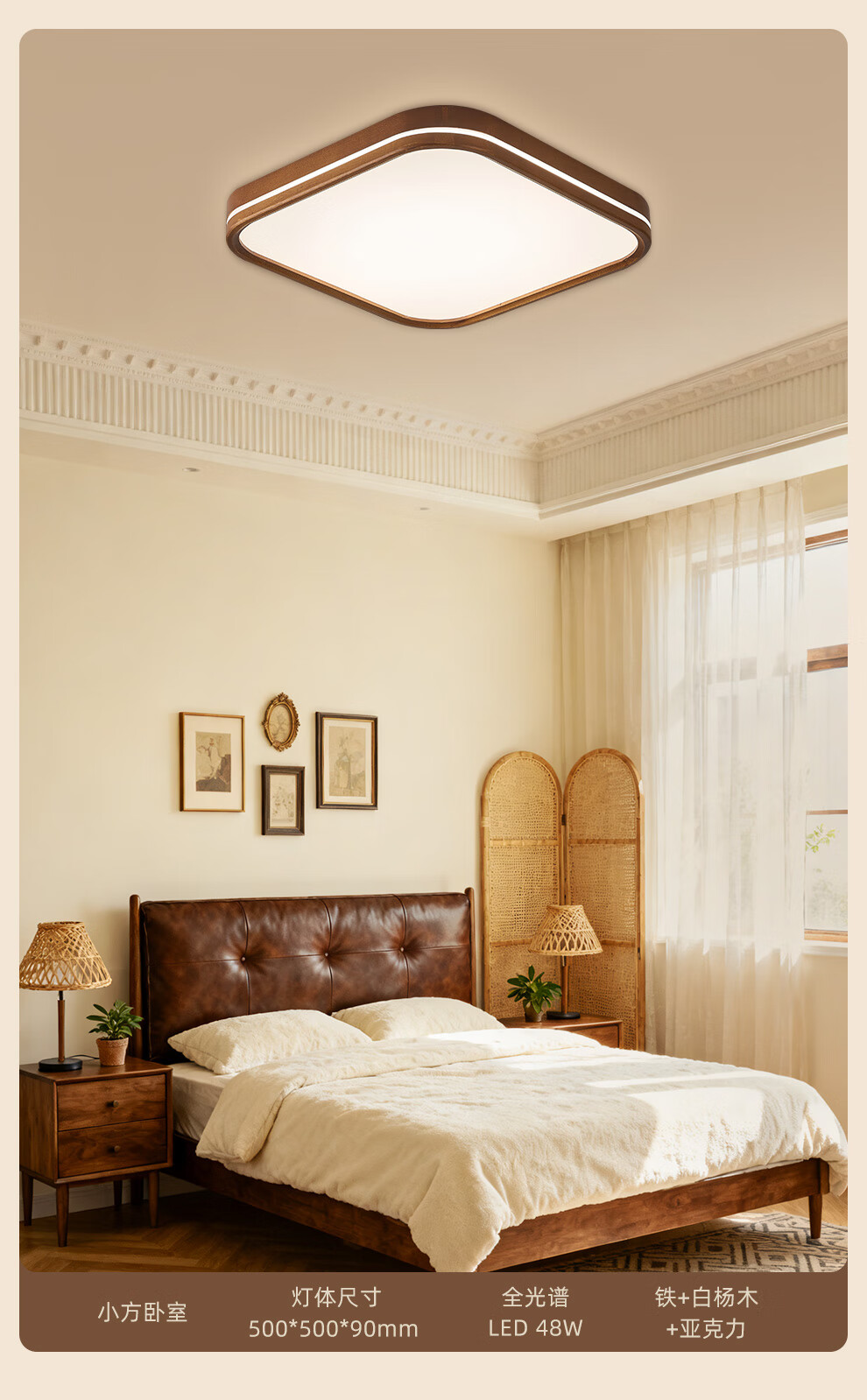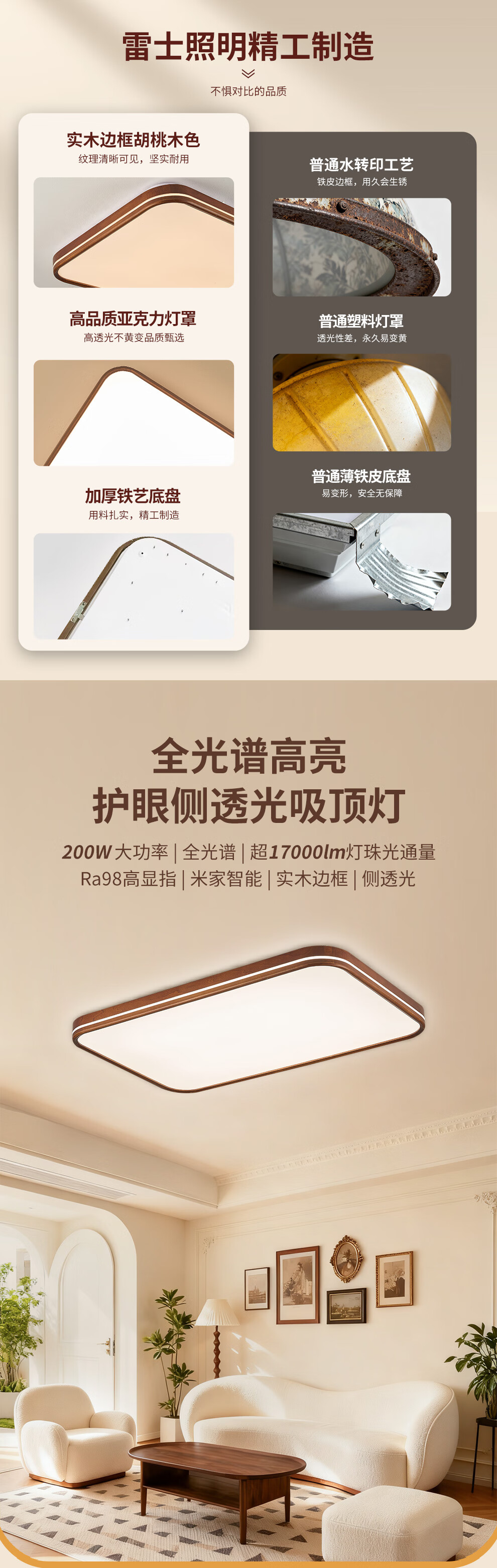 雷士(NVC)全光谱护眼灯客厅吸顶灯复古美拉德中古风卧室新中式灯具-侧透光 200W 45㎡内适用 侧透光-【RA95】分段调光客厅