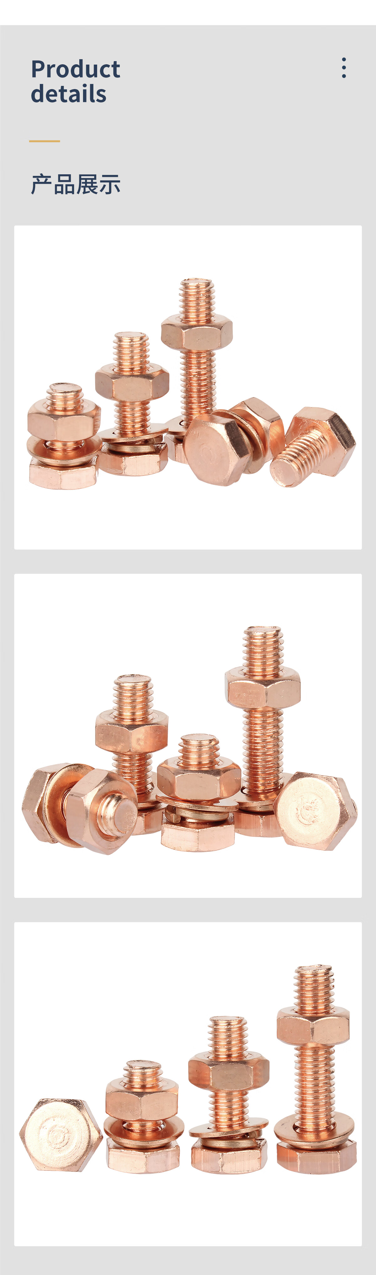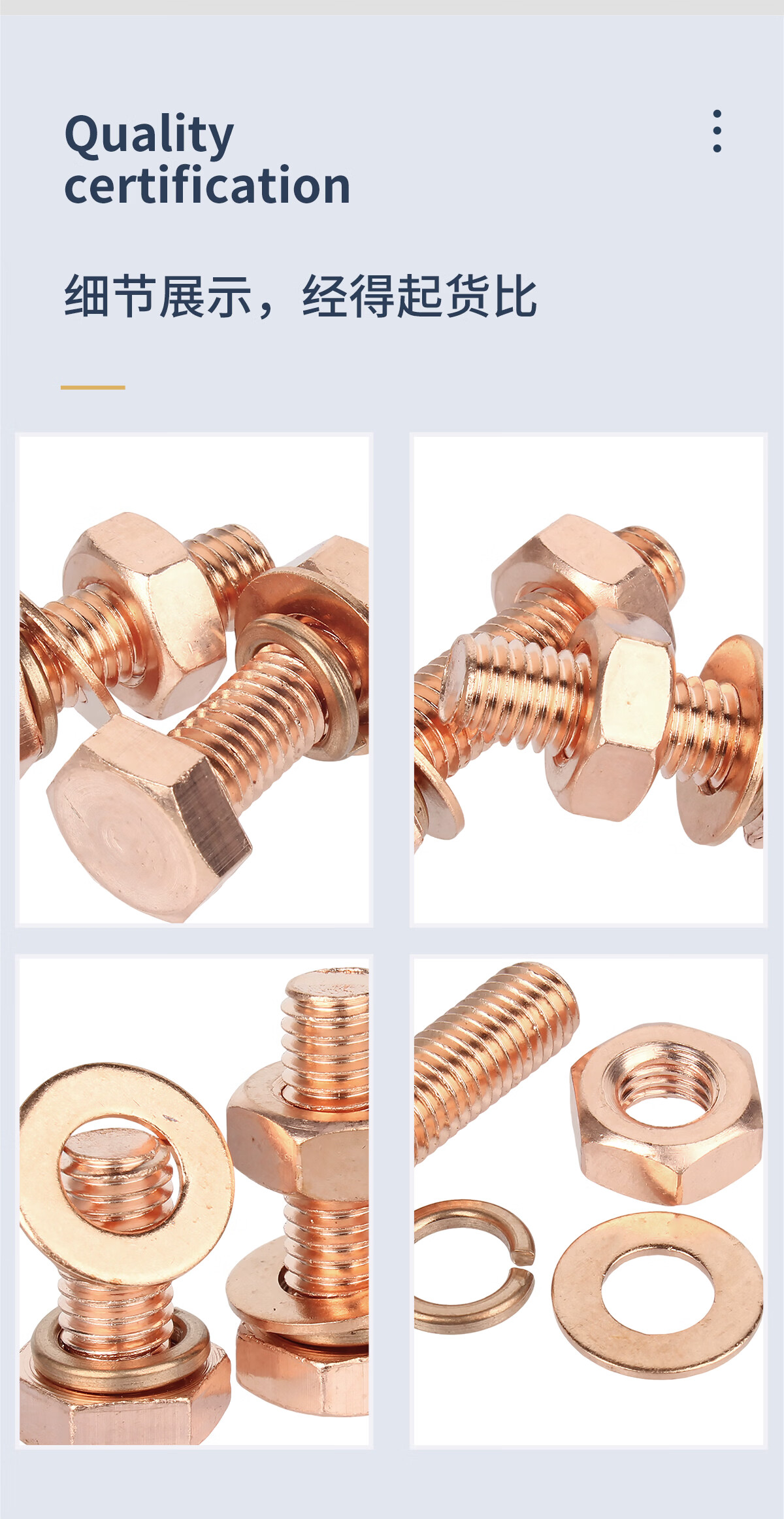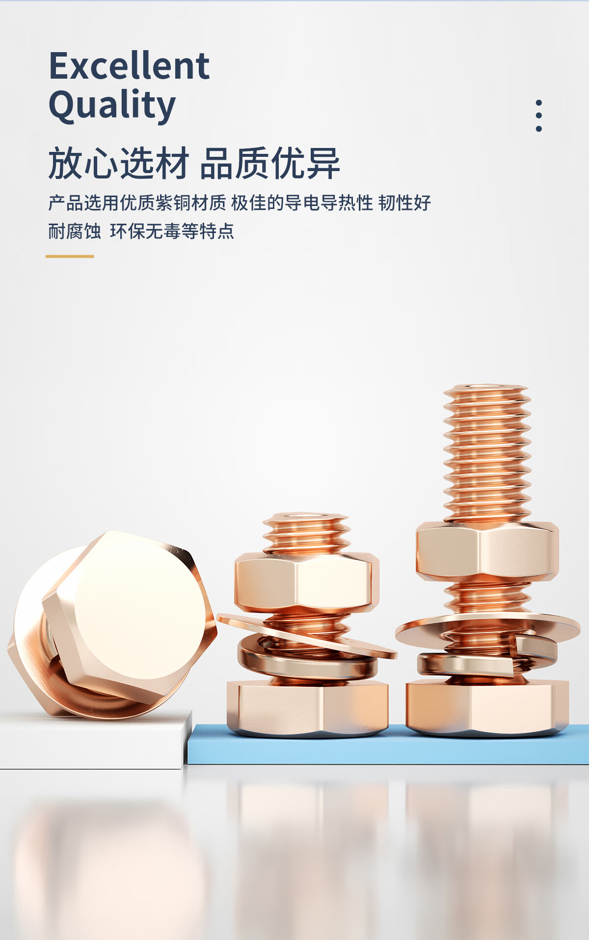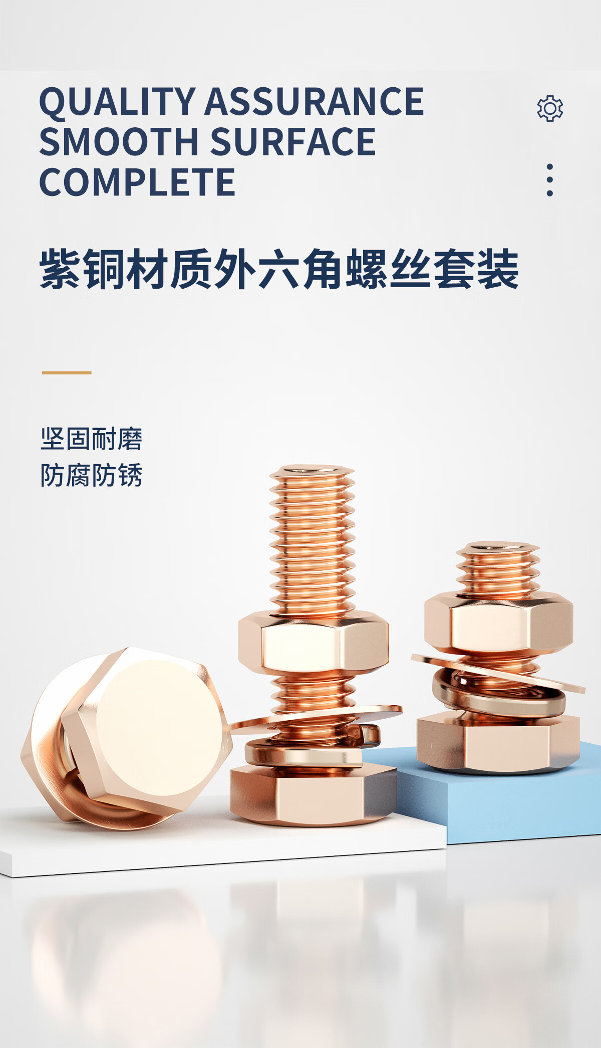 固万基(GUWANJI)T2紫铜红铜外六角螺丝螺母套装平垫弹垫组合电解铜螺栓整套M3-M16 M3x6[5套]