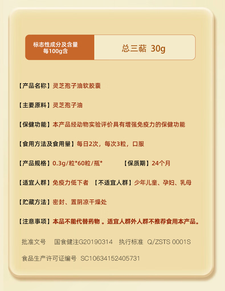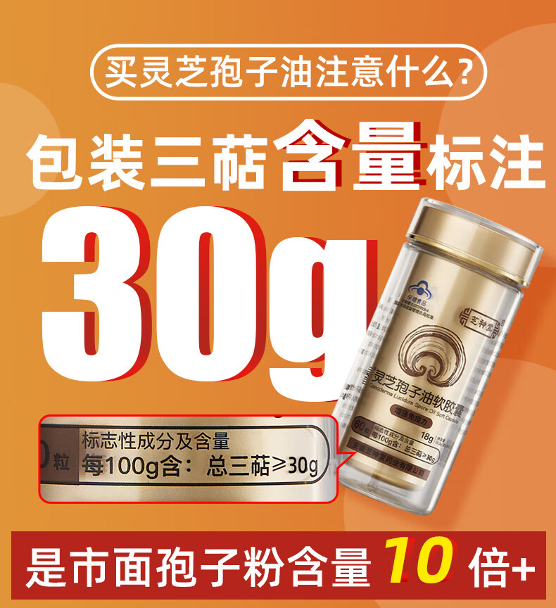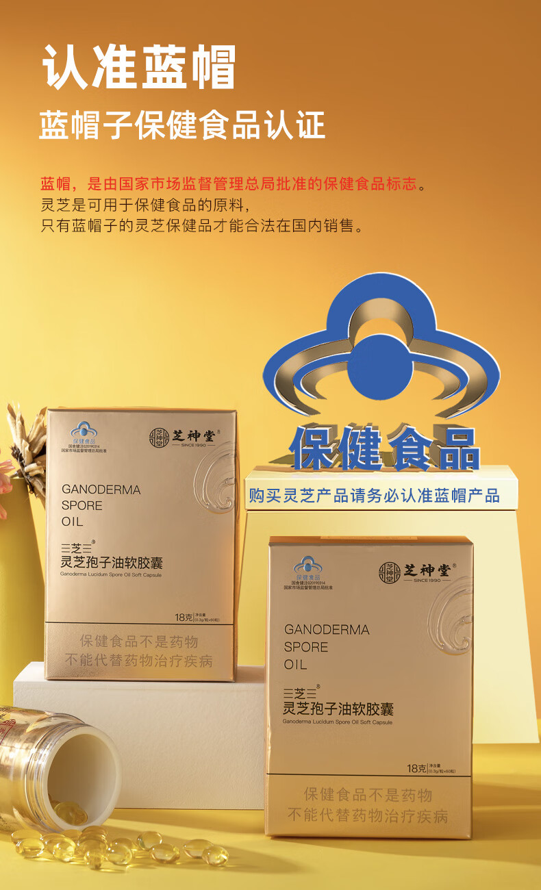 芝神堂灵芝孢子油软胶囊三萜含量高增强免疫力大别山灵芝补品 买三送一 1盒装