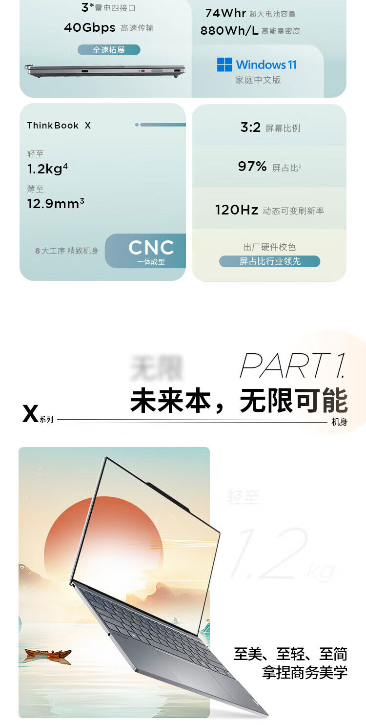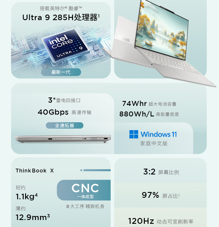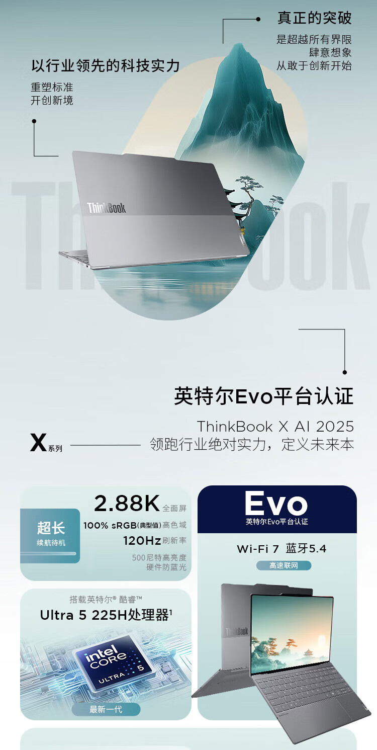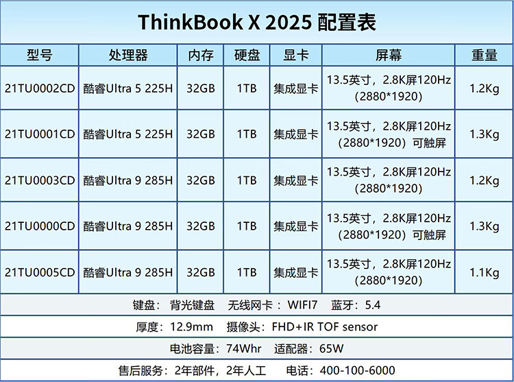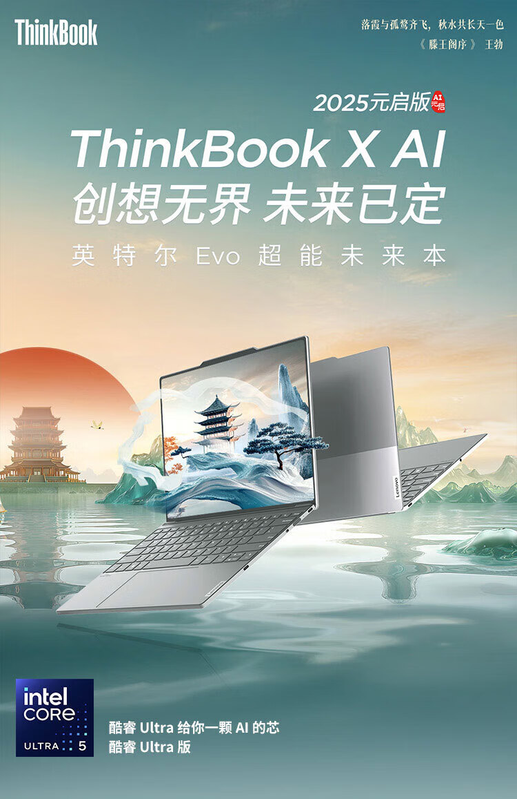 ThinkPad联想ThinkBook X 2025 英特尔酷睿Ulltra处理器 13.5英寸高端商务轻薄笔记本电脑 Ultra9-285H 32G 1T 03CD