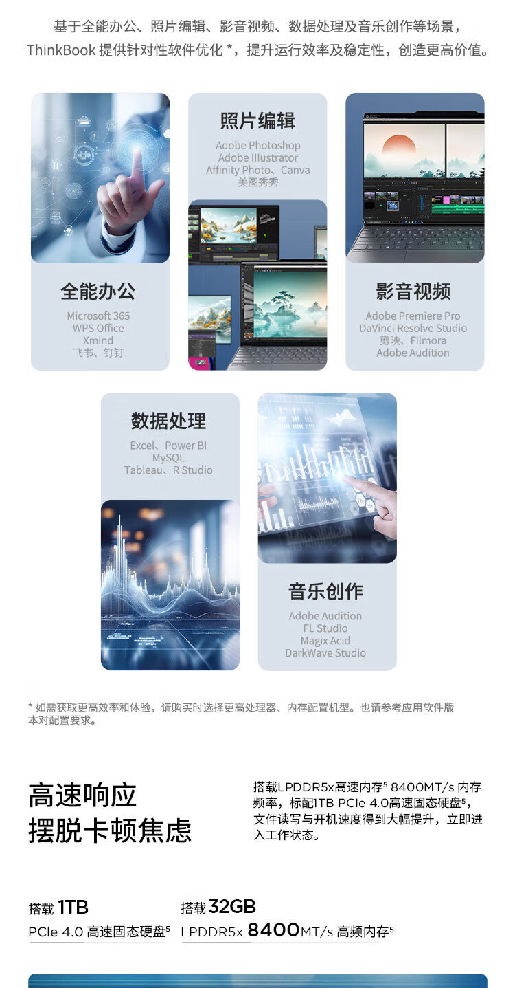 ThinkPad联想ThinkBook14+2025 锐龙 7 8845H处理器升级版 轻薄商务办公笔记本电脑 【政府补贴】锐龙7 H 260处理器32G 1T