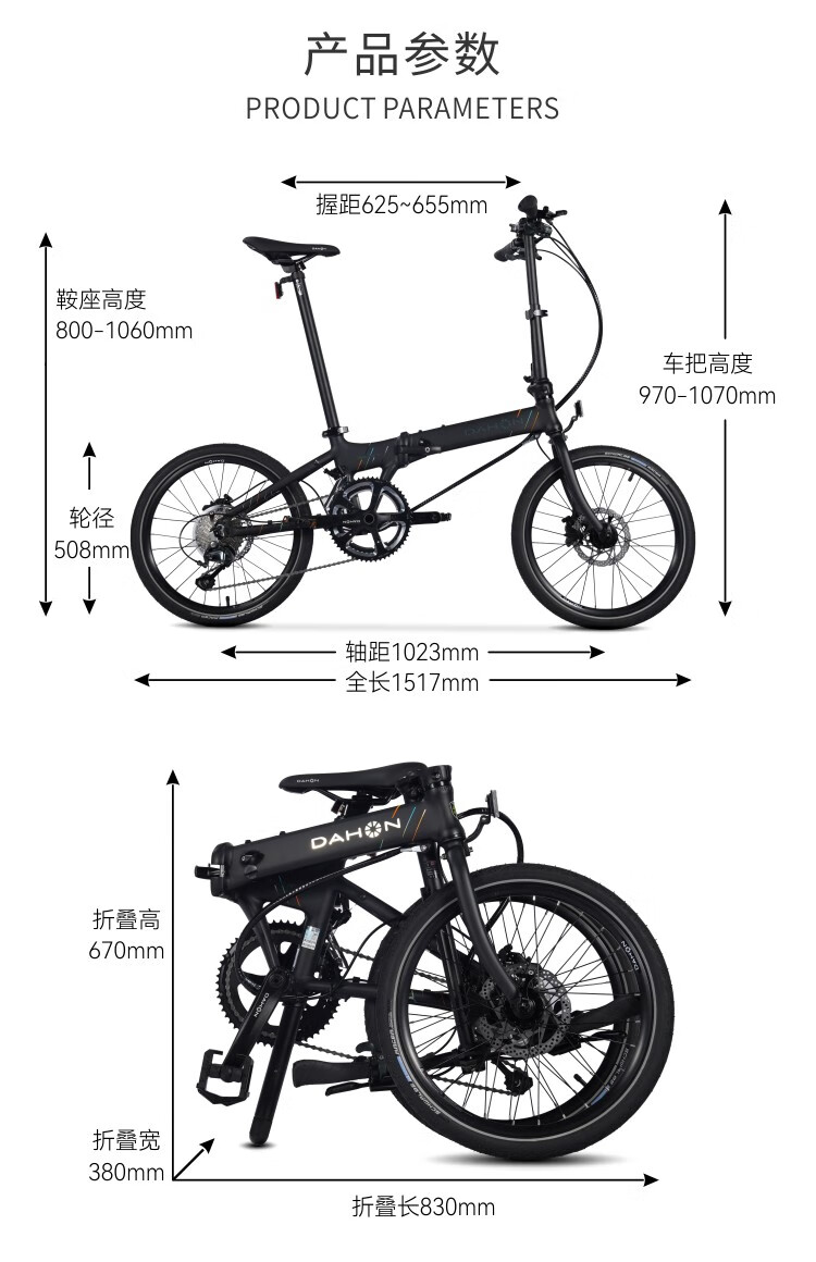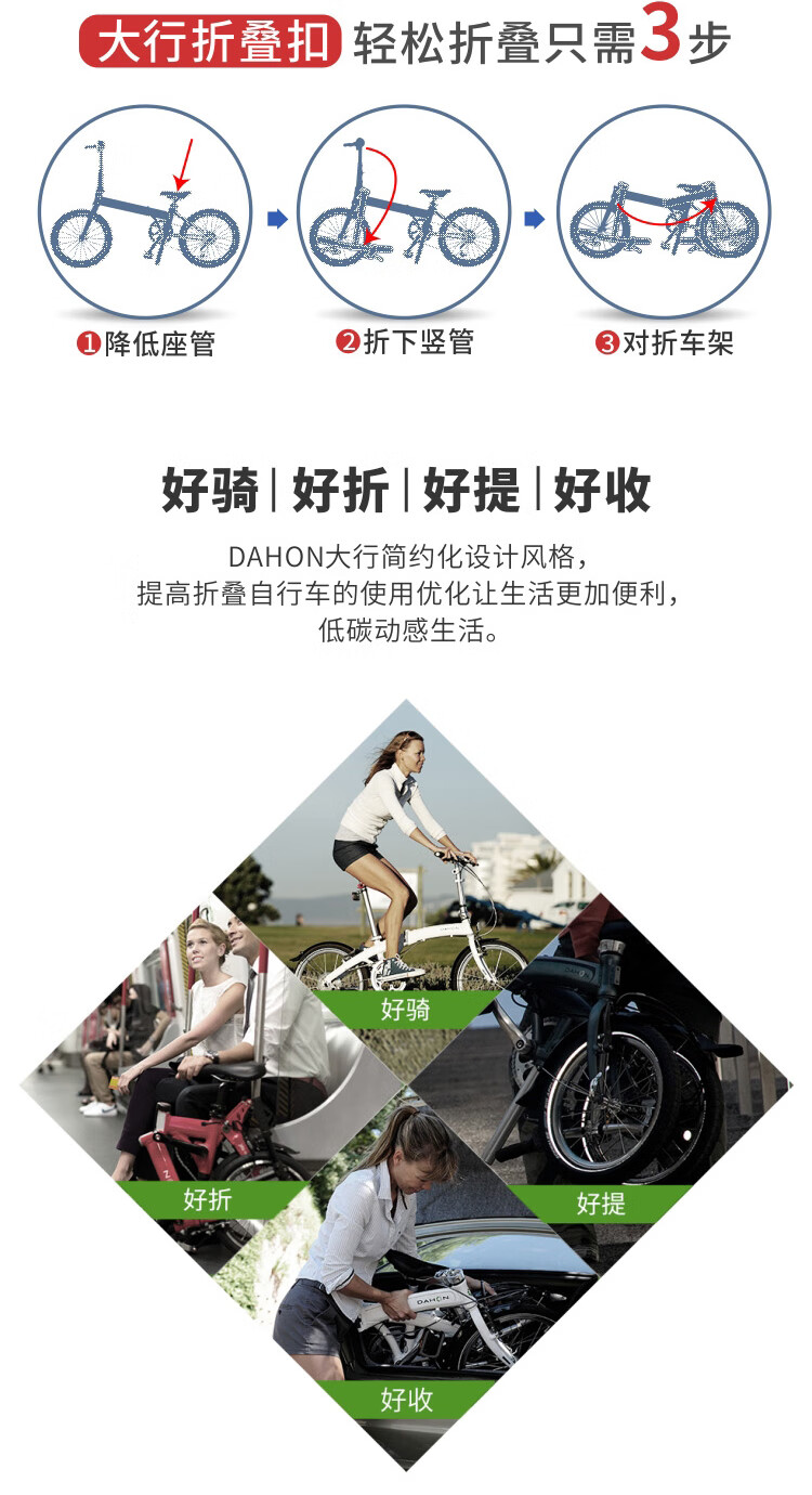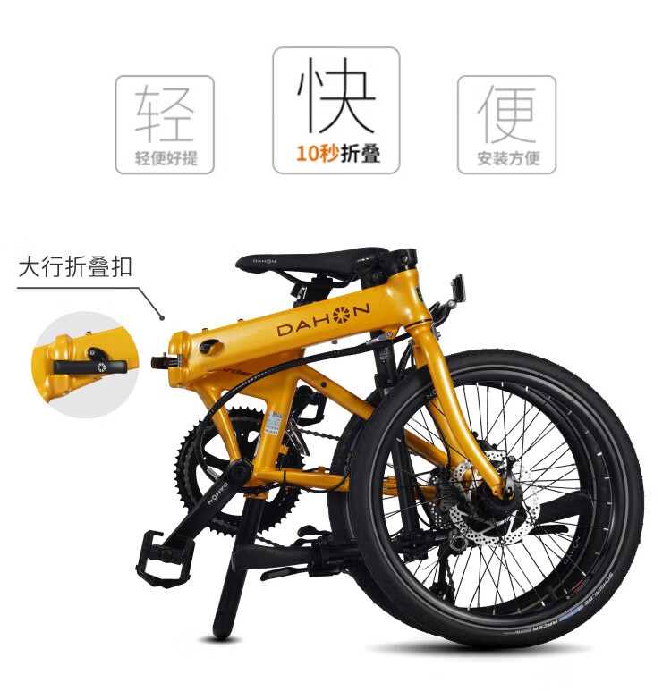 大行(DAHON)自行车20英寸20速超轻铝合金碟刹成人单车KBA005 黑色BA款油碟