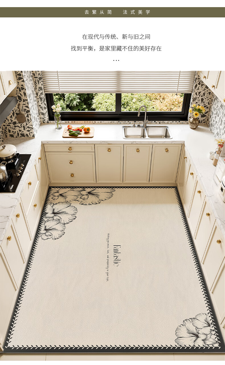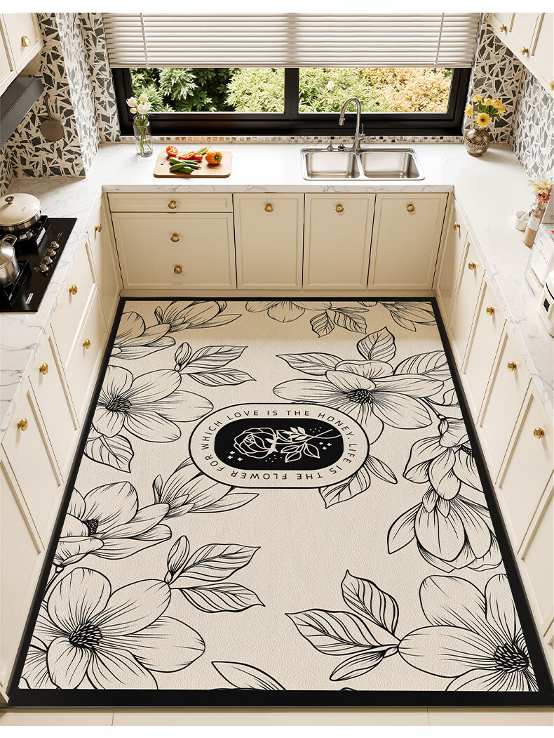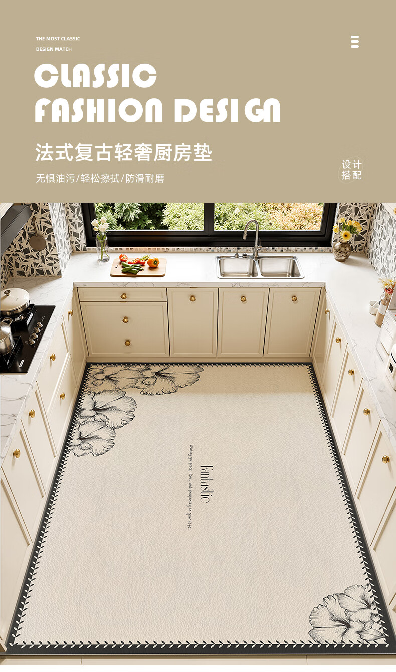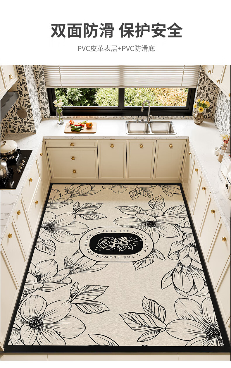 小苏家小香风厨房地垫防滑防油可擦免洗pvc皮革地毯垫厨房防水整铺地垫 仲夏 90×140cm【防水防油 一擦即净】