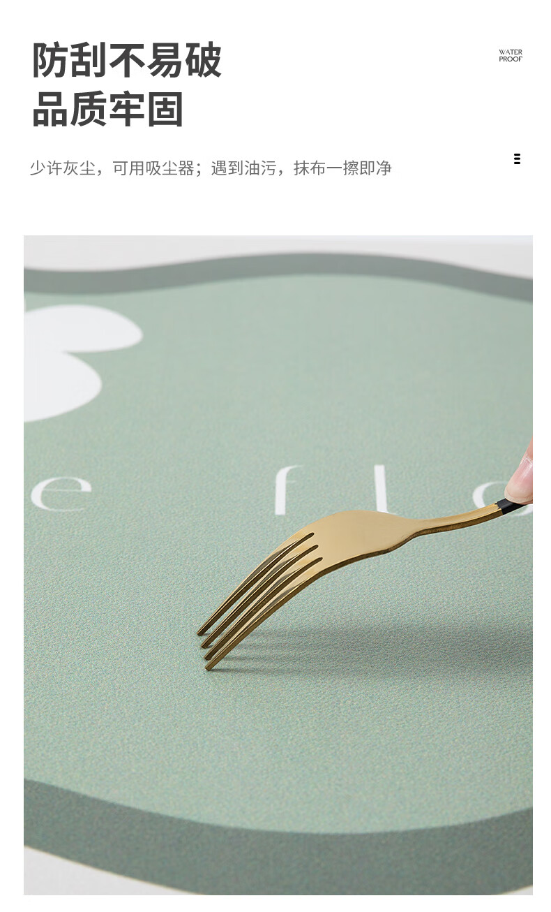 KAYE硅藻泥软垫浴室防滑吸水地垫厕所卫生间速干脚垫门口厨房入户垫子 GZN-繁花-椭圆 40x60 cm