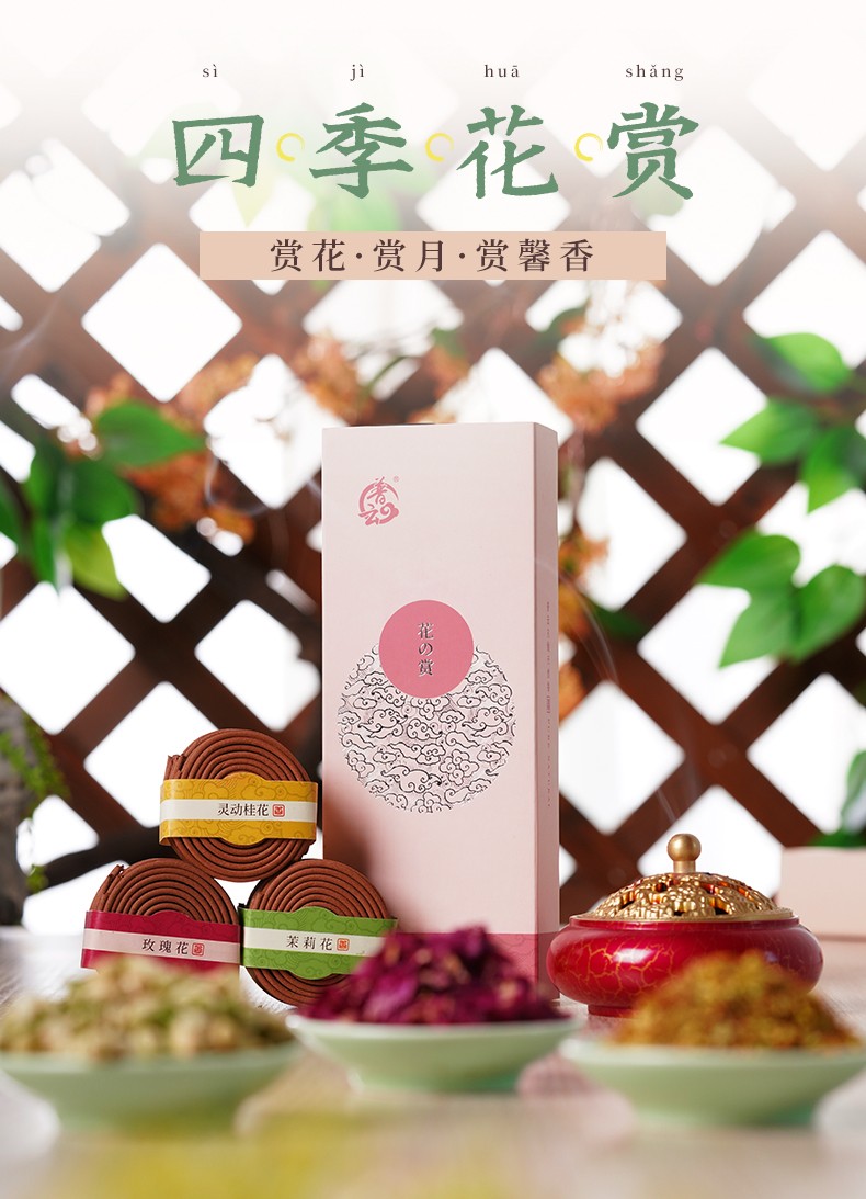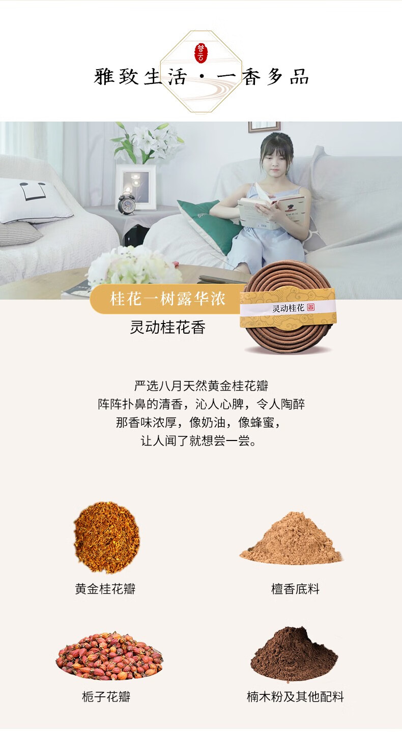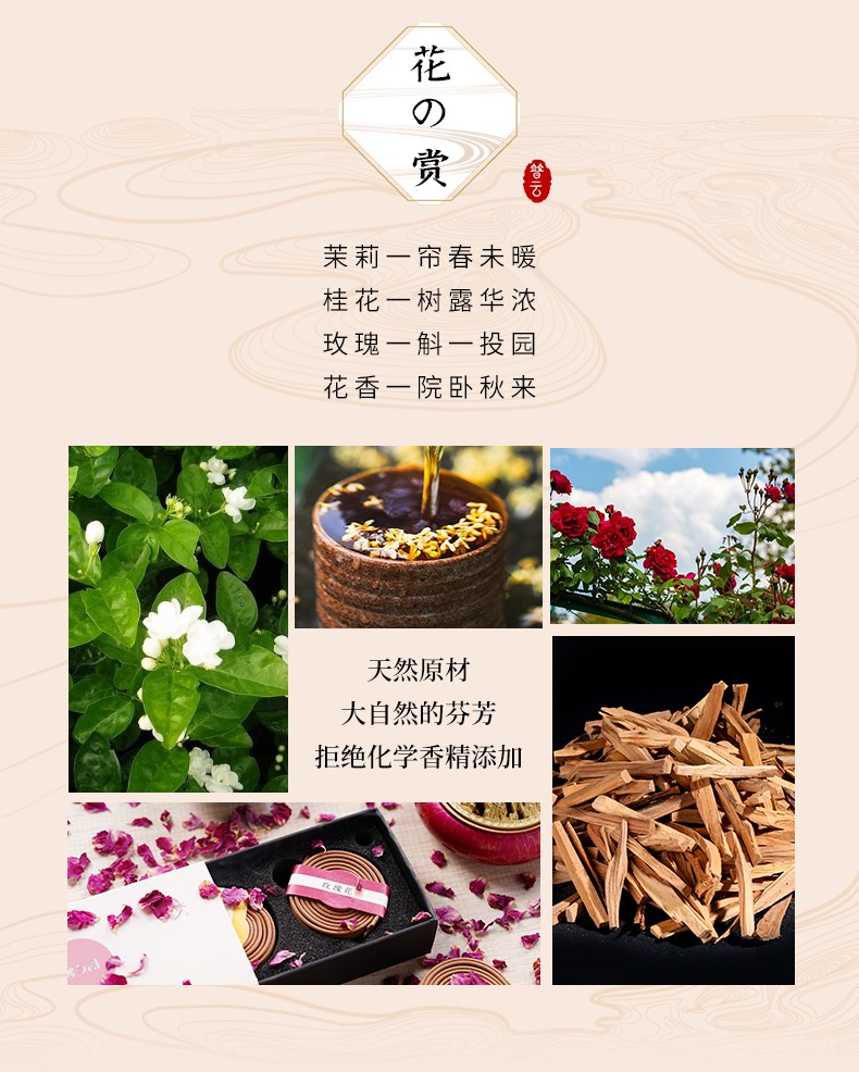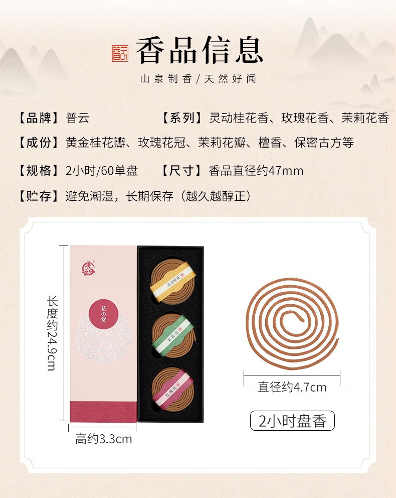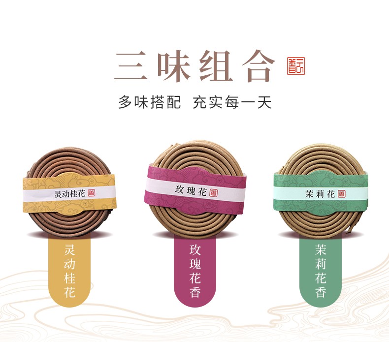 普云花香盘香茉莉家用室内熏香沉香檀香【桂花+茉莉+玫瑰】2小时60片