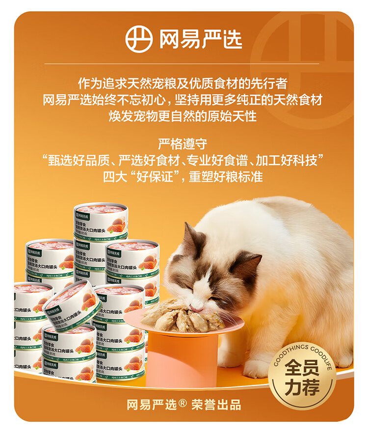 网易严选猫湿粮零食浓汤大口肉罐头鸡肉+三文鱼 85g*24罐