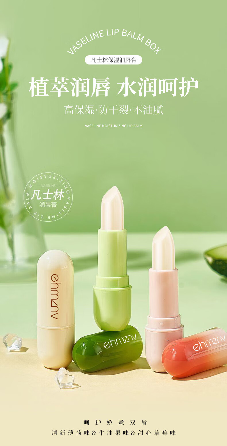 ehmznv凡士林润唇膏嘴唇保湿滋润无色淡化唇纹唇膜学生男女 润唇膏3支