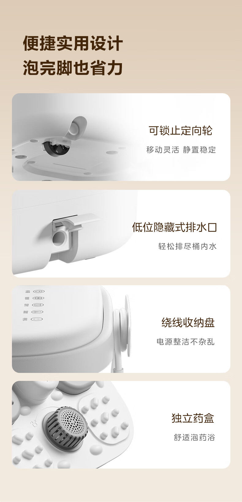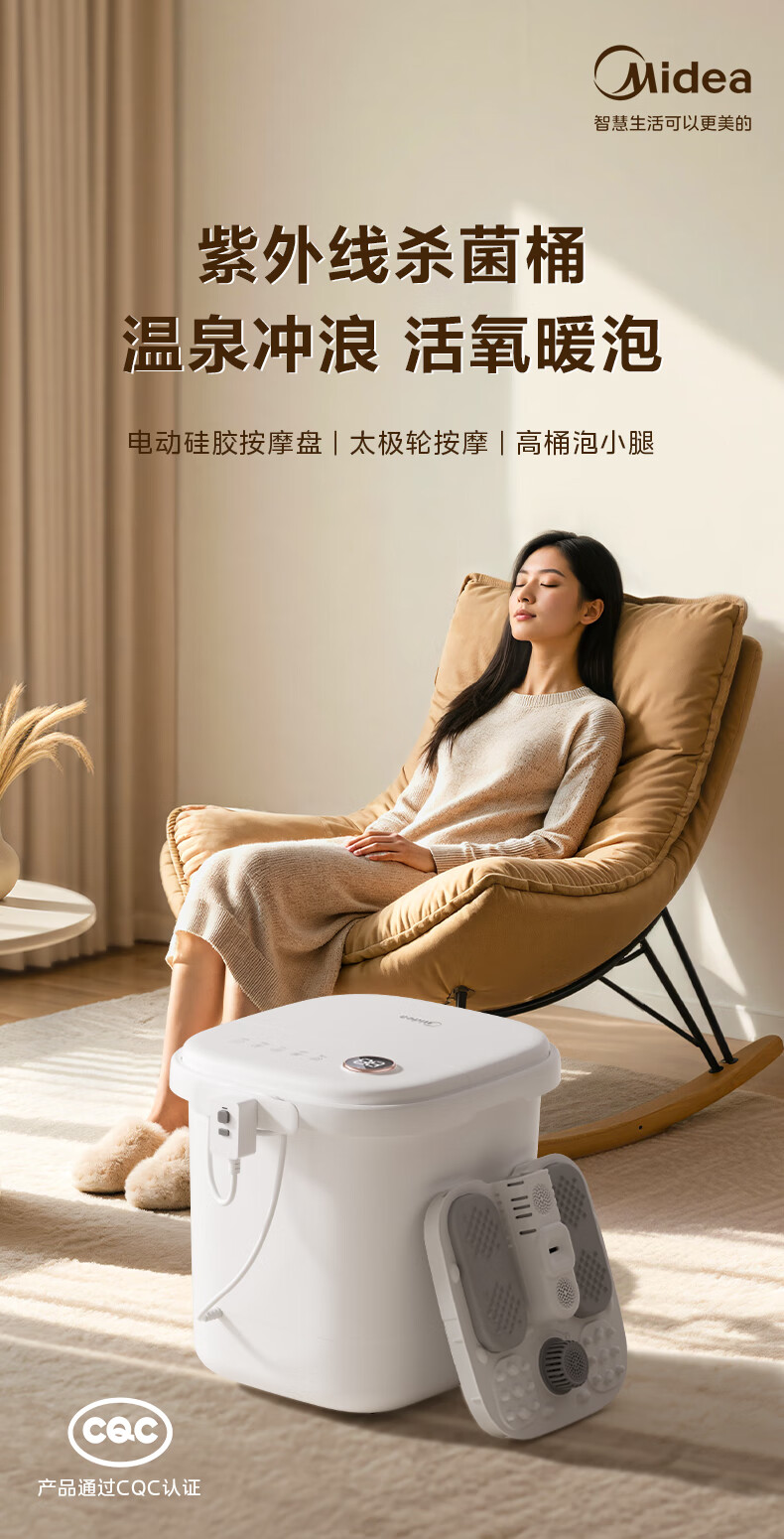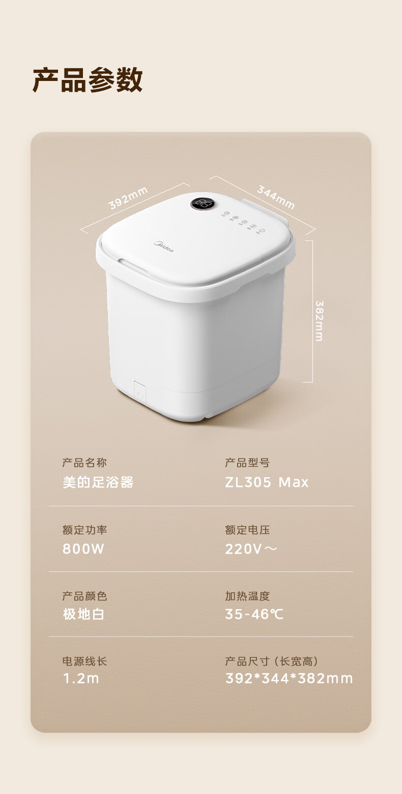 美的(Midea)泡脚桶按摩足浴盆加热保暖自动按摩暖脚洗脚盆杀菌泡脚盆恒温高深桶圣诞礼物生日送男女友ZL305Max