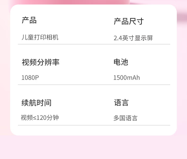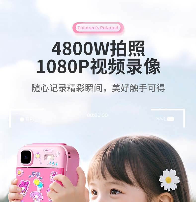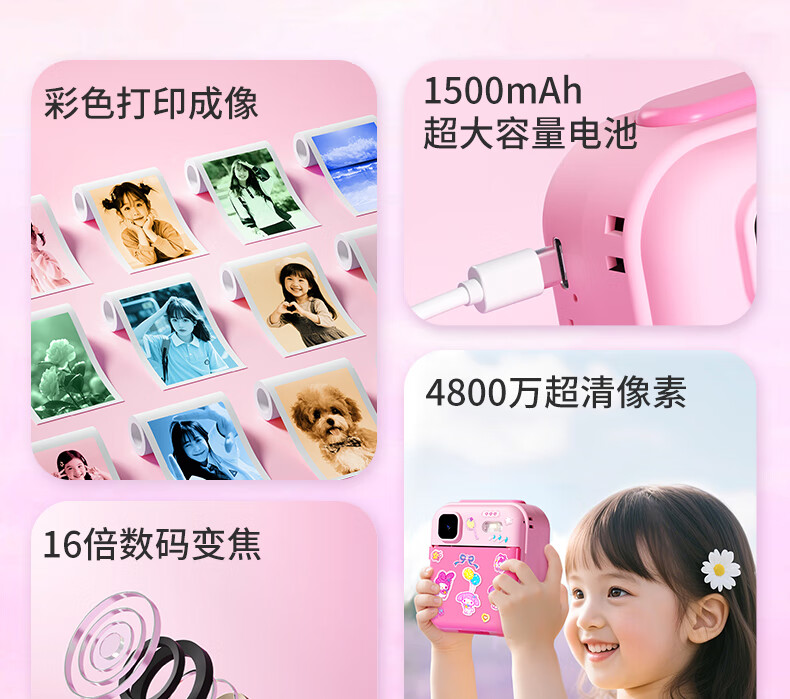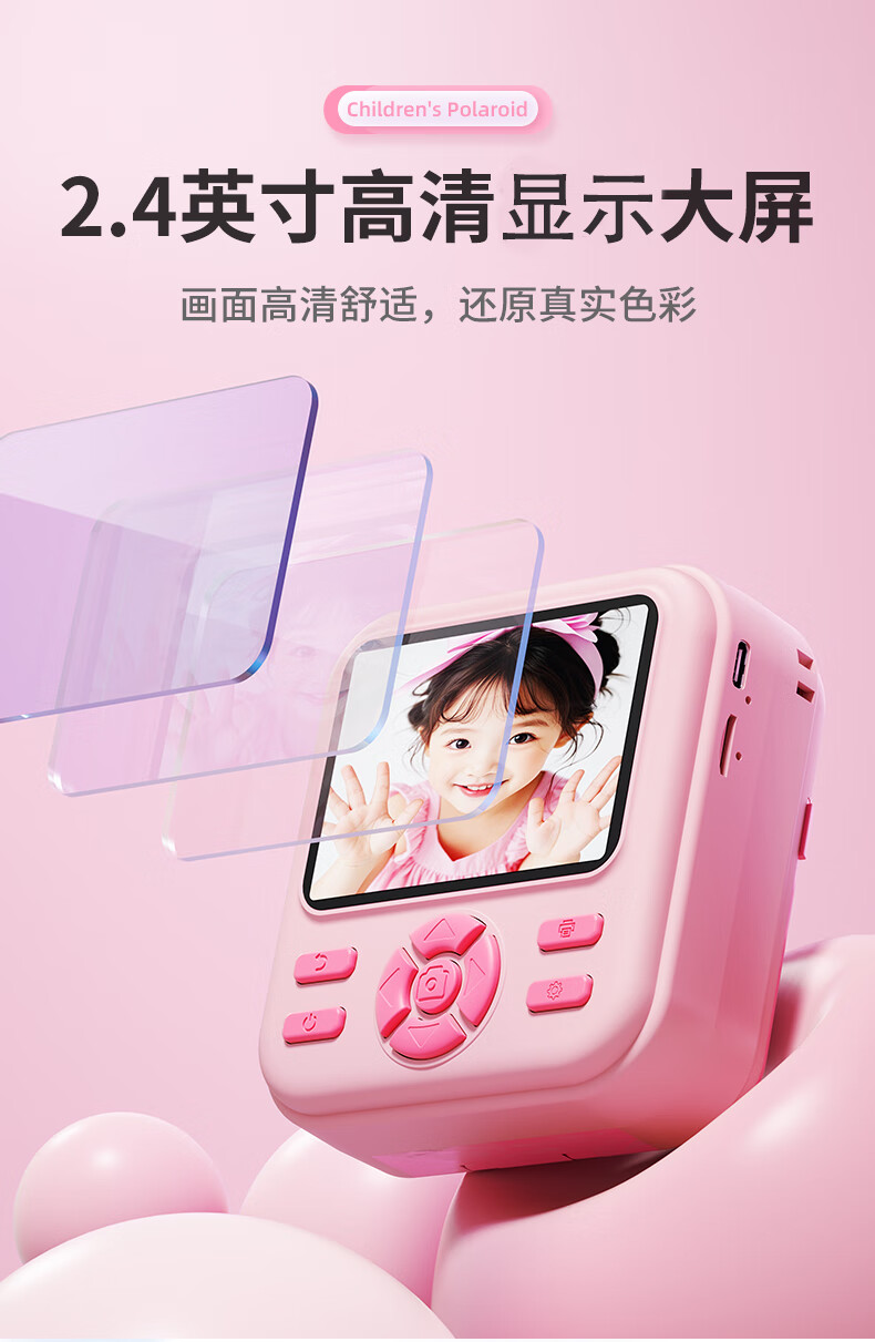 奕思瑞圣诞节礼物儿童相机玩具7-14岁可打印彩色照片拍立得女孩生日礼物