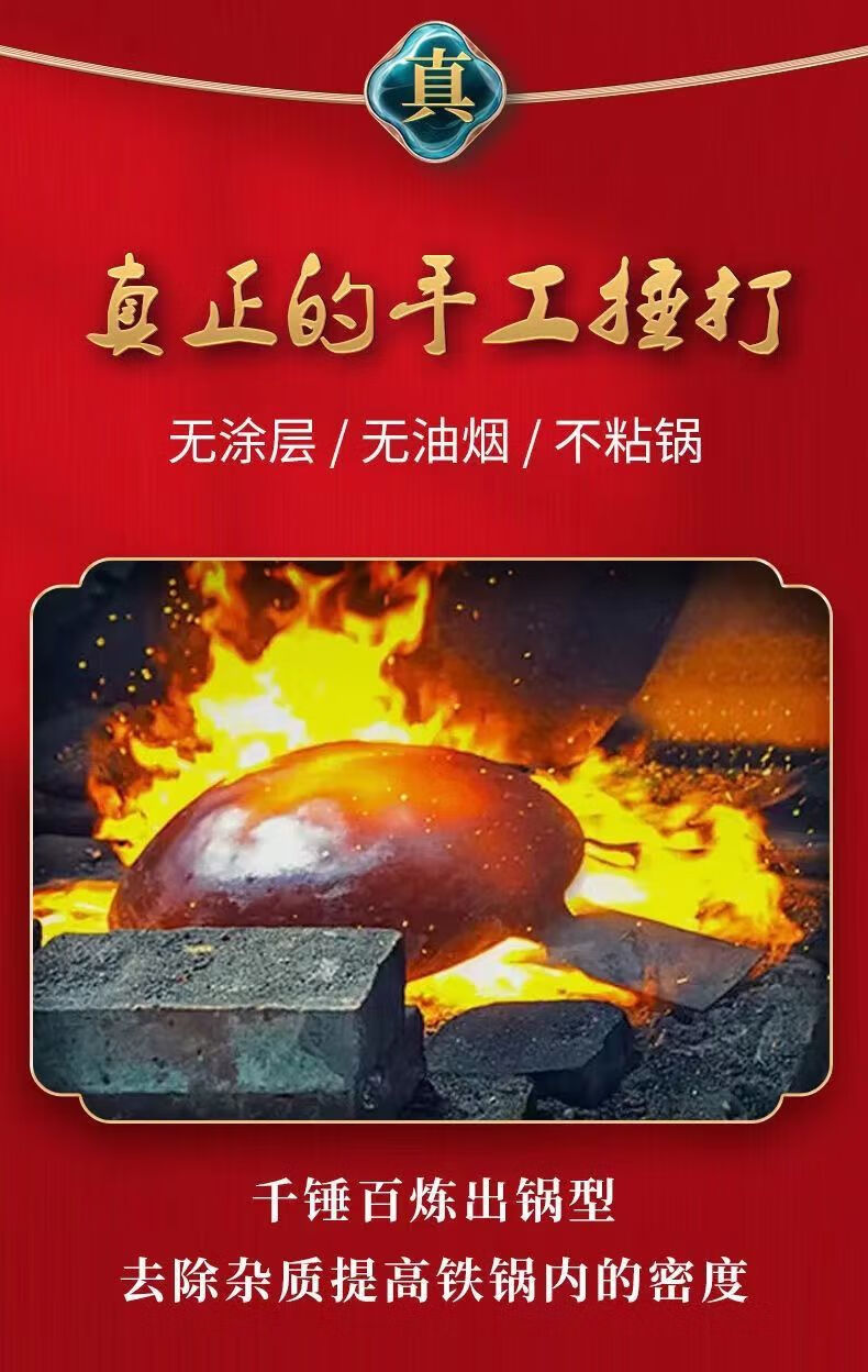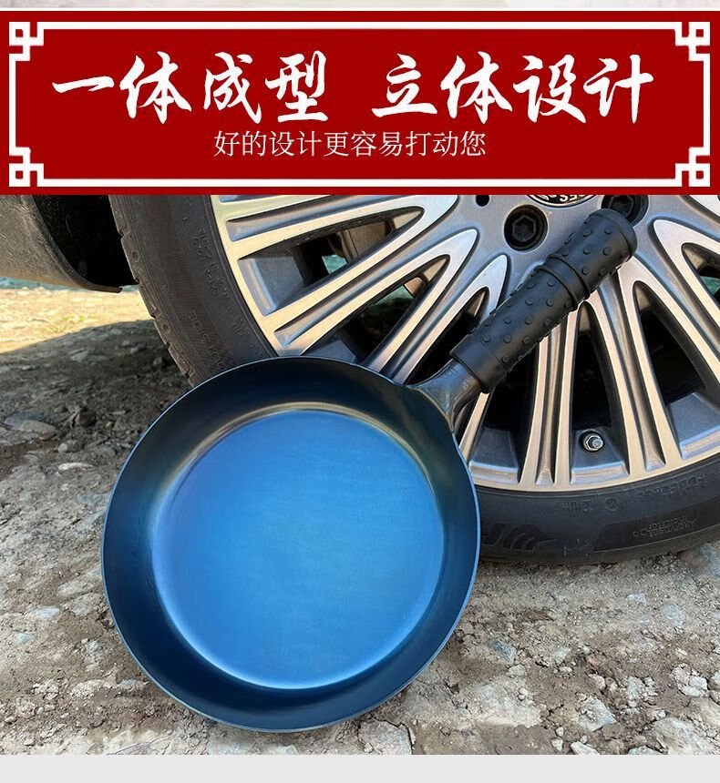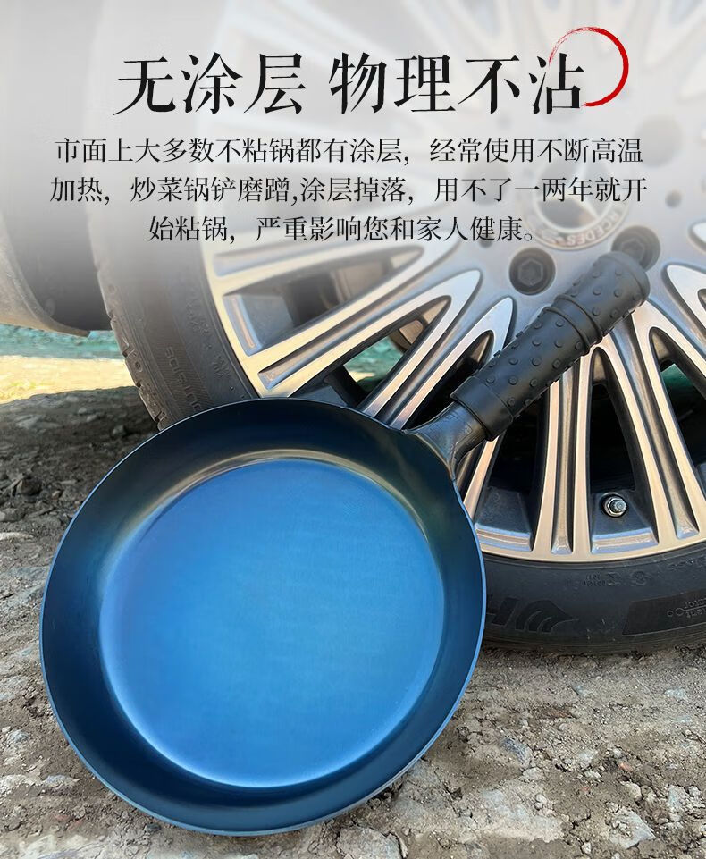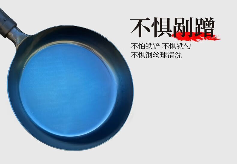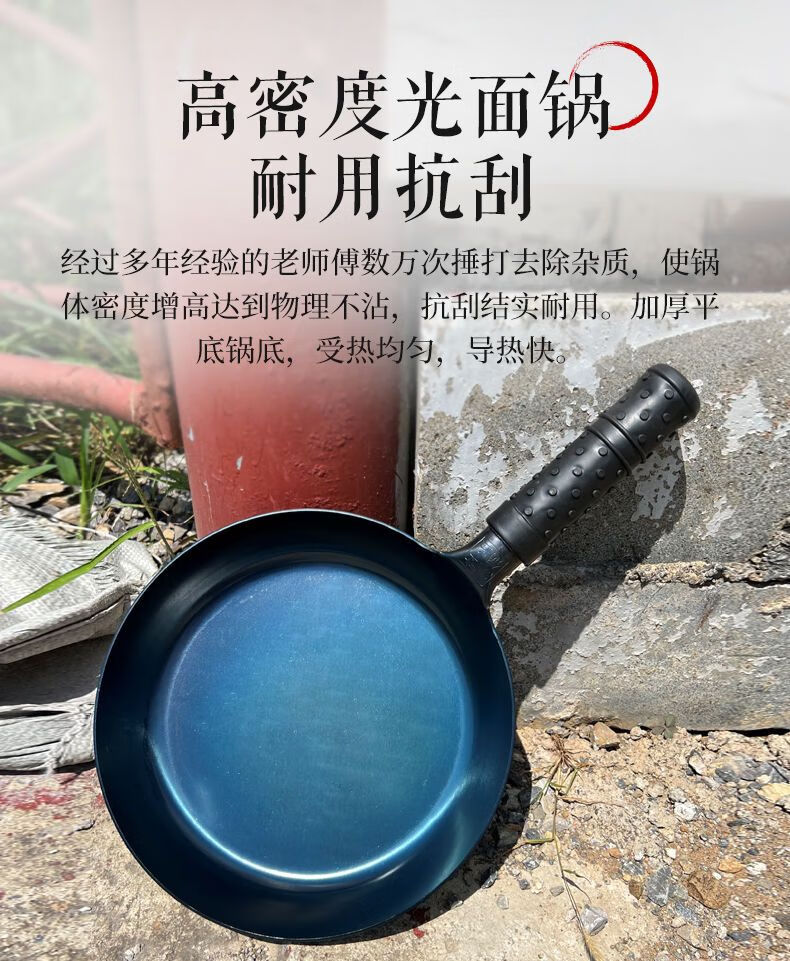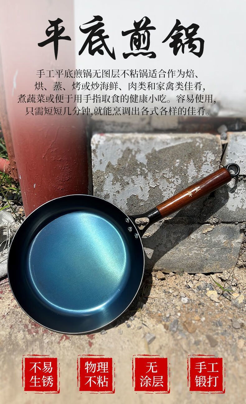 咏夏章丘平底煎锅老式手工锻打无涂层传统铁锅烙饼牛排不粘锅熟铁家用 光面款 平底煎锅 单锅 26cm