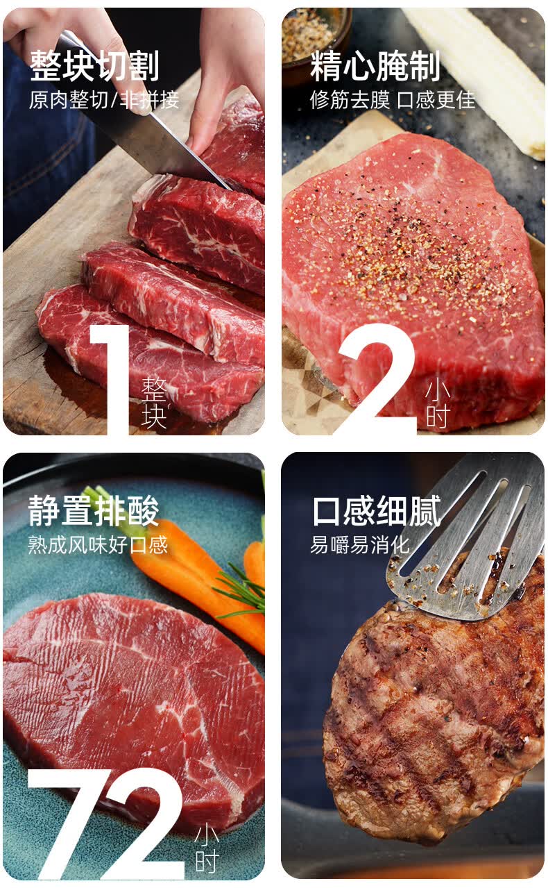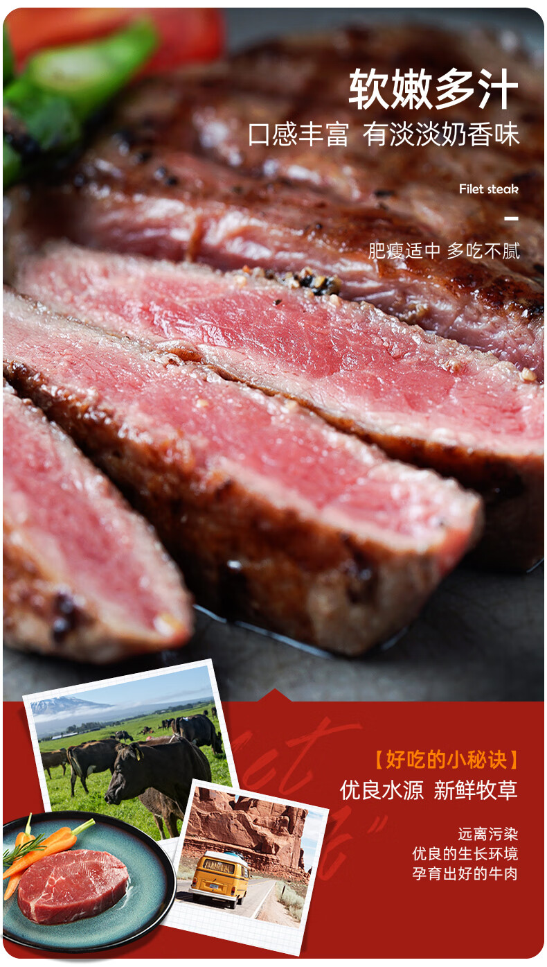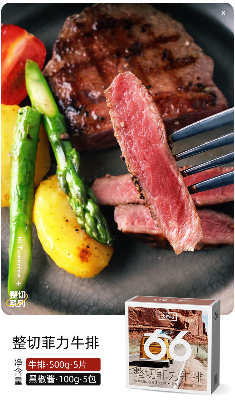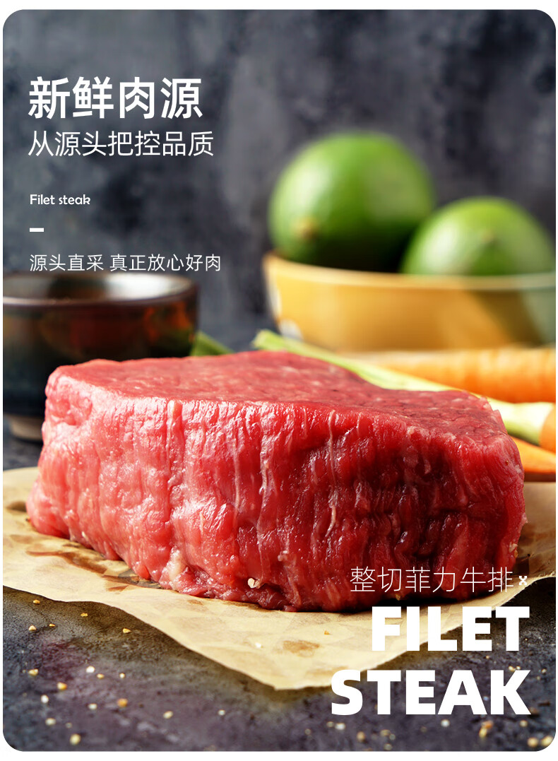 大希地整切菲力牛排1000g儿童牛排冷冻生鲜牛肉 整切调理腌制牛排10片 菲力500g(5片)*2盒+牛肉饼手抓饼
