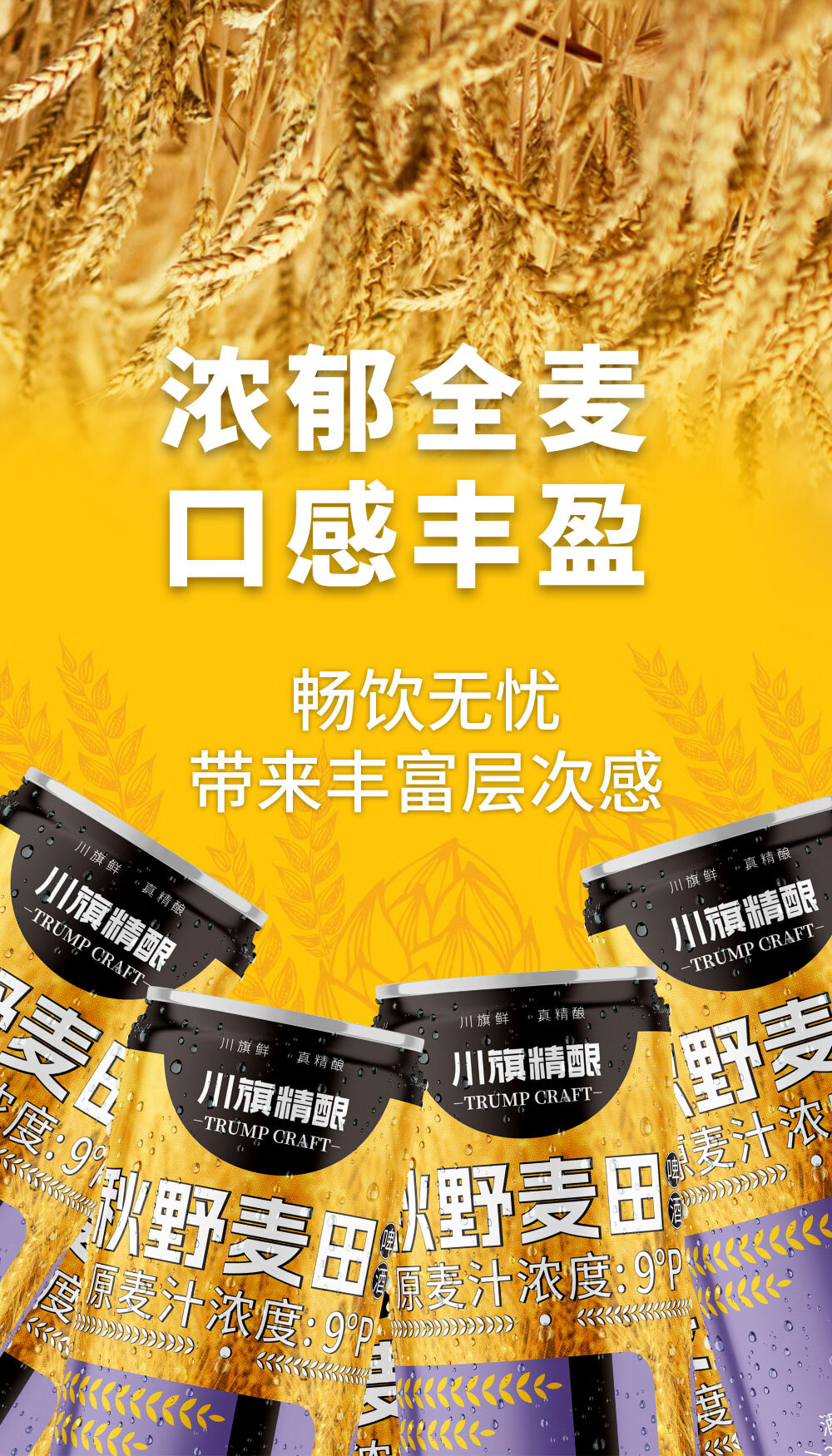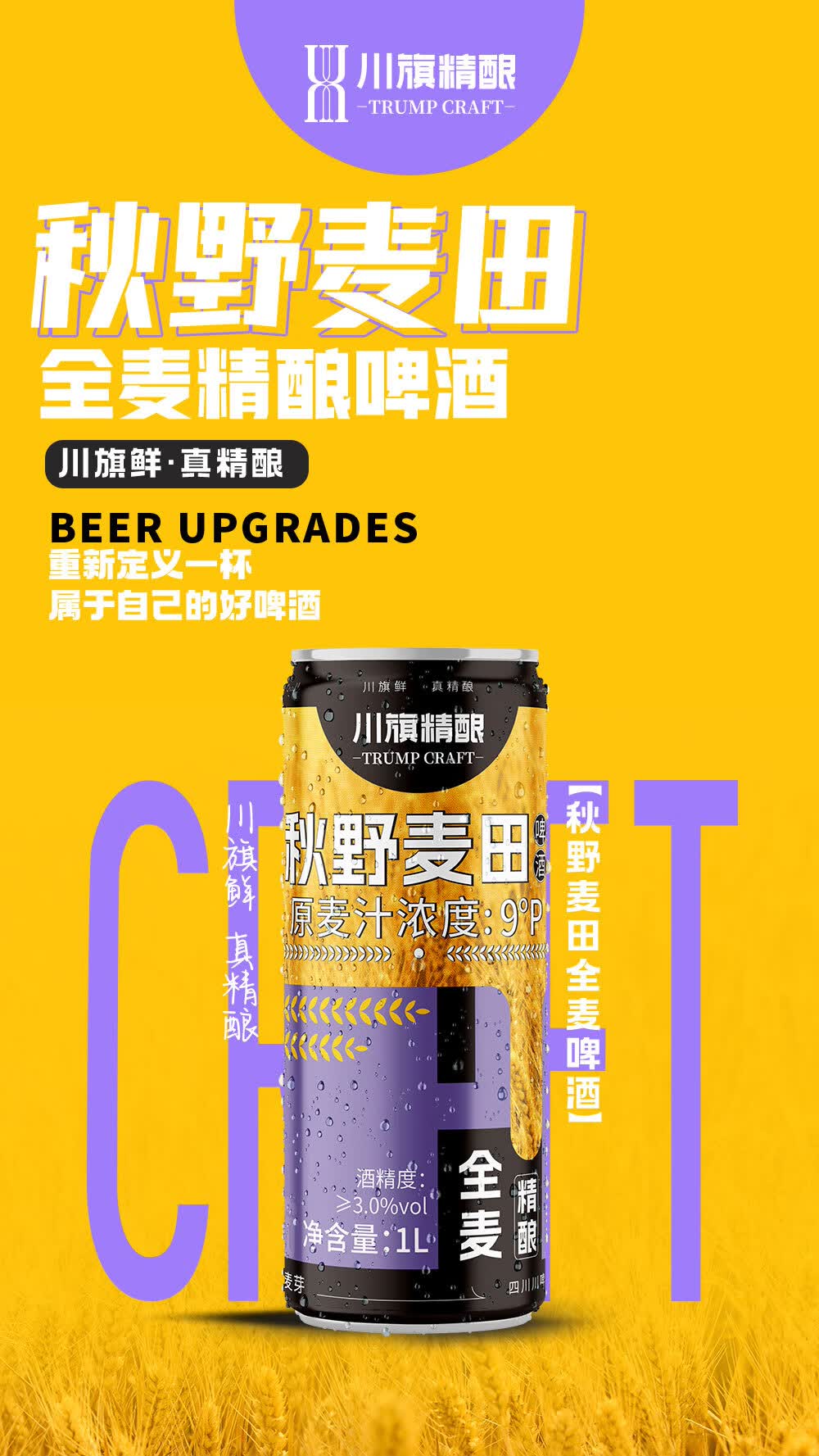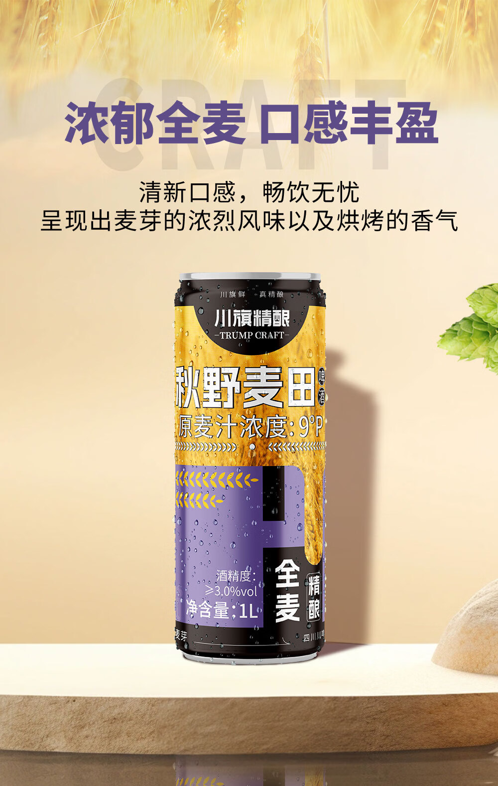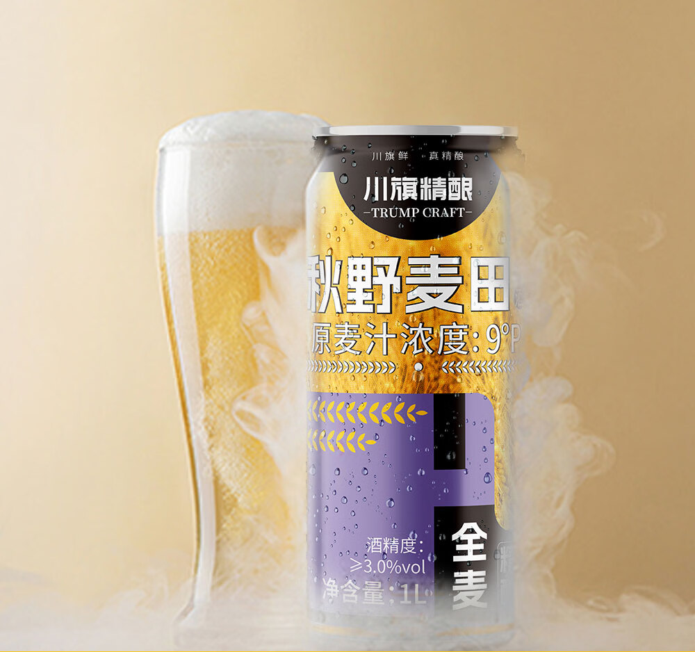 川旗秋野麦田全麦酿造精酿啤酒 浓郁麦香醇厚 夏日微醺聚会自饮佳品 1L 6瓶 秋叶麦田