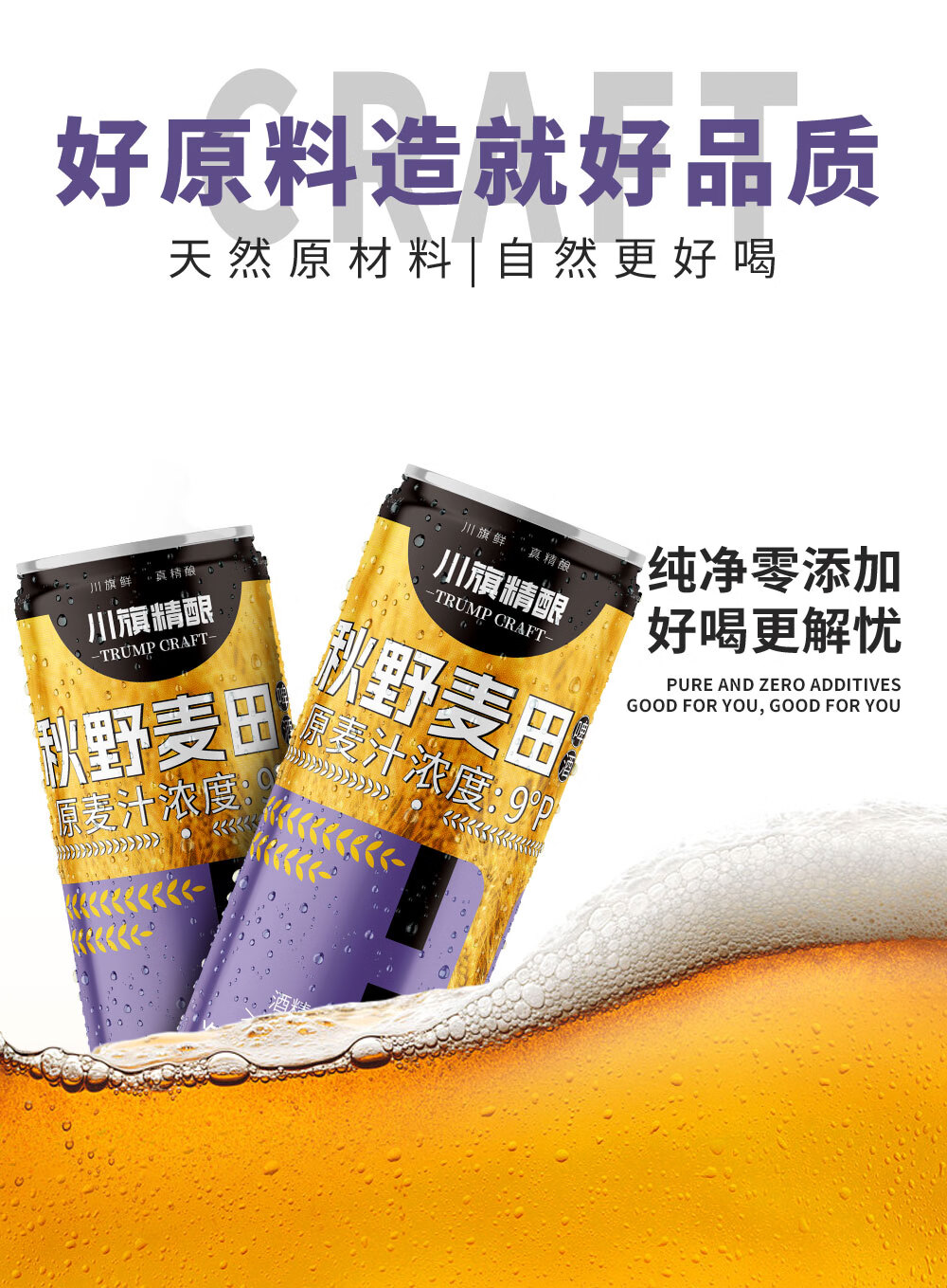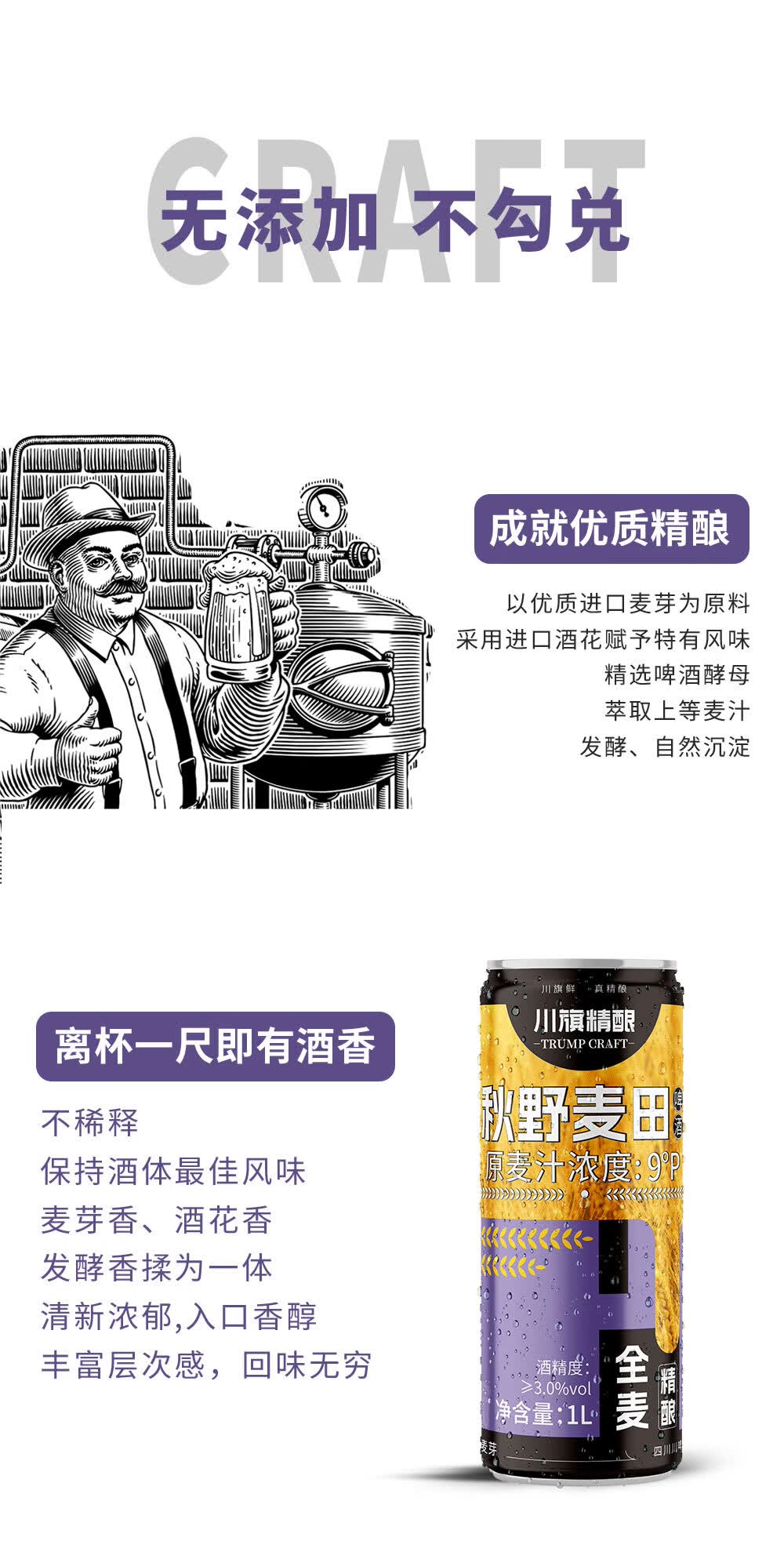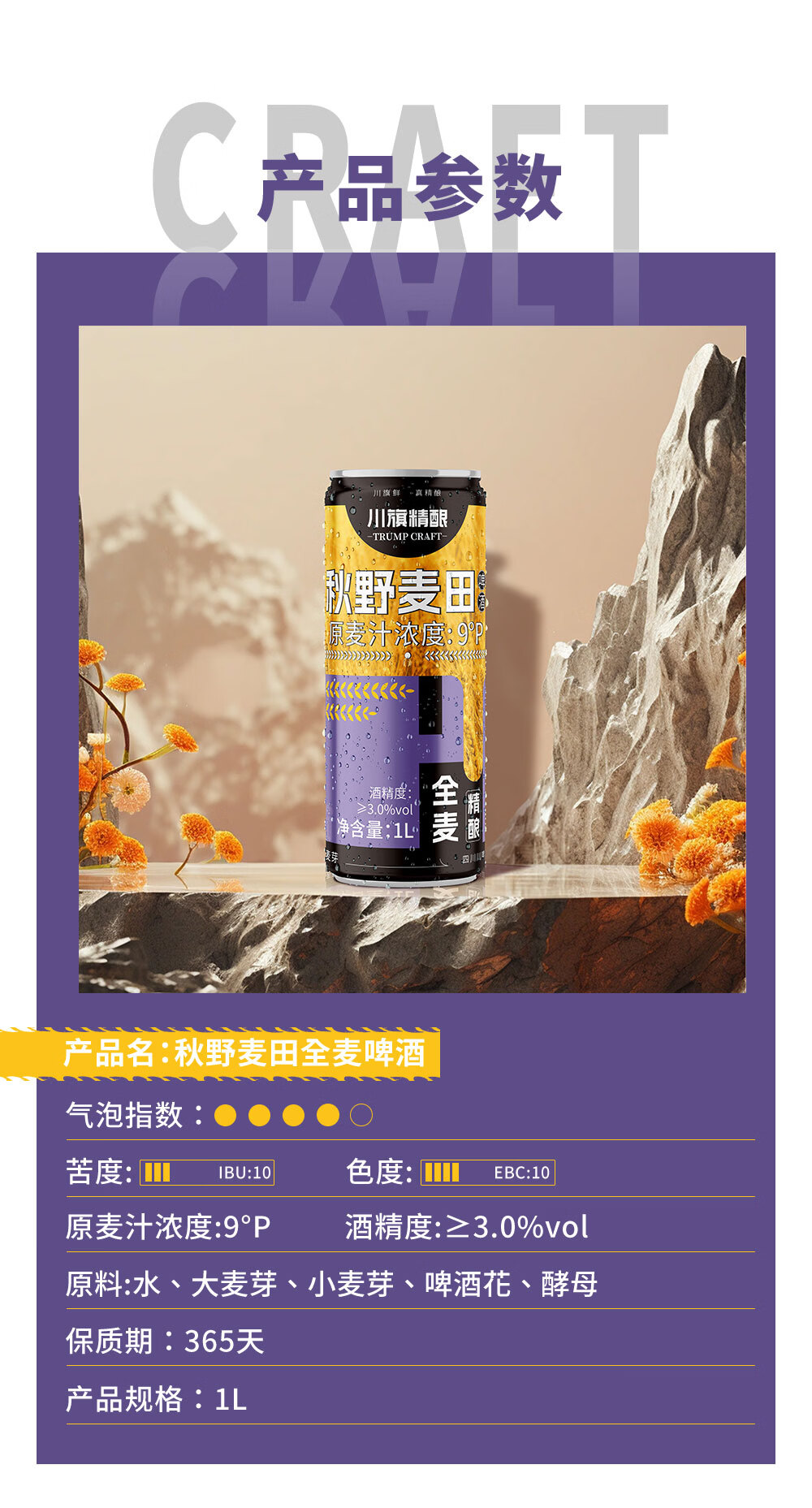 川旗秋野麦田全麦酿造精酿啤酒 浓郁麦香醇厚 夏日微醺聚会自饮佳品 1L 6瓶 秋叶麦田