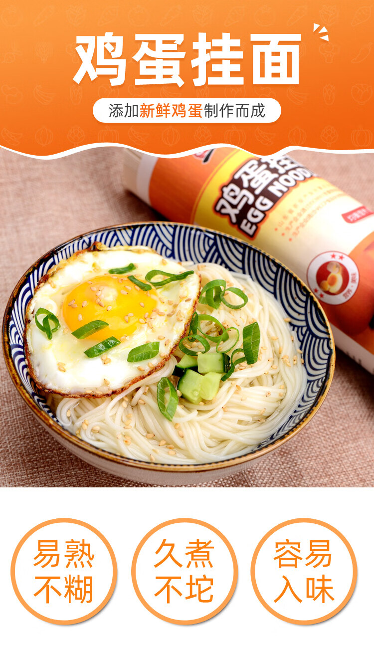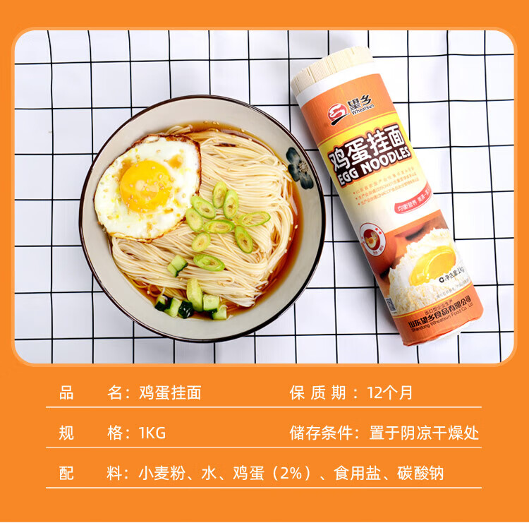 望乡鸡蛋挂面细拉面挂面面条1kg添加鲜鸡蛋龙须面2斤装 潍坊好挂面 鸡蛋挂面1kg*2