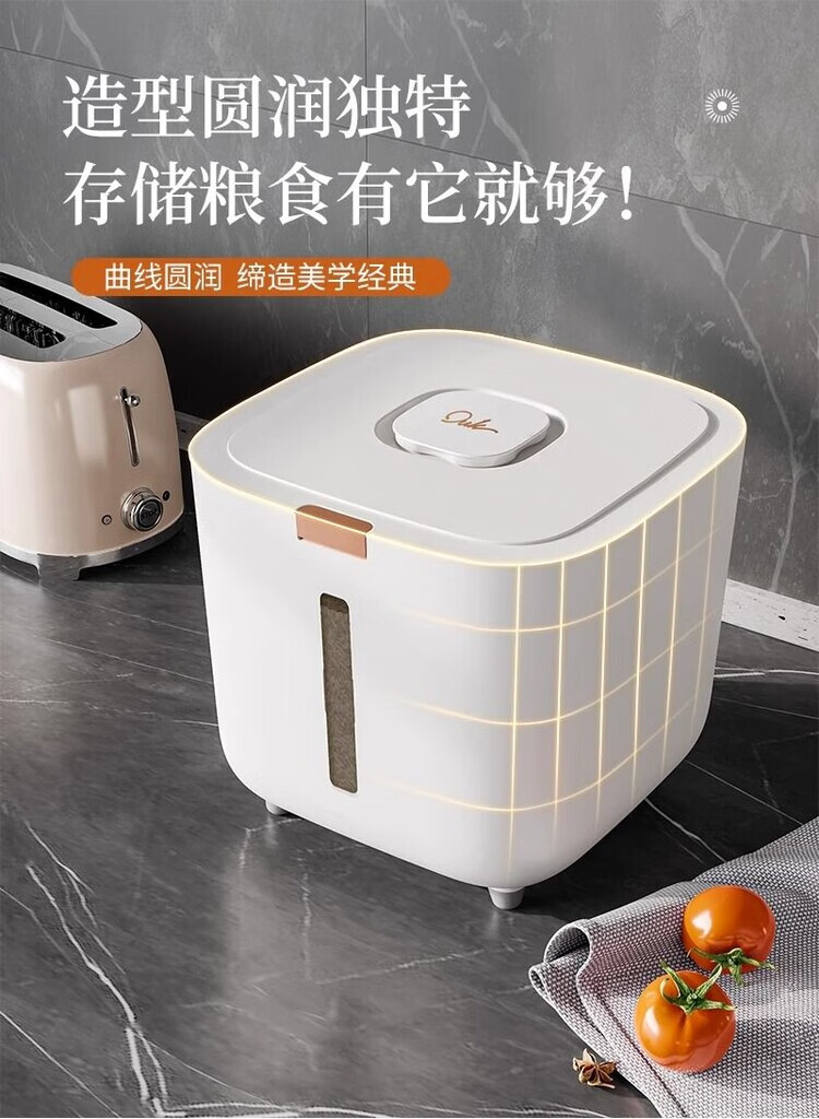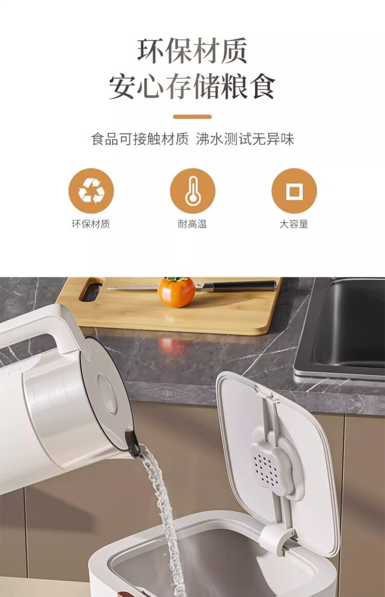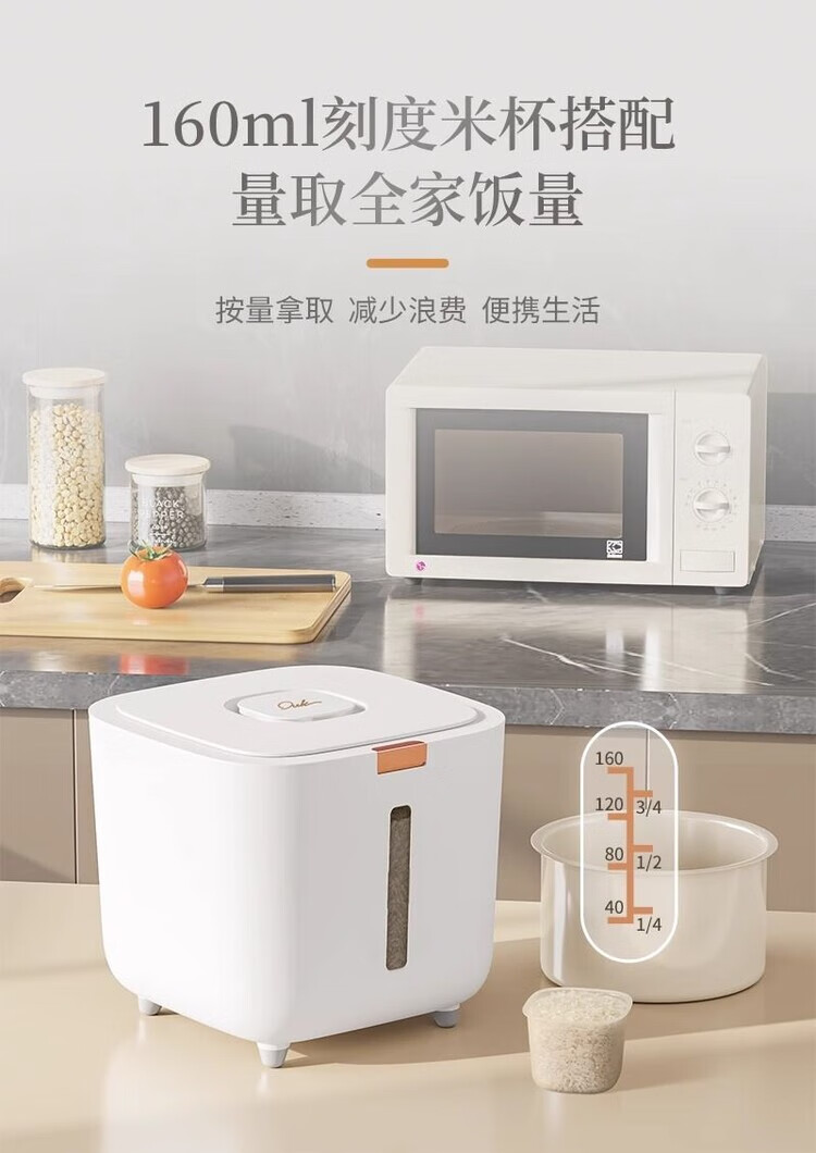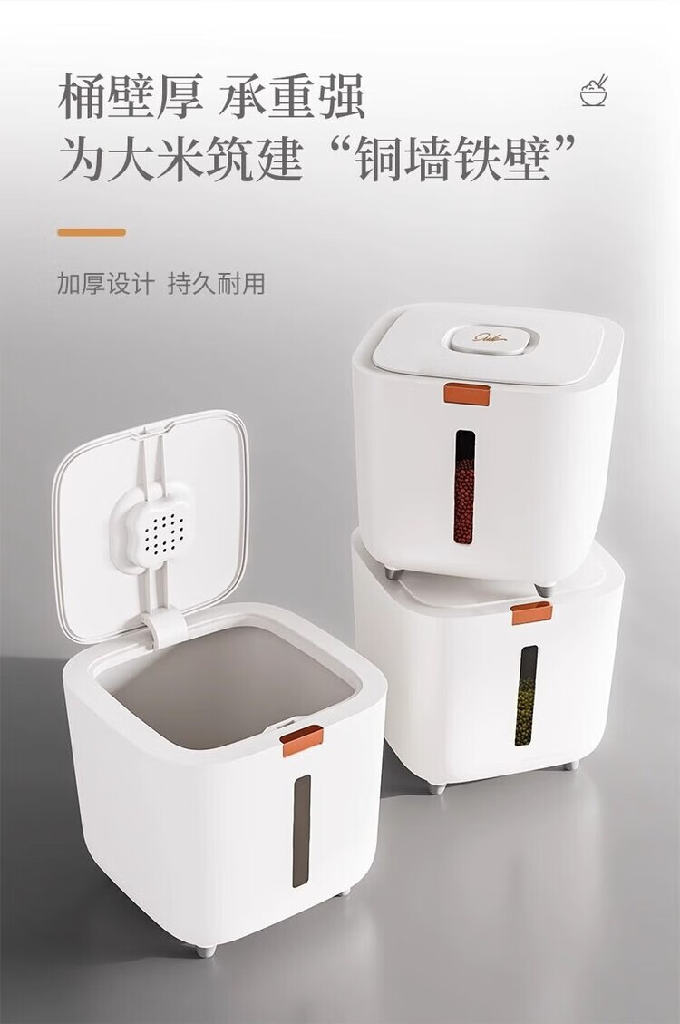简漾米桶防虫防潮密封家用粮桶装米缸食品级大米收纳盒面粉储存罐 10斤-送量杯 珍珠白