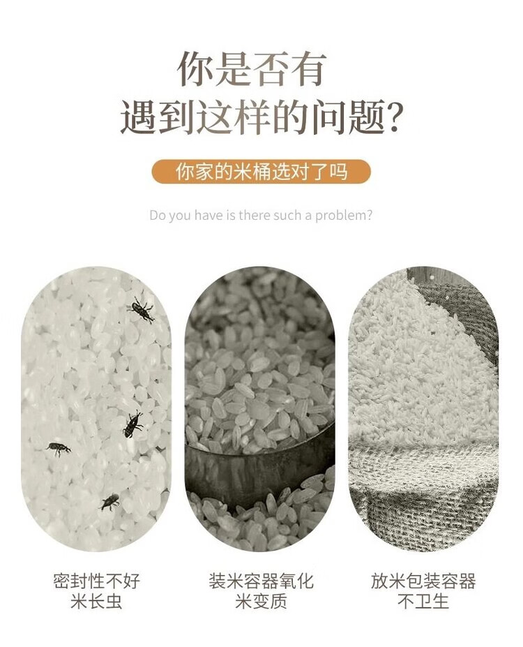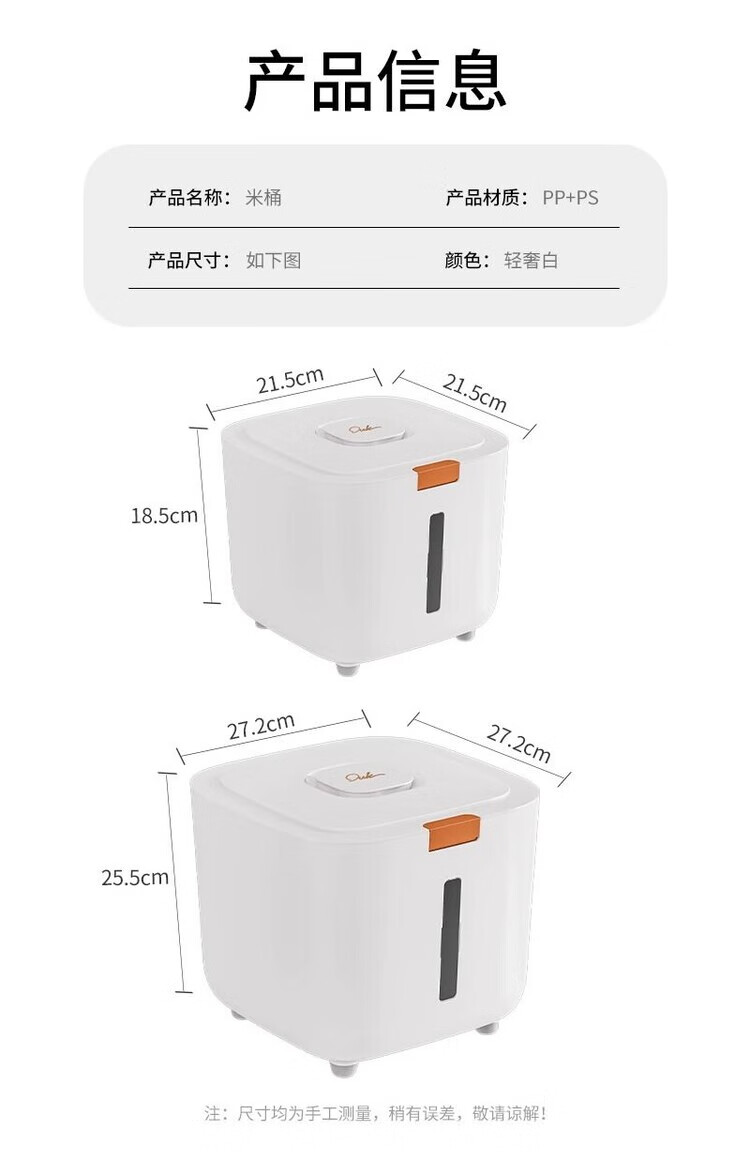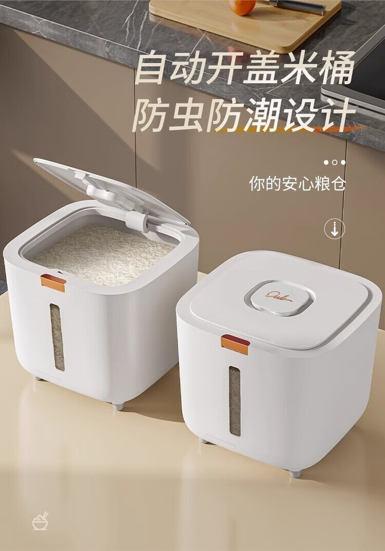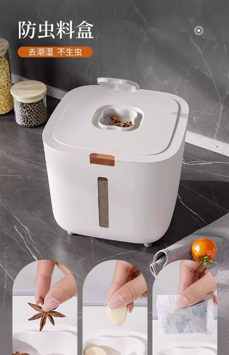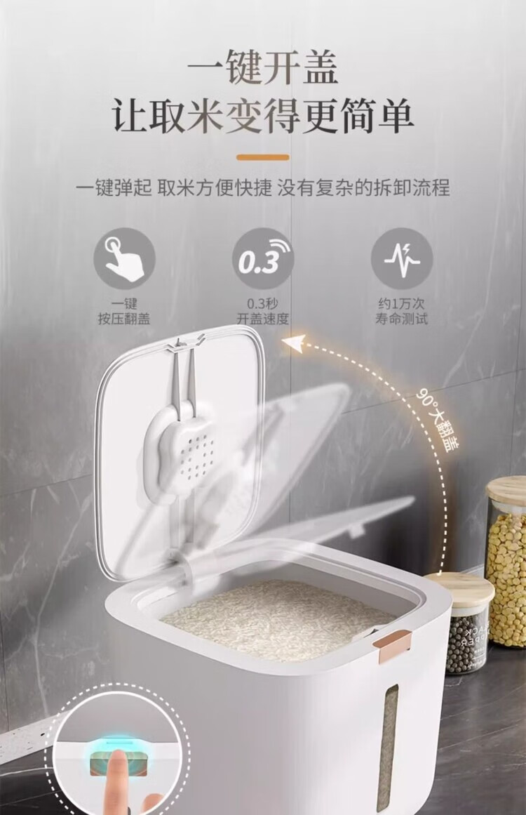 简漾米桶防虫防潮密封家用粮桶装米缸食品级大米收纳盒面粉储存罐 10斤-送量杯 珍珠白