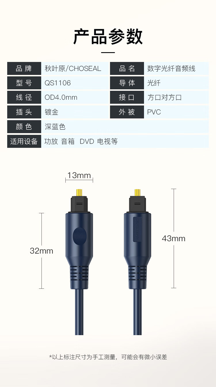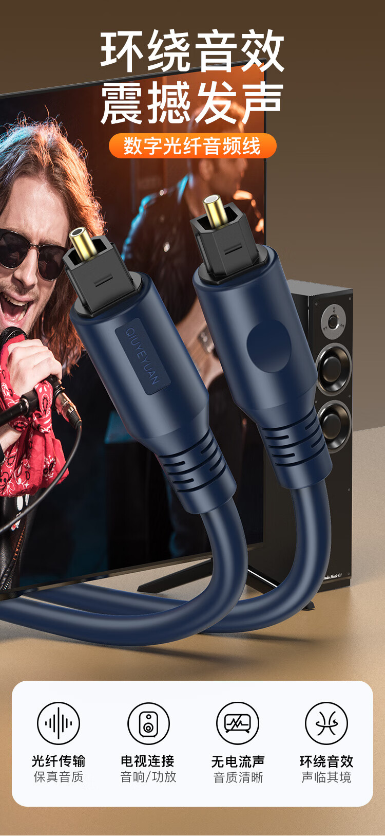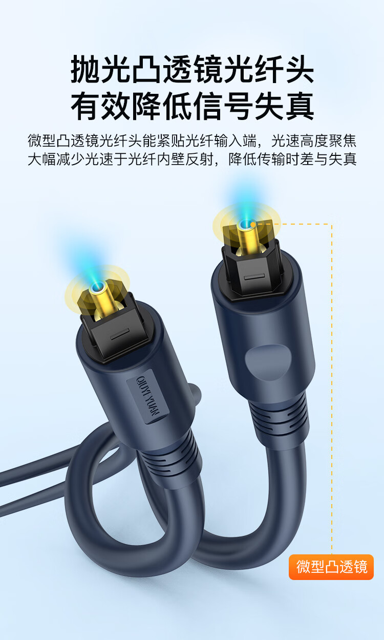 秋叶原(CHOSEAL)数字光纤音频线 电视DVD投影仪功放机顶盒影院 spdif多声道方口音响连接线1米 QS1101T1
