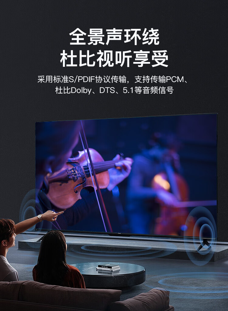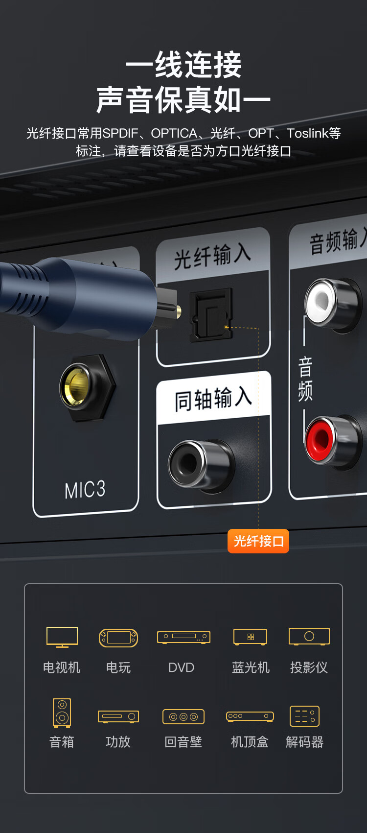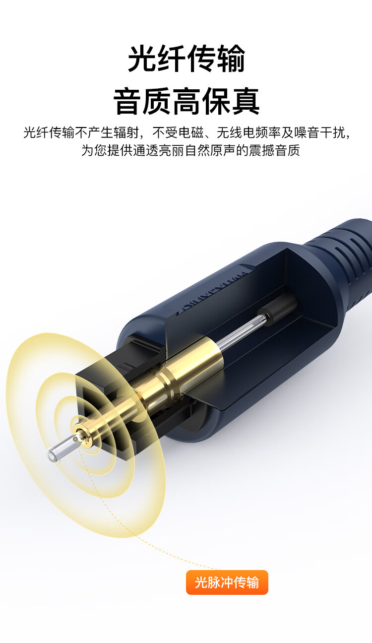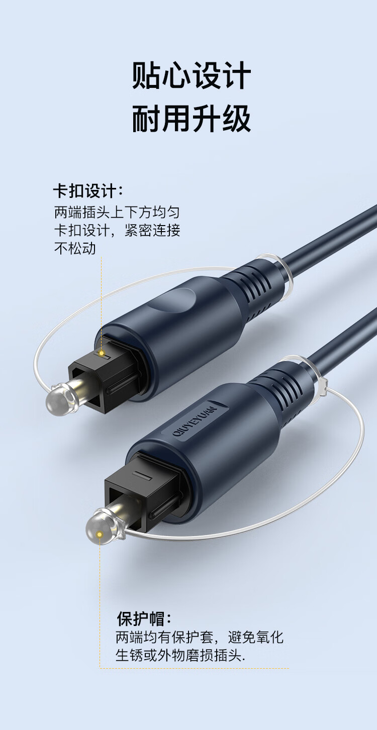 秋叶原(CHOSEAL)数字光纤音频线 电视DVD投影仪功放机顶盒影院 spdif多声道方口音响连接线1米 QS1101T1