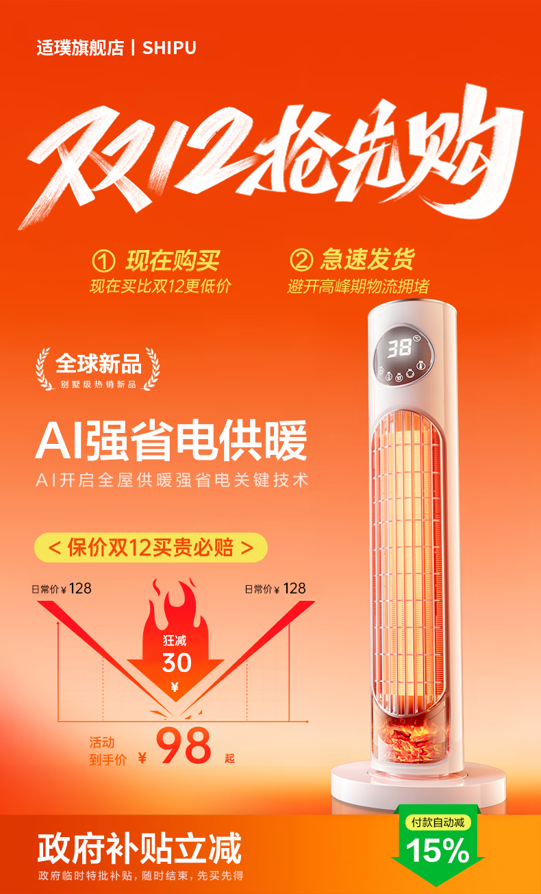 适璞【50平方全屋速热】电热取暖器石墨烯暖风机节能省电家用电暖器大面积浴室电暖气静音卧室专用 【机械旗舰款】40℃速热|300㎡覆盖|倾倒断电