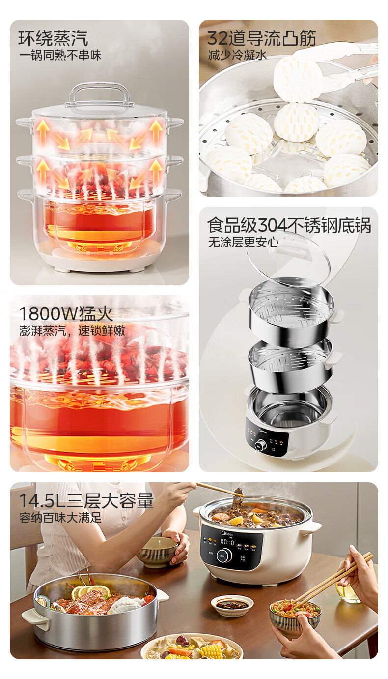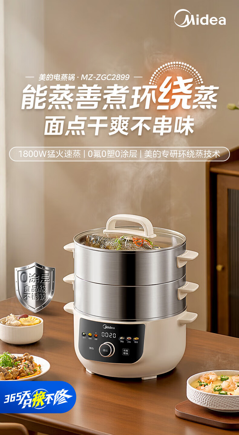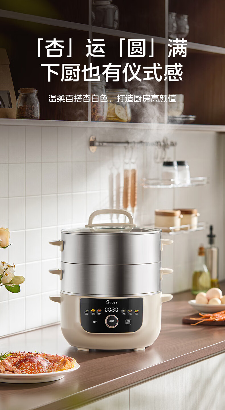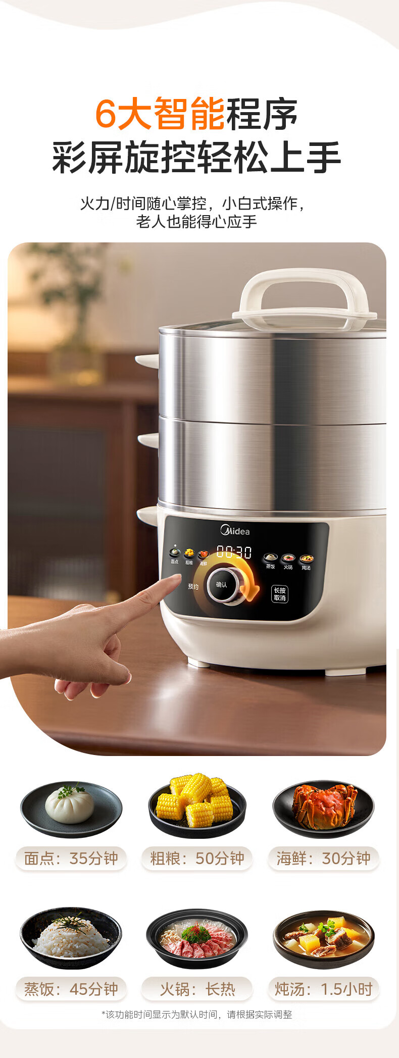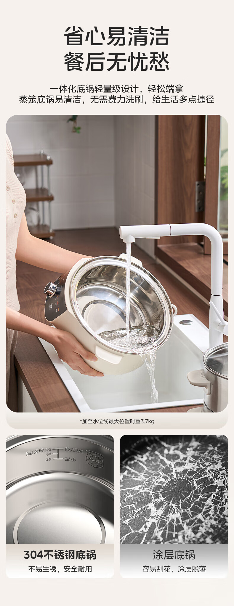 美的(Midea)电蒸锅 电煮锅 电火锅 家用多功能锅电锅蒸包子锅电热锅煮蛋器不锈钢蒸笼大容量多用途锅 10L 【26cm口径】ZG26EASY401