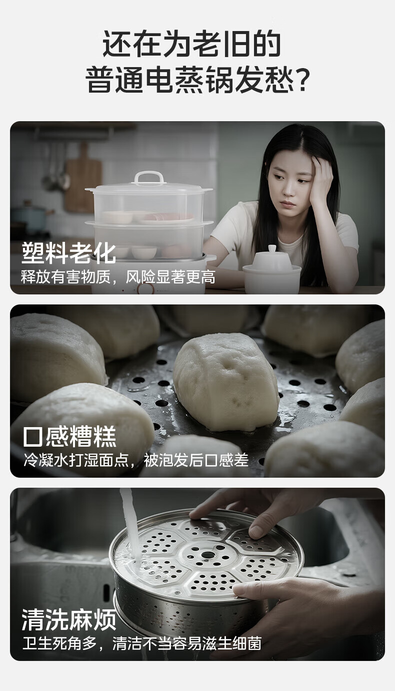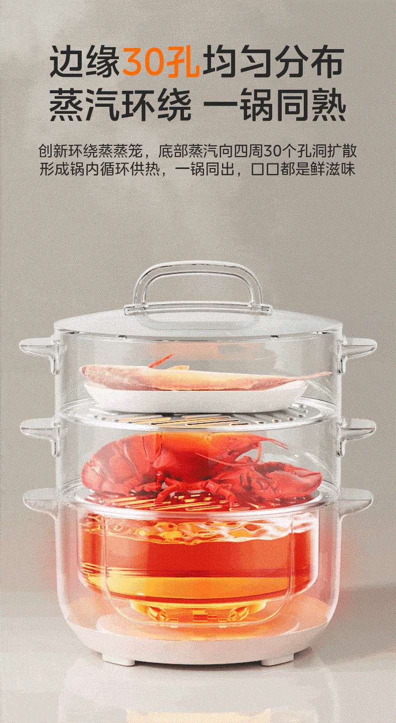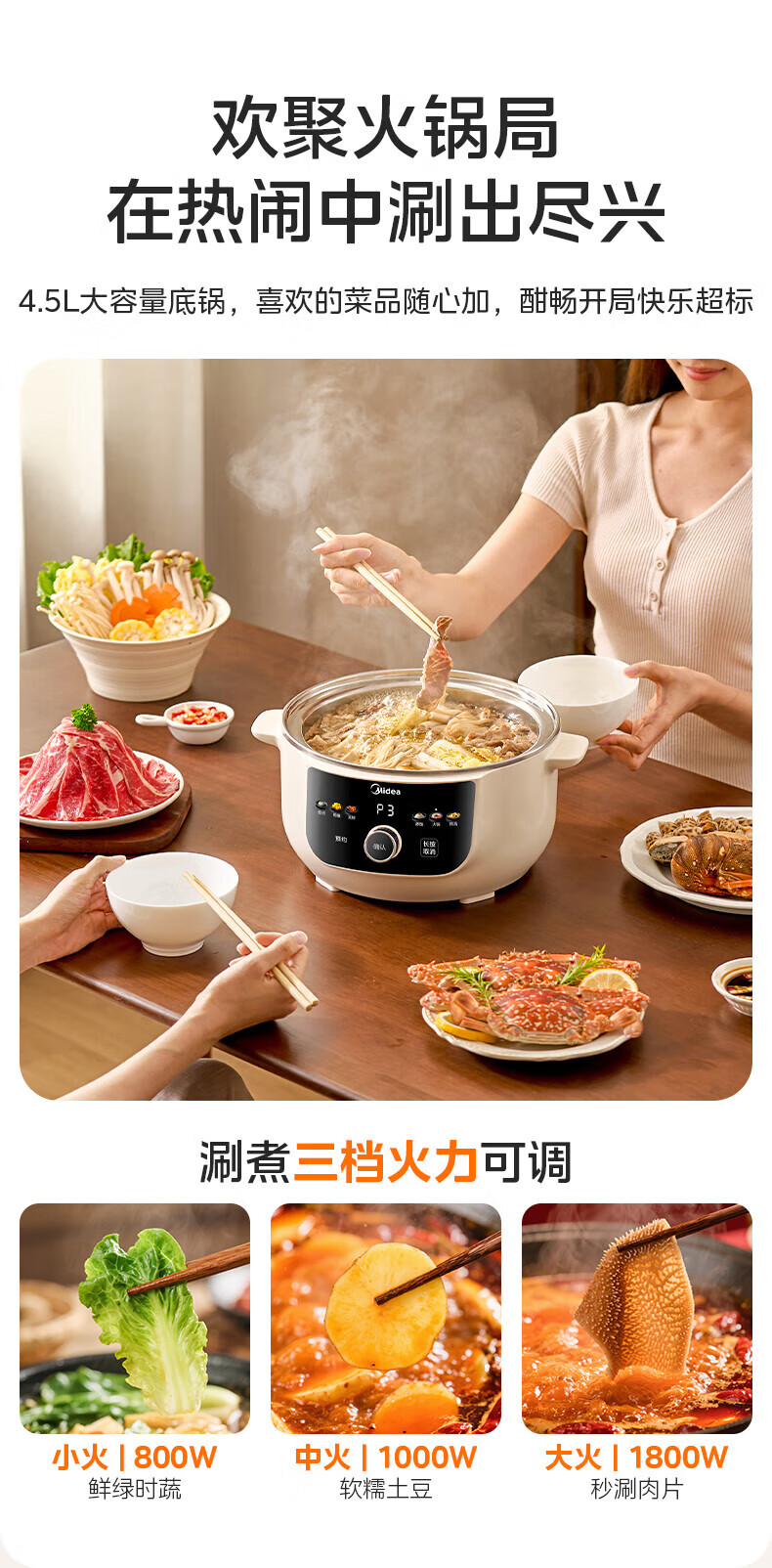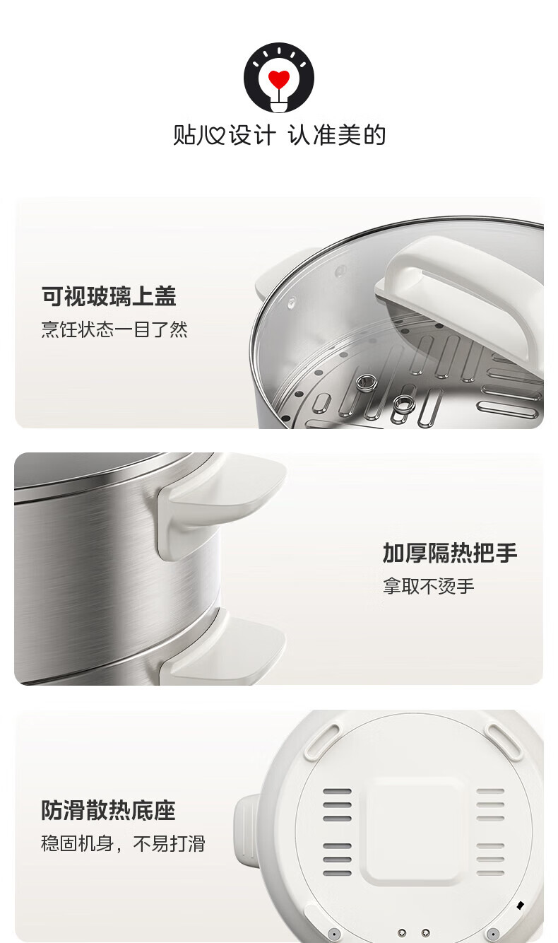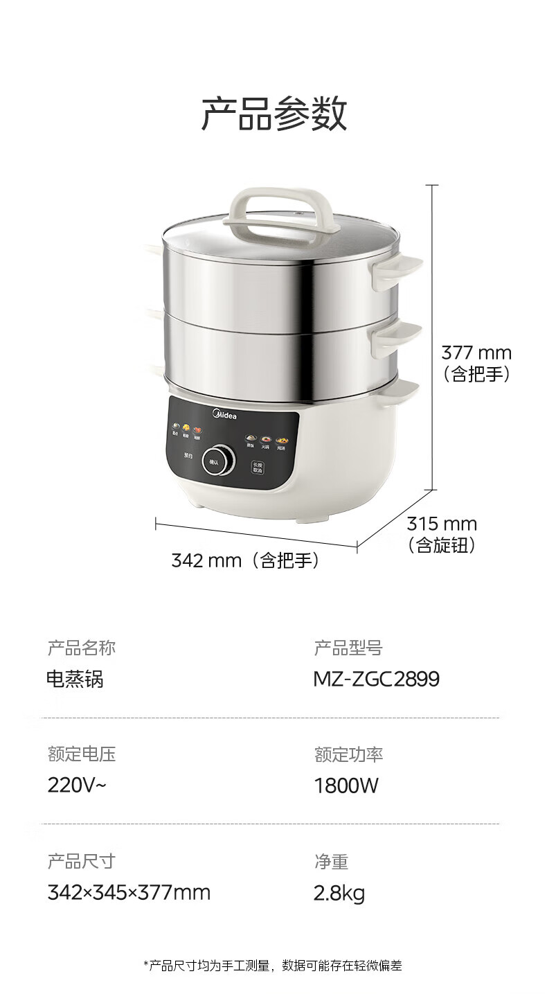 美的(Midea)电蒸锅 电煮锅 电火锅 家用多功能锅电锅蒸包子锅电热锅煮蛋器不锈钢蒸笼大容量多用途锅 10L 【26cm口径】ZG26EASY401