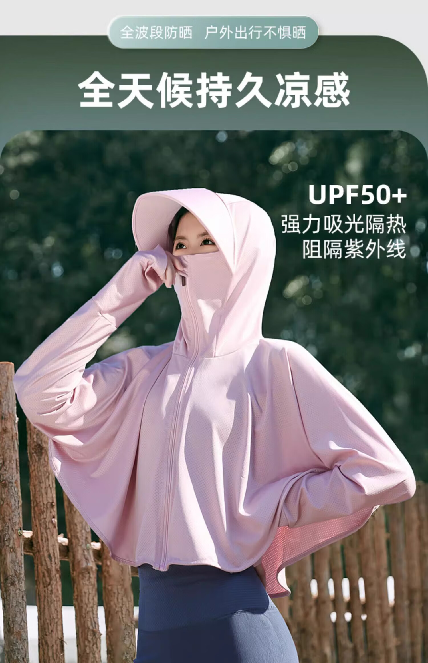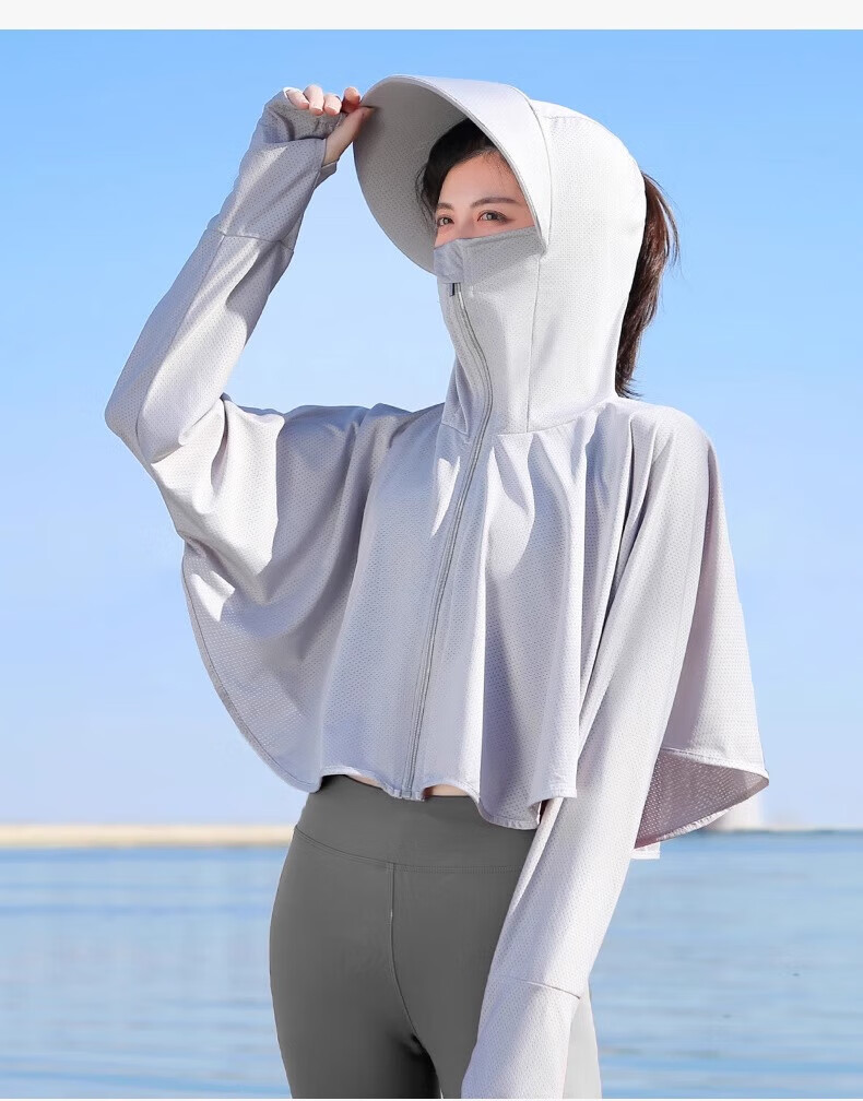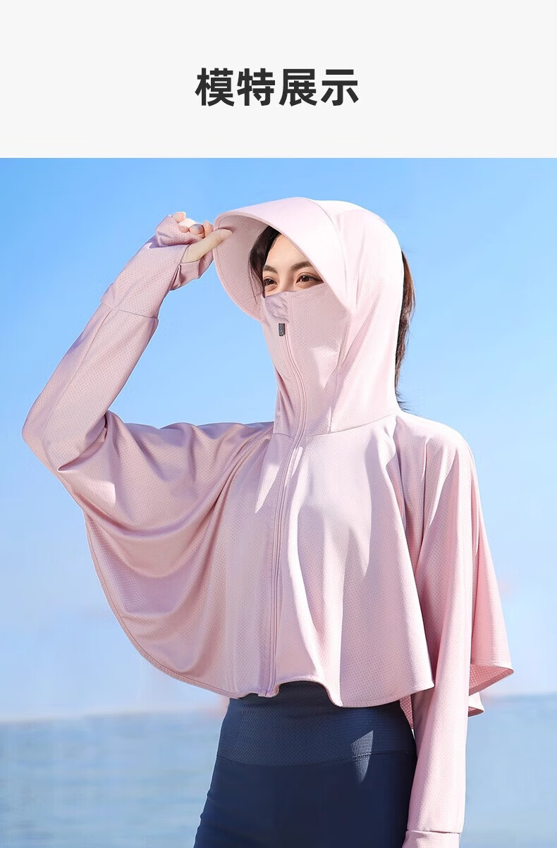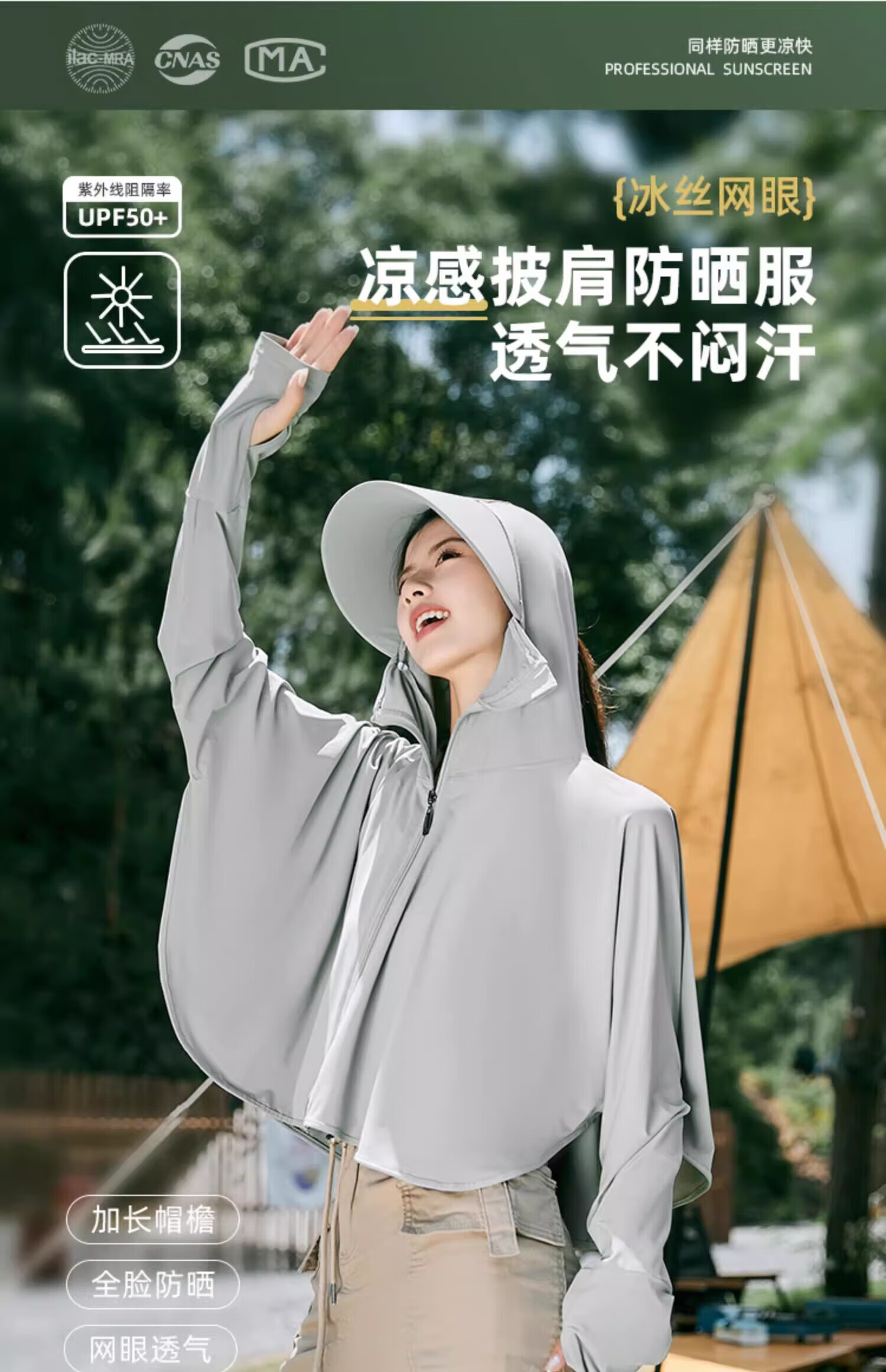 朋意披肩防晒衣女夏季冰丝凉感防晒服透气披肩斗篷防晒外套 【气质灰】加长帽檐 均码