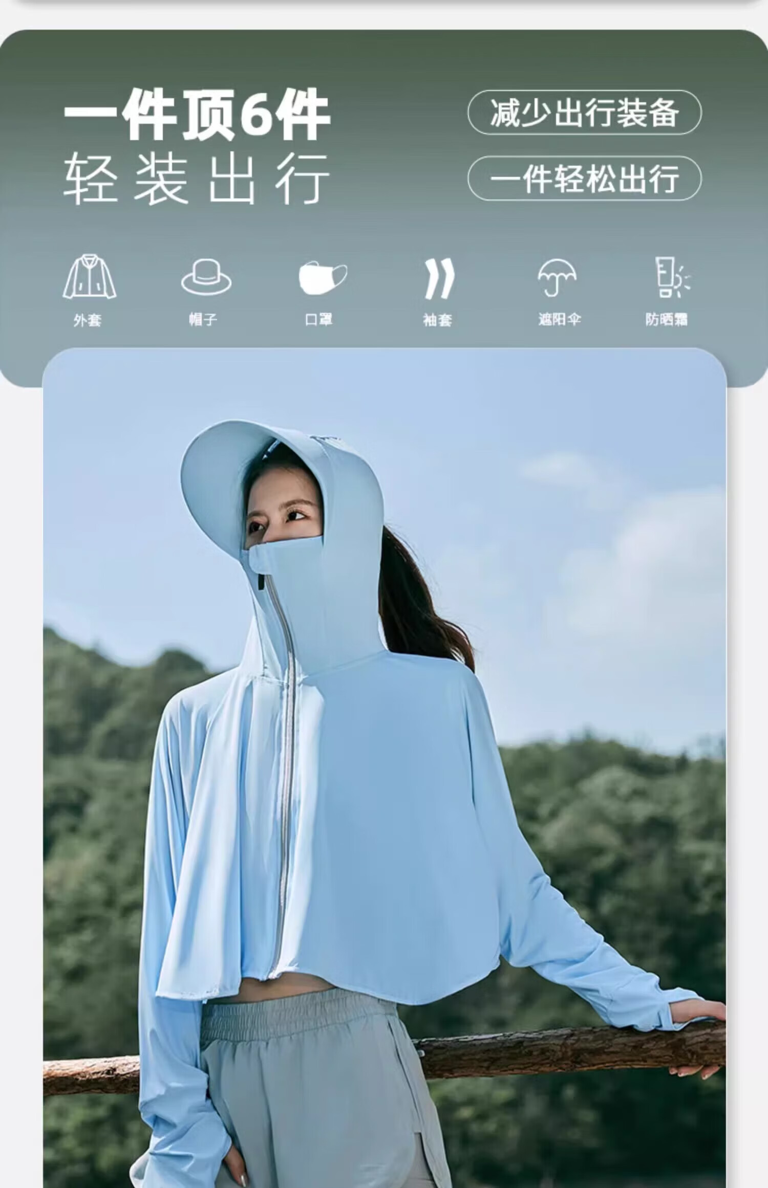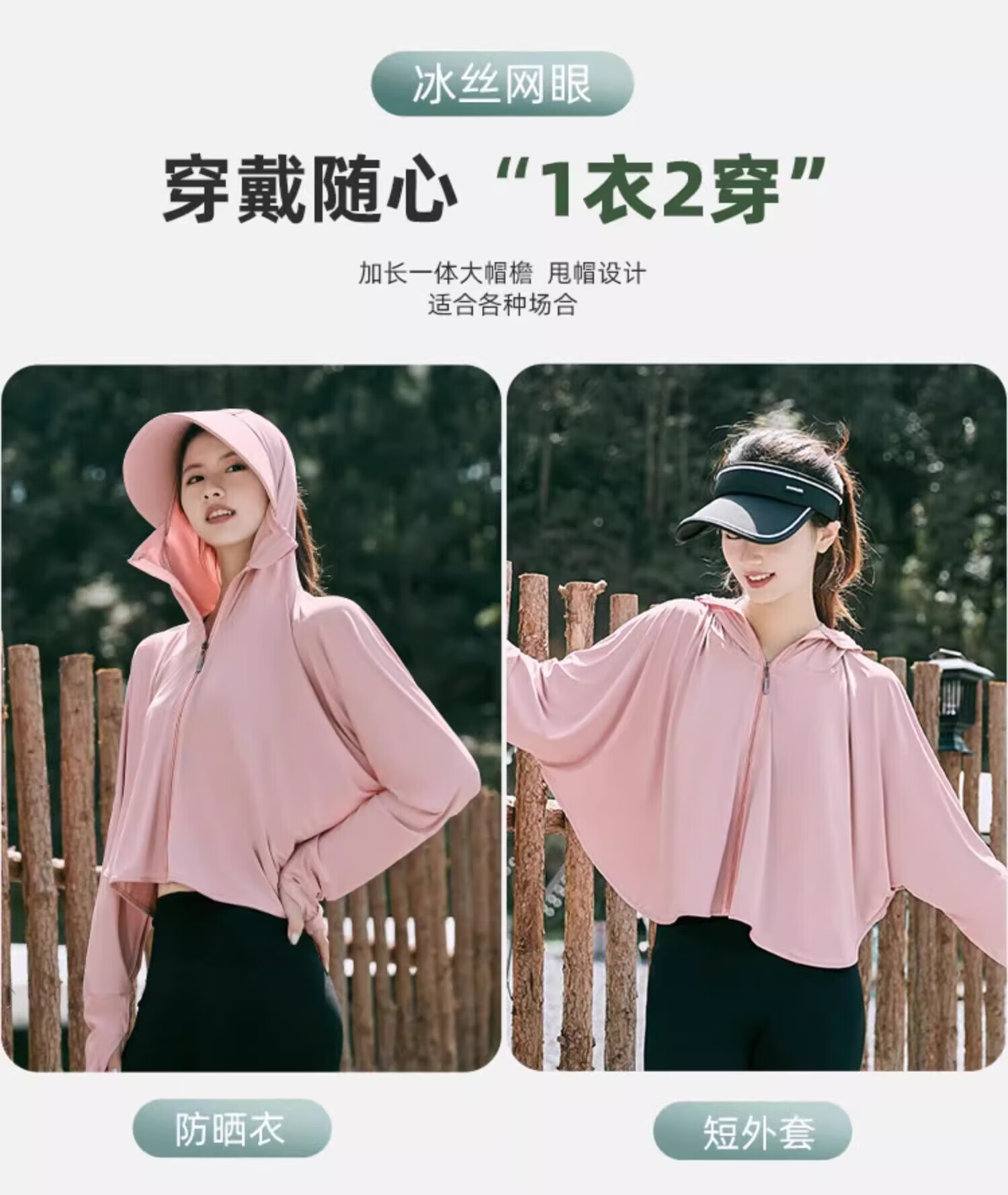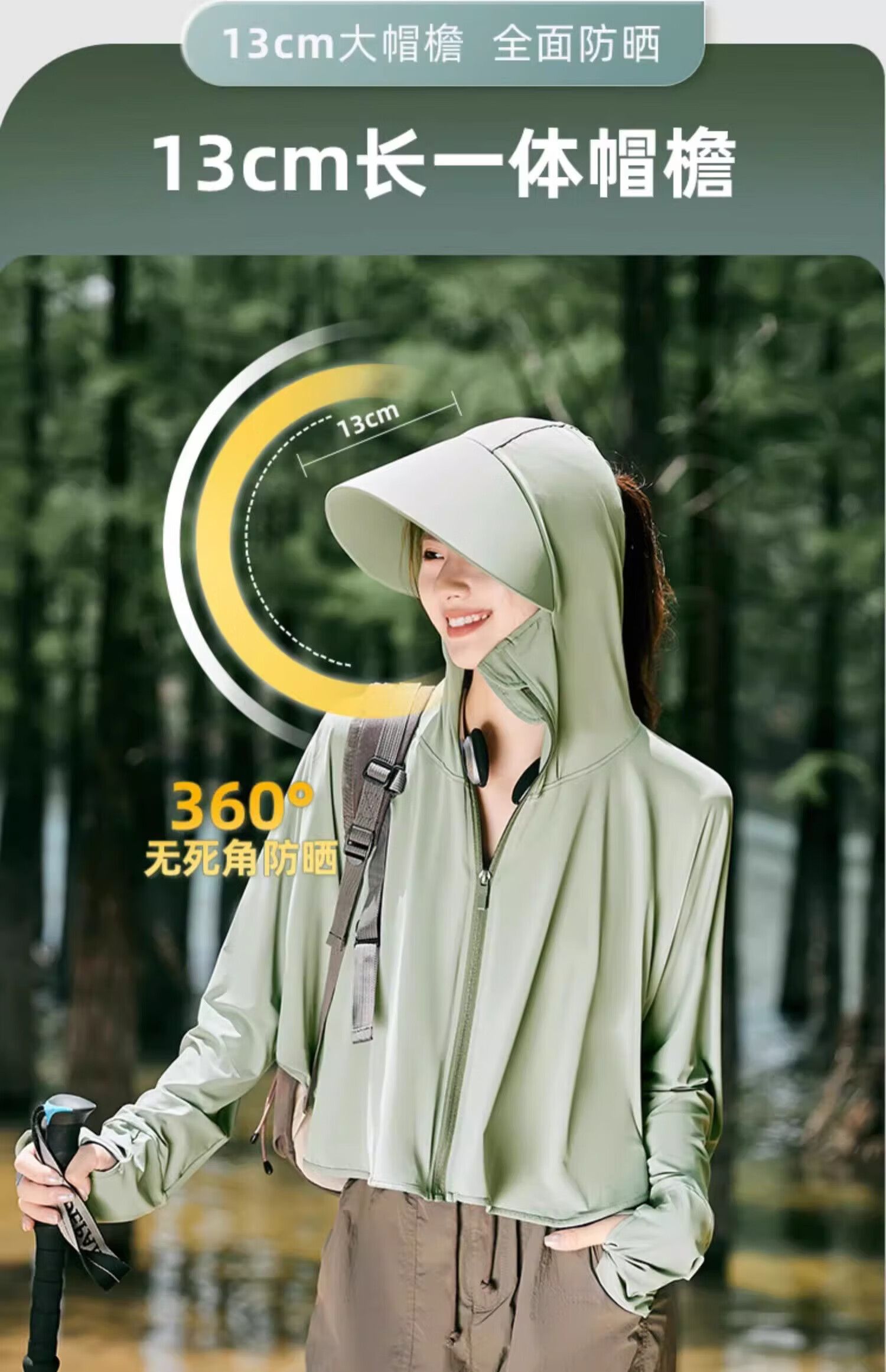 朋意披肩防晒衣女夏季冰丝凉感防晒服透气披肩斗篷防晒外套 【气质灰】加长帽檐 均码