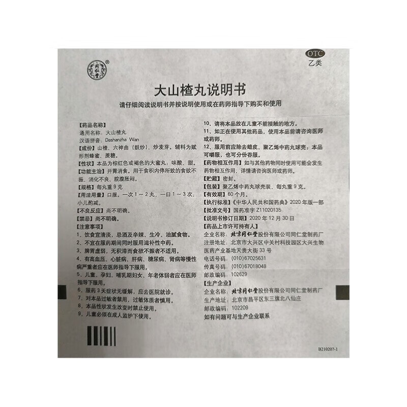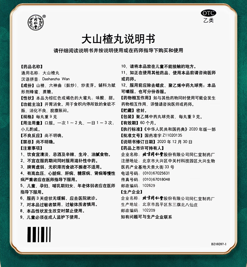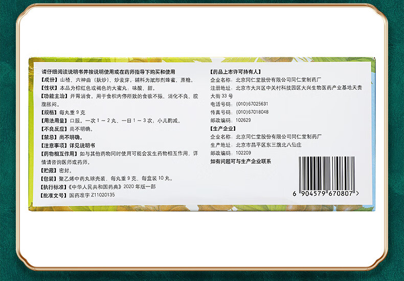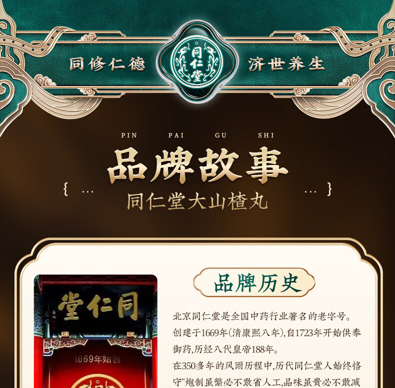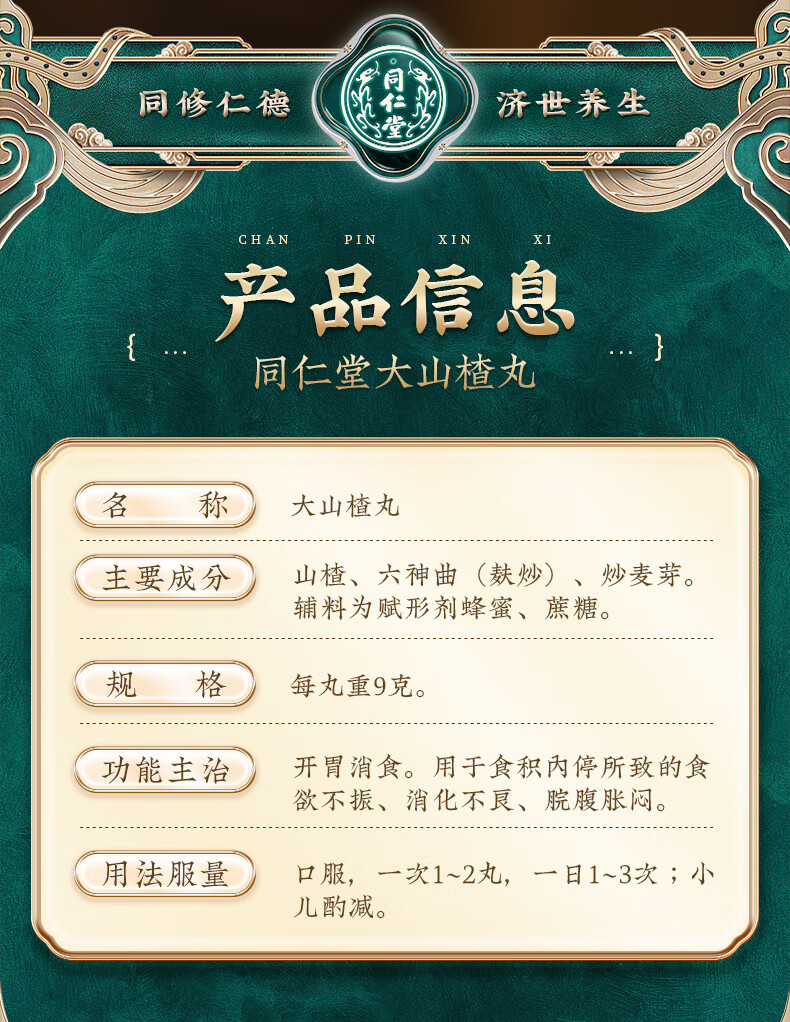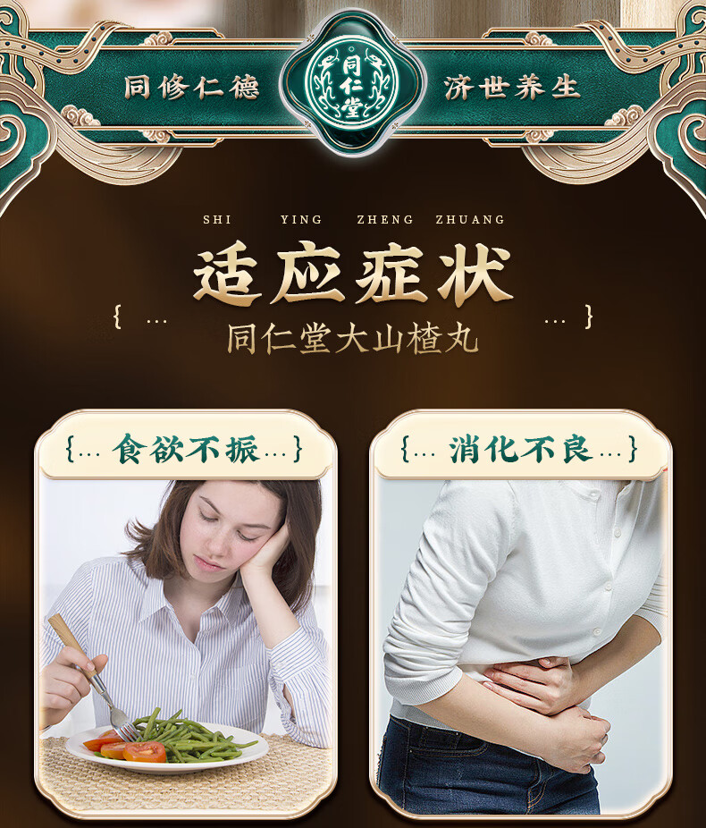同仁堂 大山楂丸 9g*10丸*5盒 开胃消食 食积内停 食欲不振 消化不良 脘腹胀闷