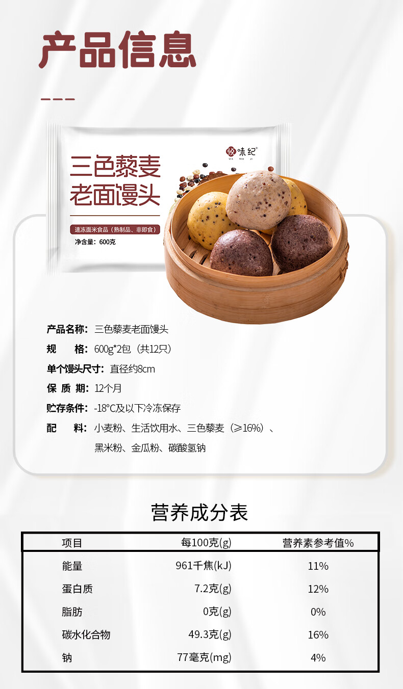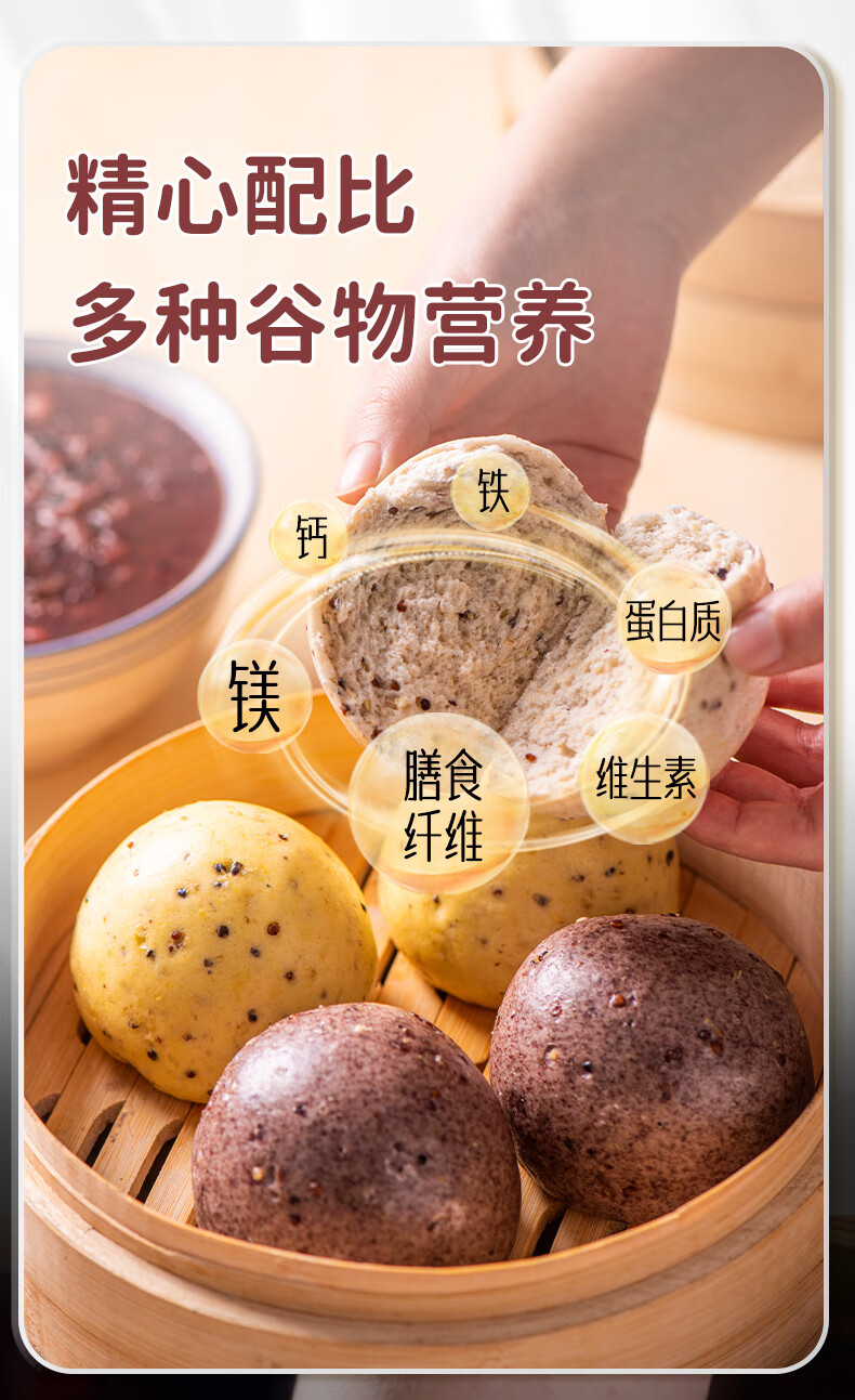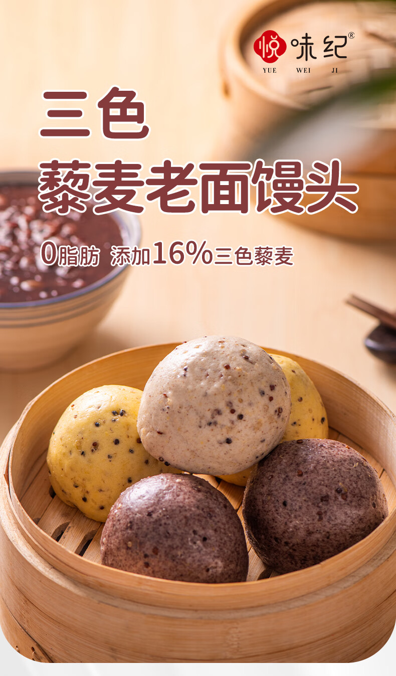 悦味纪 三色藜麦老面馒头600g*2包 共12个 手工杂粮粗粮馒头 早餐速食