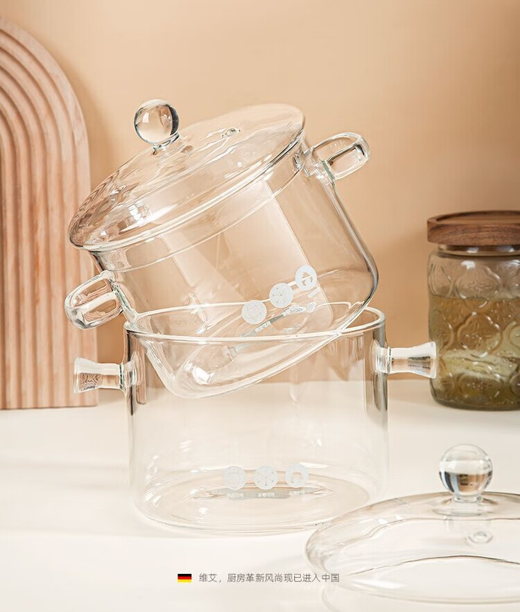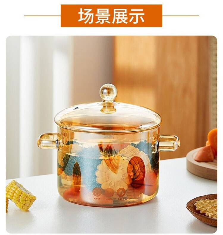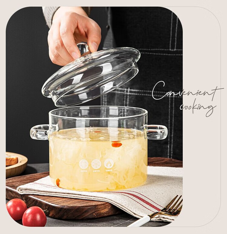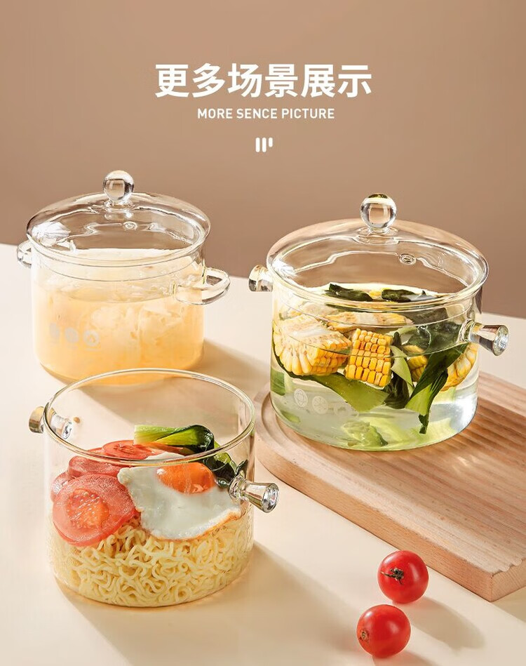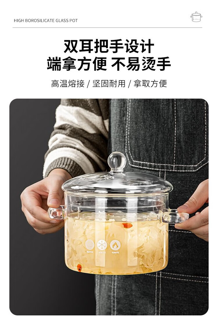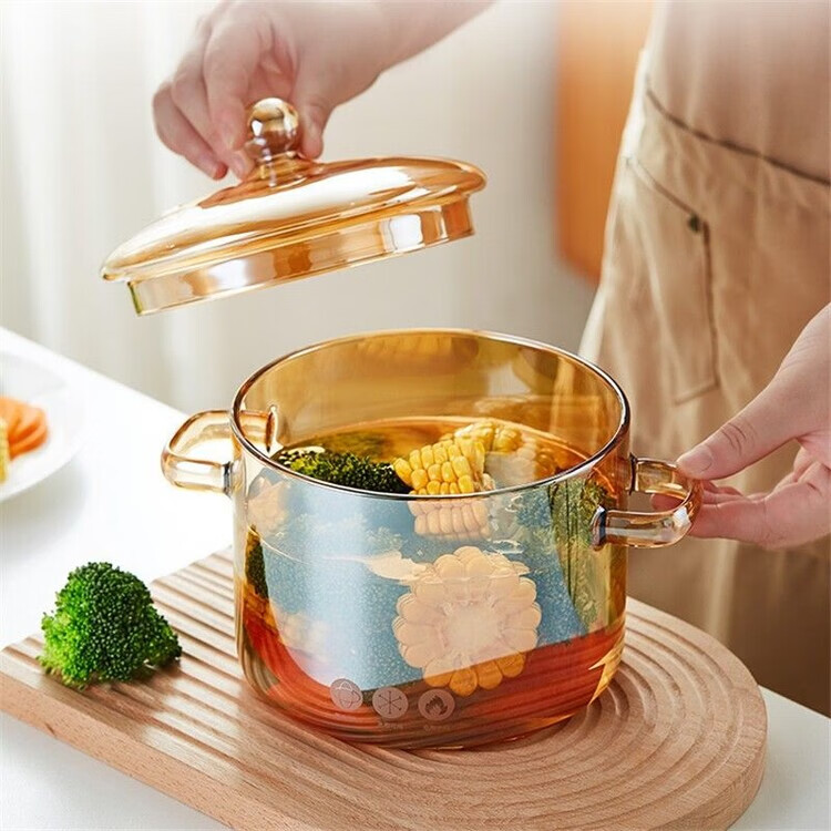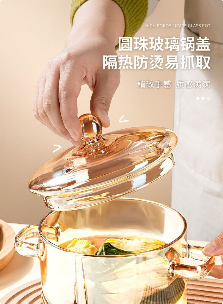 简漾高颜值高硼硅耐热玻璃锅耐高温透明色奶锅电陶炉专用锅盖子有孔 透明色 1cm 1300双把